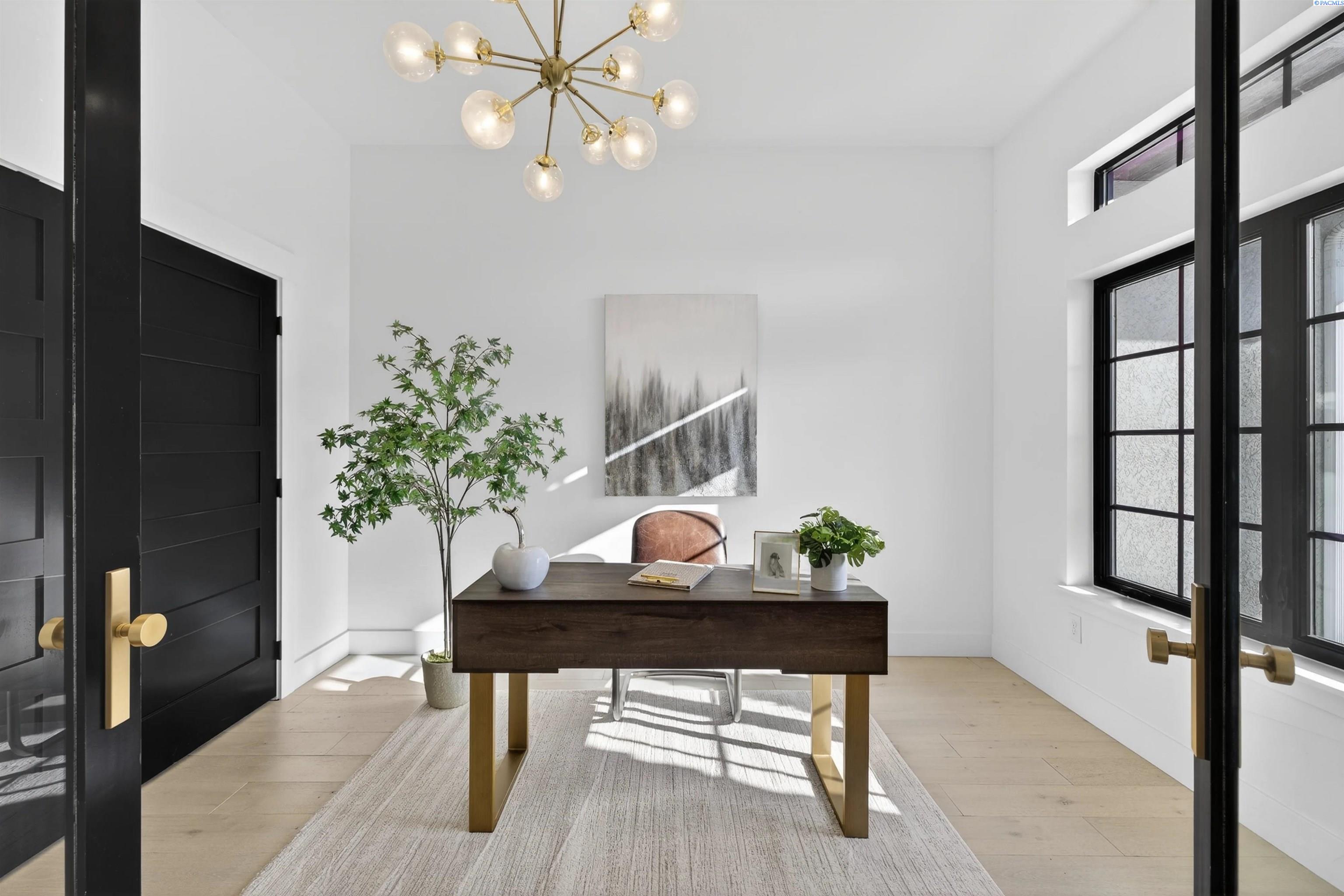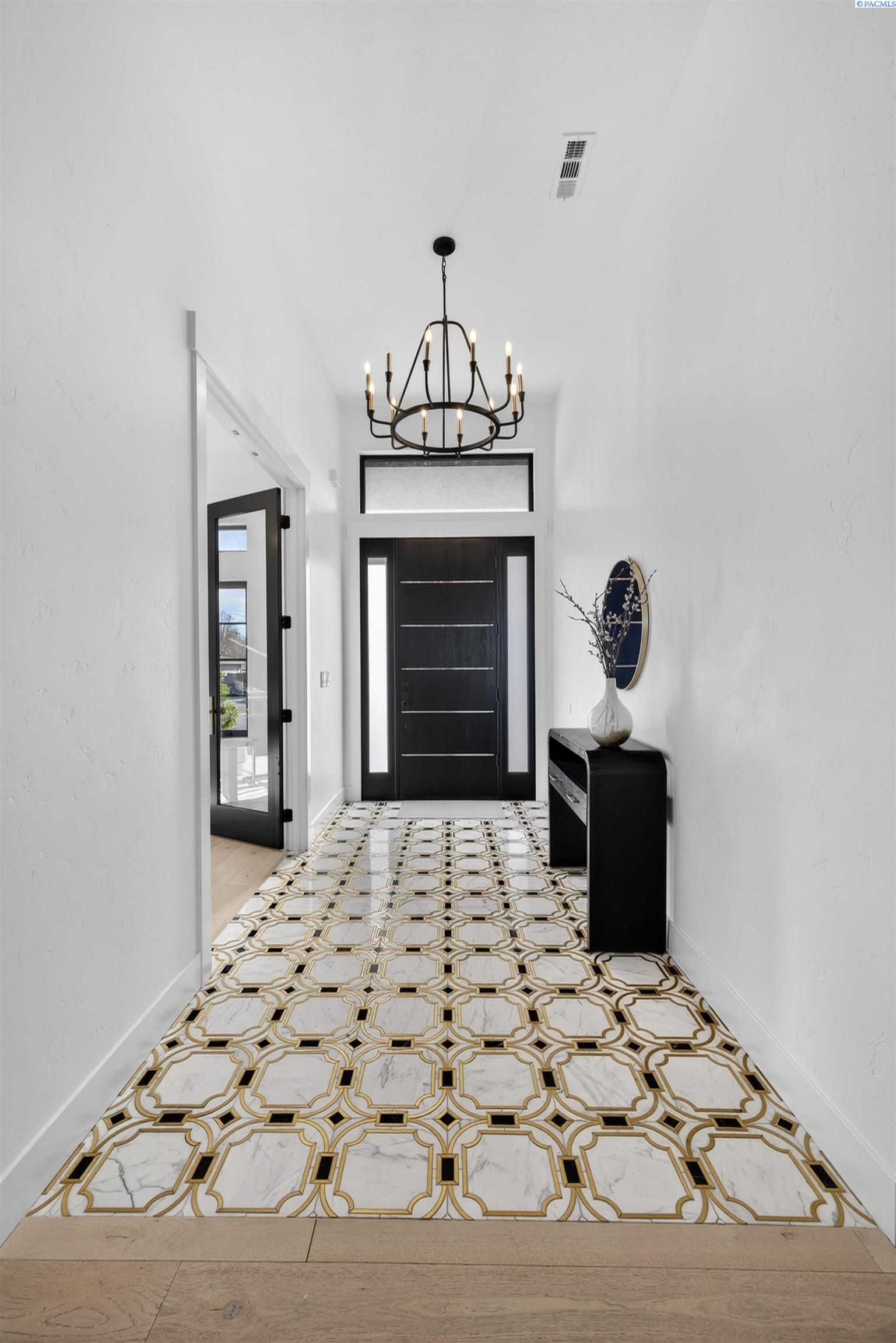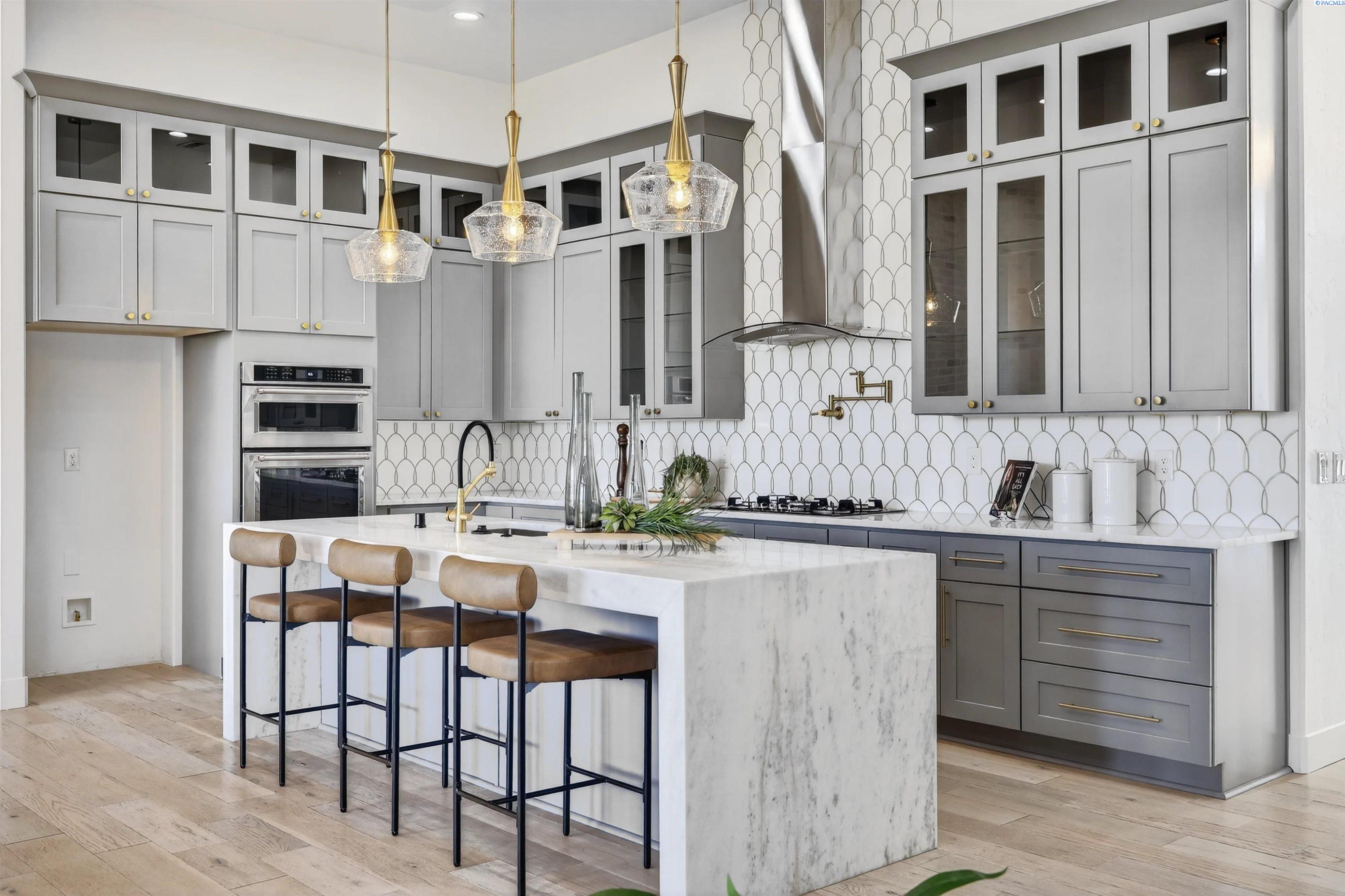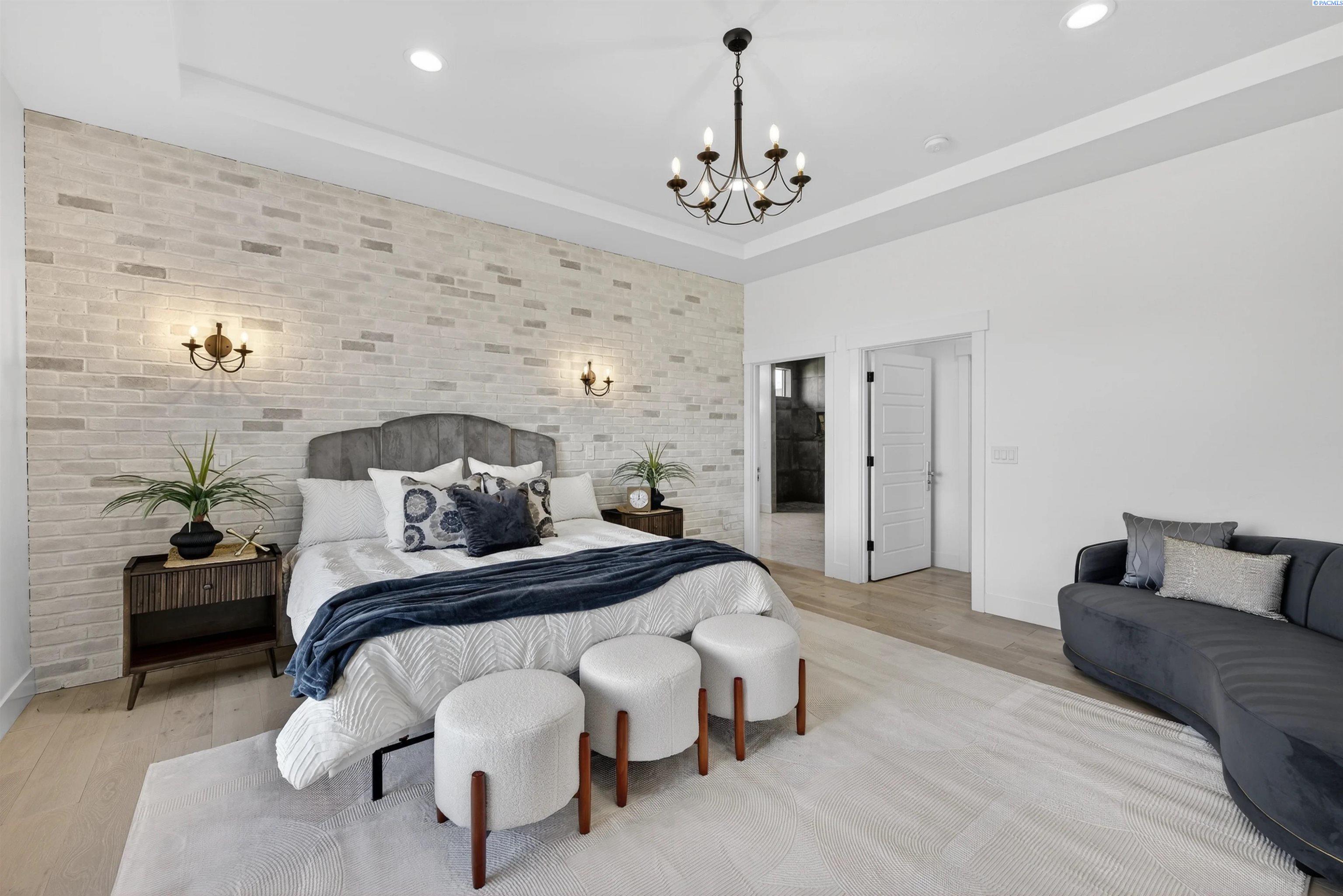 MLS# 291743 Experience a level of craftsmanship and design rarely found in this stunning 2018 custom-built residence, ideally situated on a half-acre a few blocks from the river. Offering 2,818 sq. ft., a 3-car garage, 4 bedrooms, and 3 full bathsâincluding a private junior suite and an expansive primary retreatâthis home also features an office with closet and an additional living space with floor-to-ceiling built-ins, ideal as a library, separate living area, second office, or playroom. From the moment you enter, the scale and detail set the toneâsoaring 12-foot ceilings in the main living areas, 10-foot ceilings throughout, upgraded 8-foot doors, and custom windows flood the home with natural light. The open-concept design seamlessly connects the kitchen, dining, and living spaces, anchored by a stunning marble waterfall island with seating, custom cabinetry, designer hardware, full tile backsplash with wall-mounted faucet over the stove, a large walk-in pantry with built-ins, luxury lighting, and high-end appliances. The living area is both inviting and striking, featuring expansive windows, a custom linear gas fireplace, floor-to-ceiling shelving, and cultured brick accents that extend into the luxurious primary suite. The primary retreat offers a spa-like experience with window seating overlooking the private arborvitae-lined backyard, heated floors, a generous walk-in closet with built-ins, freestanding tub, large tiled shower, and dual sink vanity with marble countertops. Engineered hardwood, custom tile, and designer lighting carry throughout. Additional features include a junior suite with full bath (all bathrooms are beautifully finished with tiled showers and marble countertops), an office w/closet & 8-foot glass French doors, as well as a second living space with full built-ins that can be used as a flex space. Outdoors, enjoy an extended stamped patio, freshly painted pergola, and a large private yard with block fencing and thoughtful landscaping. With extensive upgradesâincluding full-view garage doors and an instant-on tankless water heaterâthis home must be experienced to be fully appreciated. Call for your private showing today!