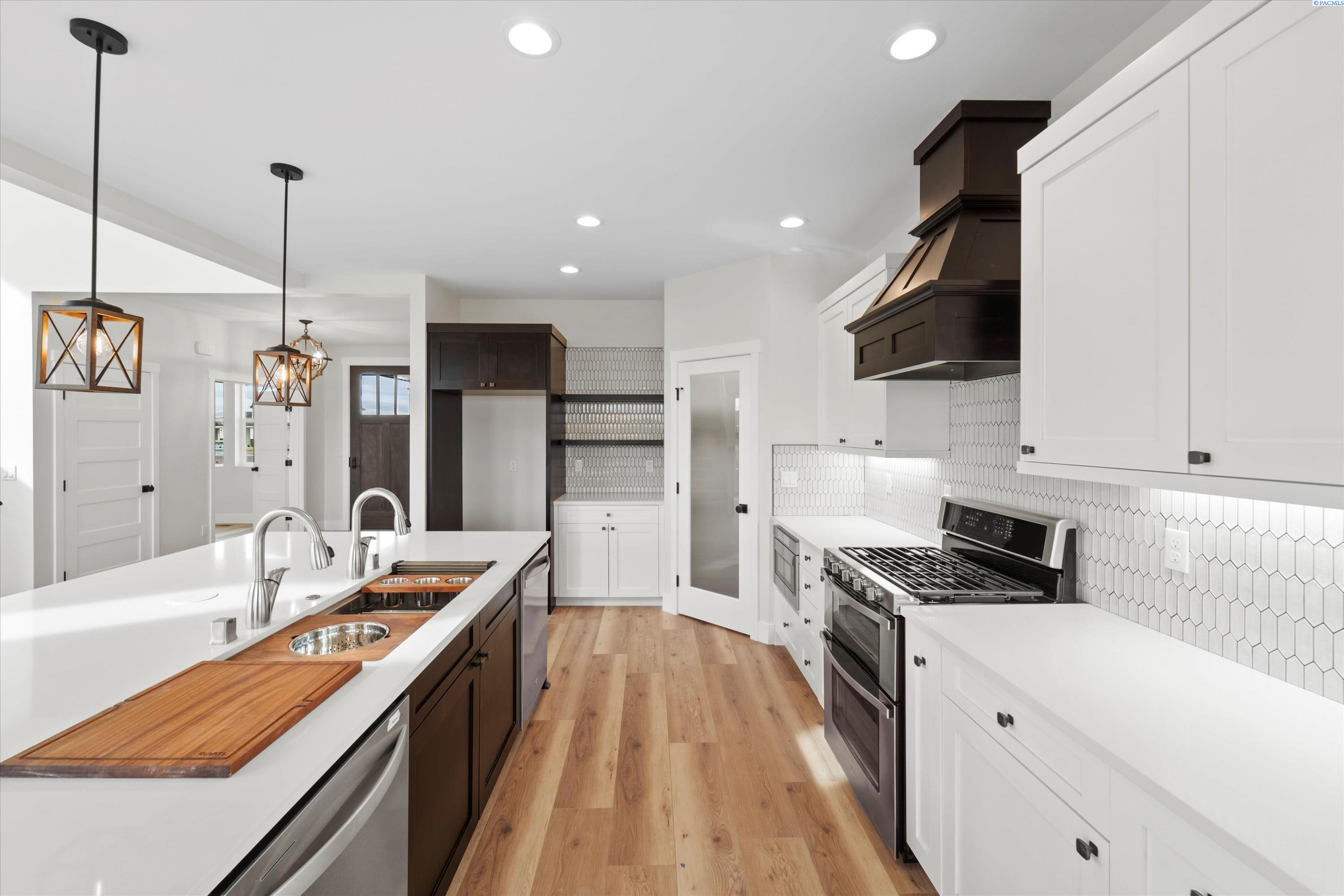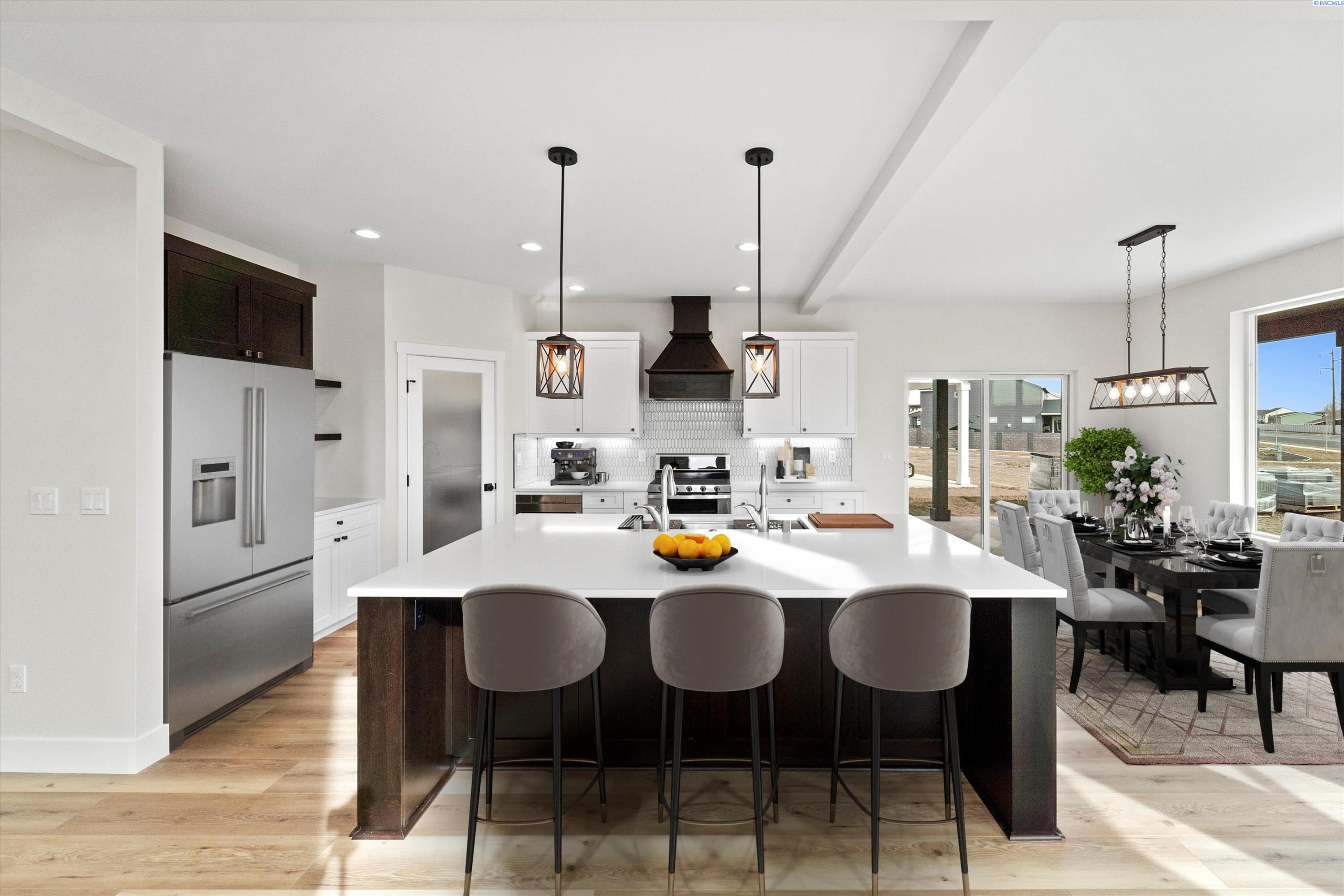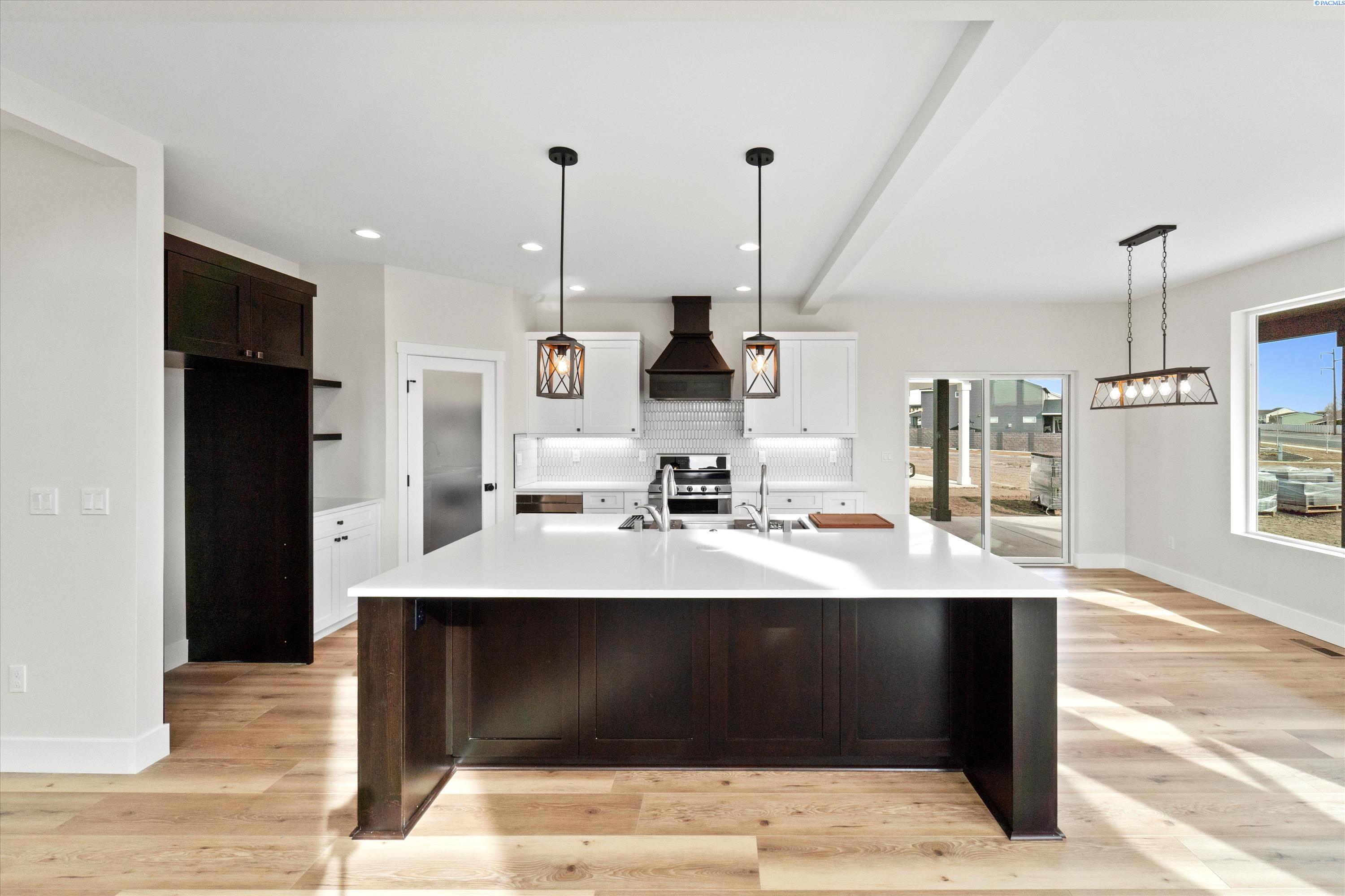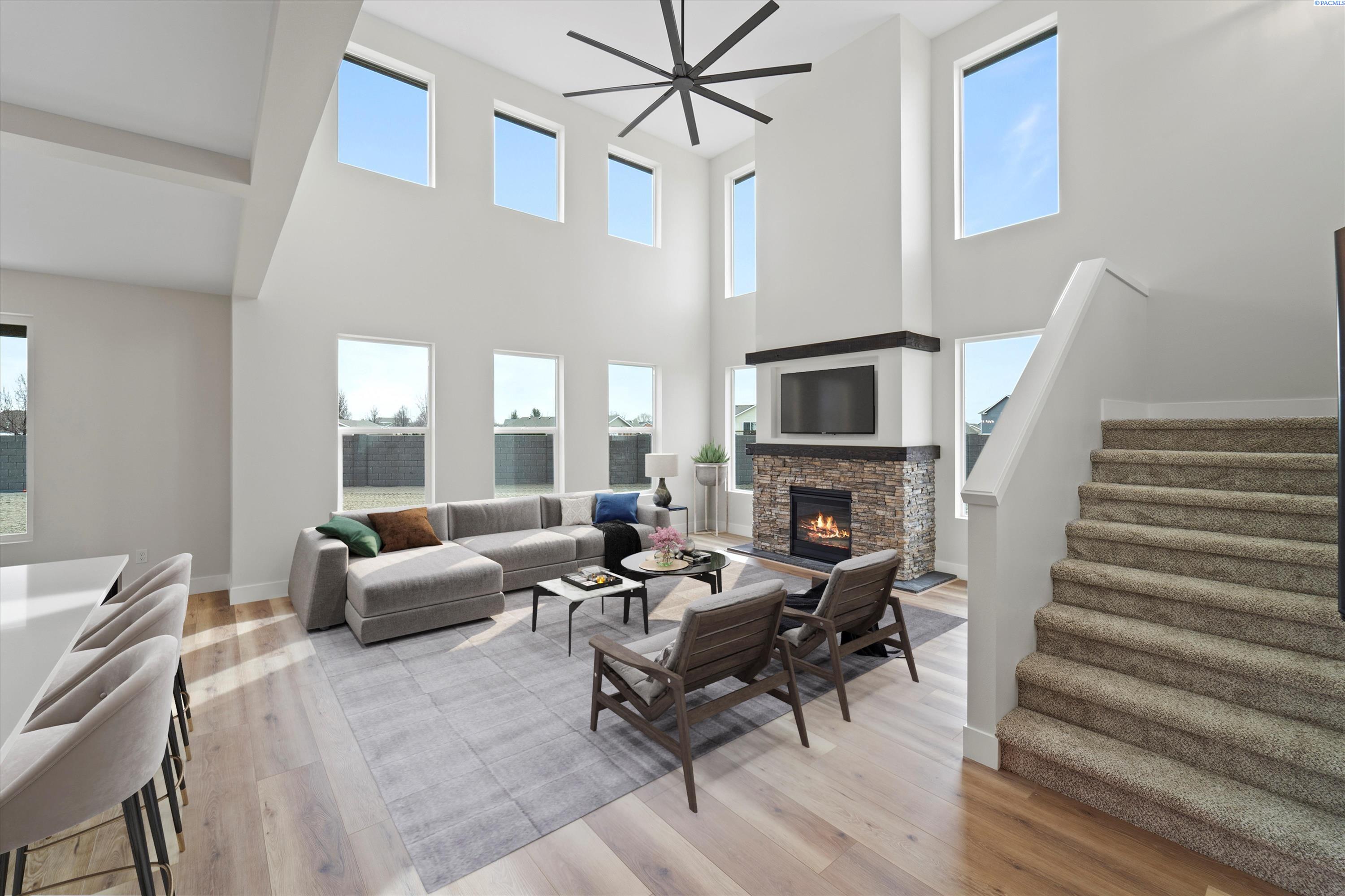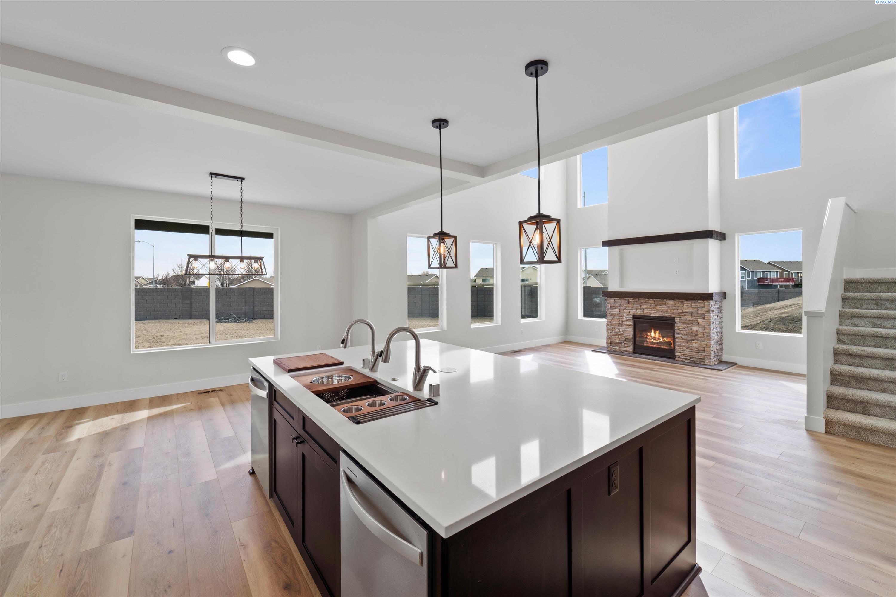 MLS# 291814 Moving into the living room, you will immediately notice the beautiful fireplace that is the centerpiece of the room. The fireplace is made of natural stone and has a rustic wooden mantel. The living room also features large windows on either side of the fireplace, providing beautiful views of the surrounding landscape of the large yard and distant hilltops. Adjacent to the living room is the dining room, which features warm light fixtures. The dining room is spacious and ideal for entertaining guests, with access to a large patio. The kitchen is located just off the dining room and is equipped with all the modern appliances you would expect and more. Like the double dishwashers and a 45" farm sink with custom modules and double faucets. This kitchen is a real cooks delight with huge island to work on prepping and keeping up with the on goings in this social plan. The kitchen features a beautiful tile backsplash, quartz countertops, and lots of cabinet space for storage. The bedrooms in this home are spacious and feature plush carpet and all have walk in closets. The master bedroom has the largest walk-in closet and an ensuite bathroom with a beautiful tiled walk-in shower containing two shower heads. The cabinets are suspended and mirrors custom with accent lighting. The other bedrooms are good-sized and share a bathroom. Finally, this home also has a large outdoor living space with a covered patio, perfect for enjoying the beautiful views and fresh air. The covered patio features space for entertainment and keeps you cool on warm summer days. Overall, this new home with traditional finishes is a beautiful blend of classic and modern design elements. It is spacious, comfortable, and perfect for families or anyone who appreciates classic design. Listing agents related to seller