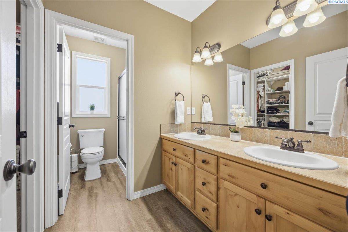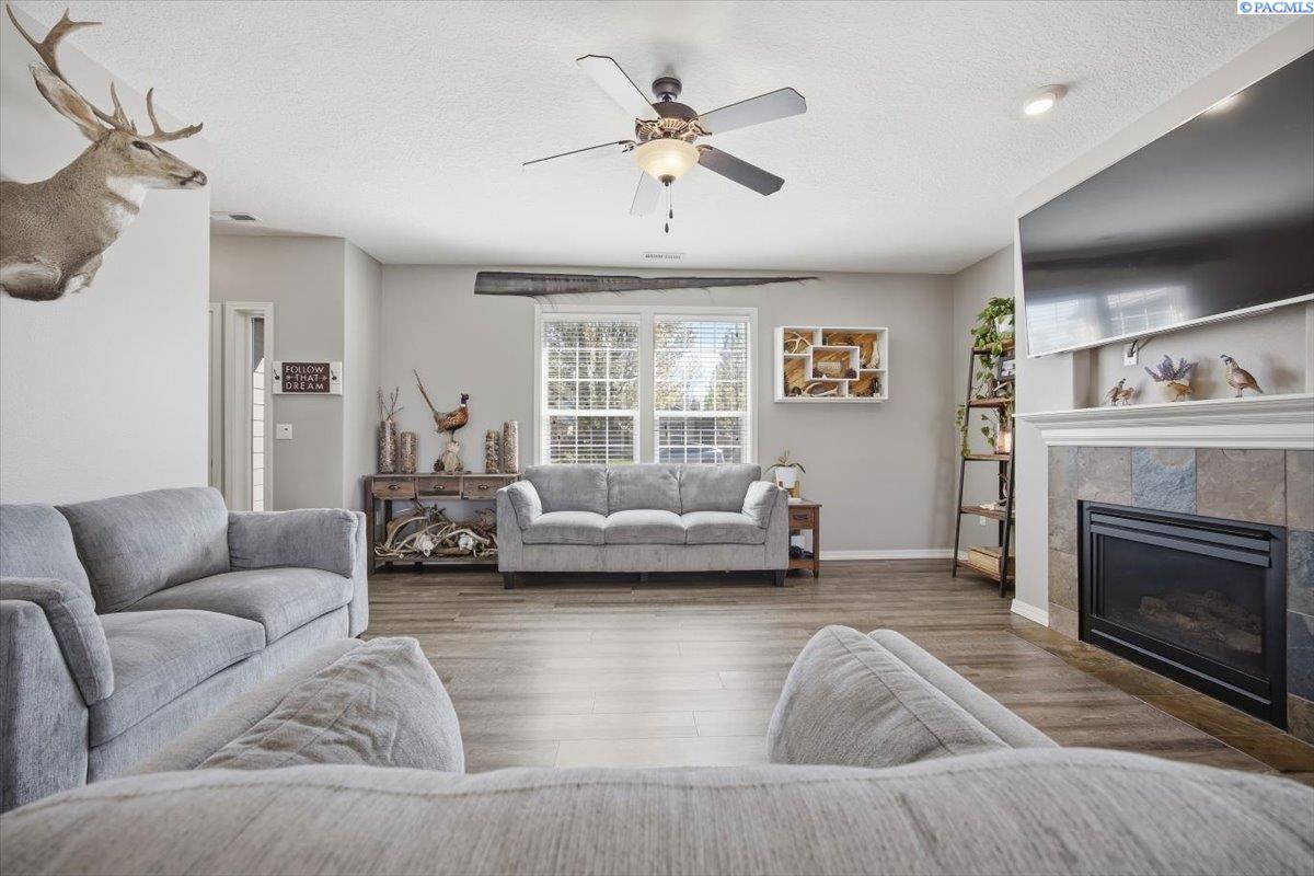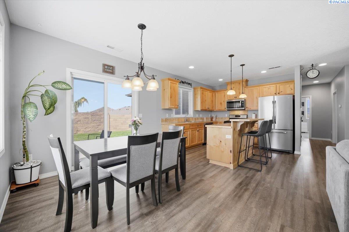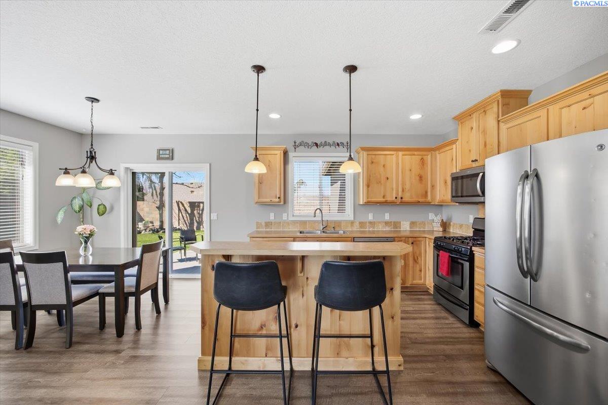 Move-in ready and meticulously maintained, this South Kennewick gem checks all the boxes! Featuring fresh interior paint and an open-concept layout, this 3-bedroom, 2-bath home offers comfortable, modern living with durable LVP flooring throughout the main spaces & newer carpet in the bedrooms for that cozy vibe! The kitchen comes fully equippedâall appliances stay, including the washer and dryerâmaking your move seamless from day one. Step outside to a quiet, private backyard complete with a brand-new cement fence and gate, plus beautifully manicured landscapingâperfect for relaxing or entertaining. The 2-car garage adds convenience and extra storage. Located in the desirable Creekstone community, enjoy paved walking paths throughout, two community parks with basketball courts and playgrounds, and expansive, well-maintained green spaces for recreation. Residents also benefit from private gated parking for boats, trailers, and RVs. Ideally situated near shopping, schools, freeways, and the riverâthis home truly has it all. Bring the moving truck and settle right in!