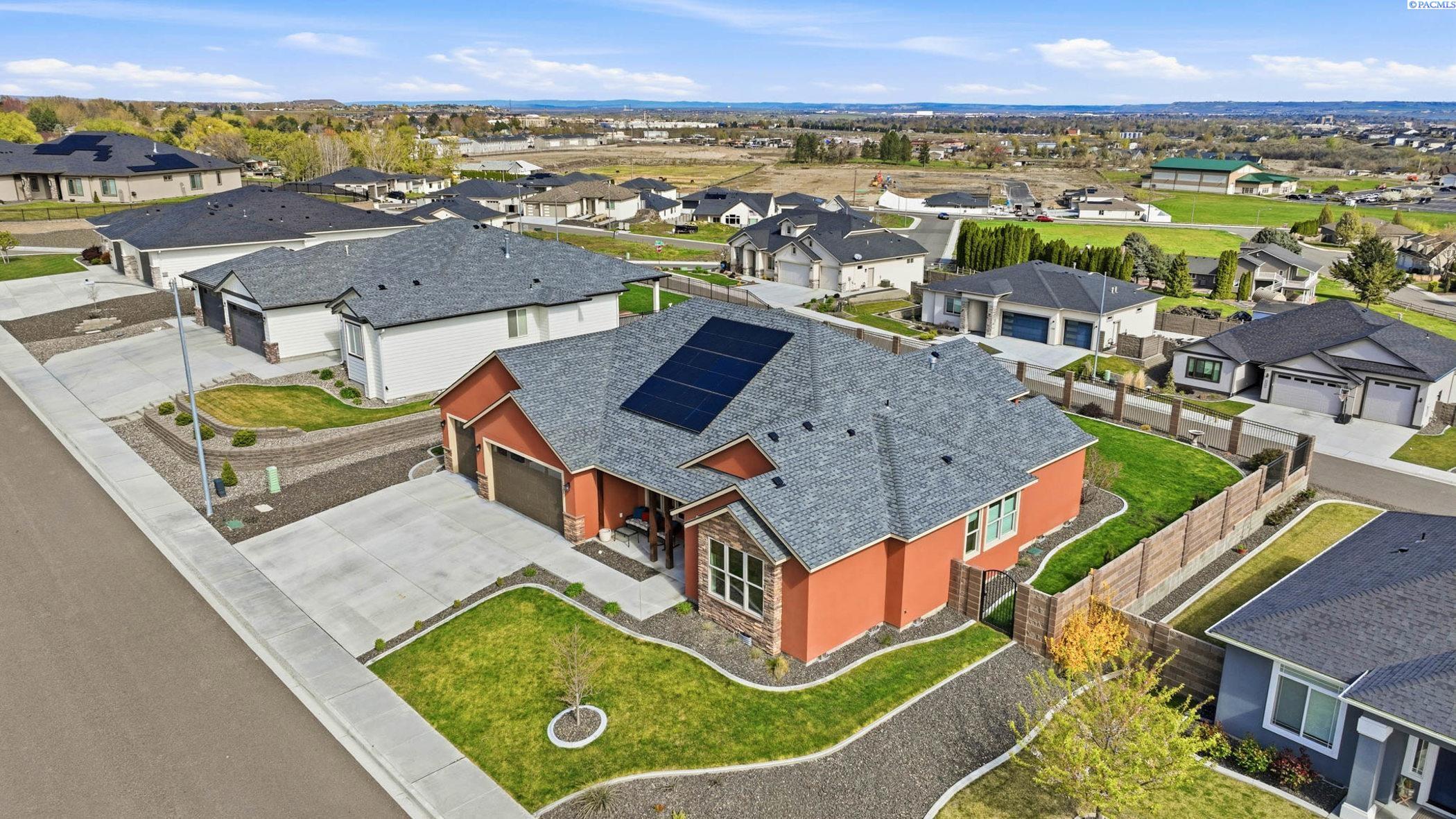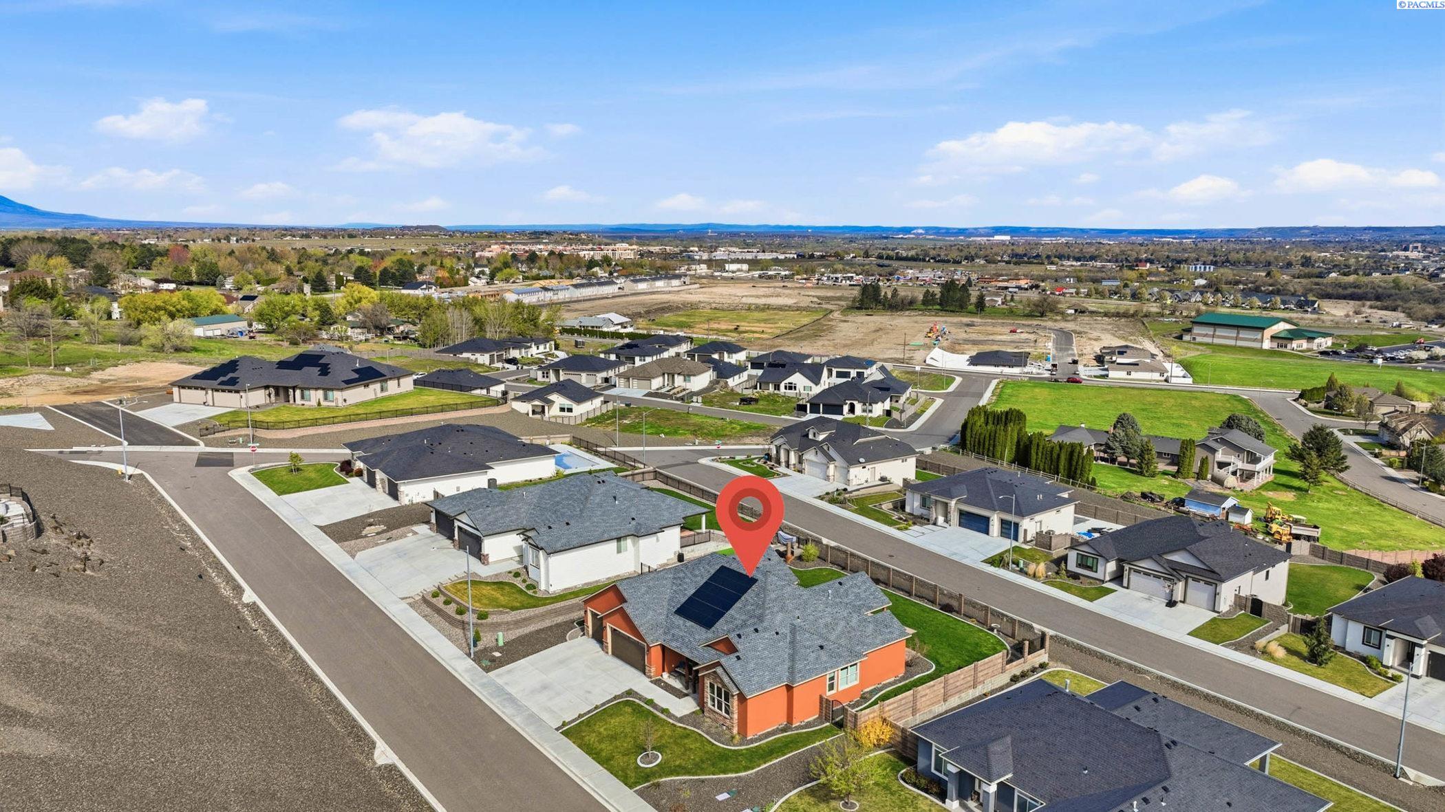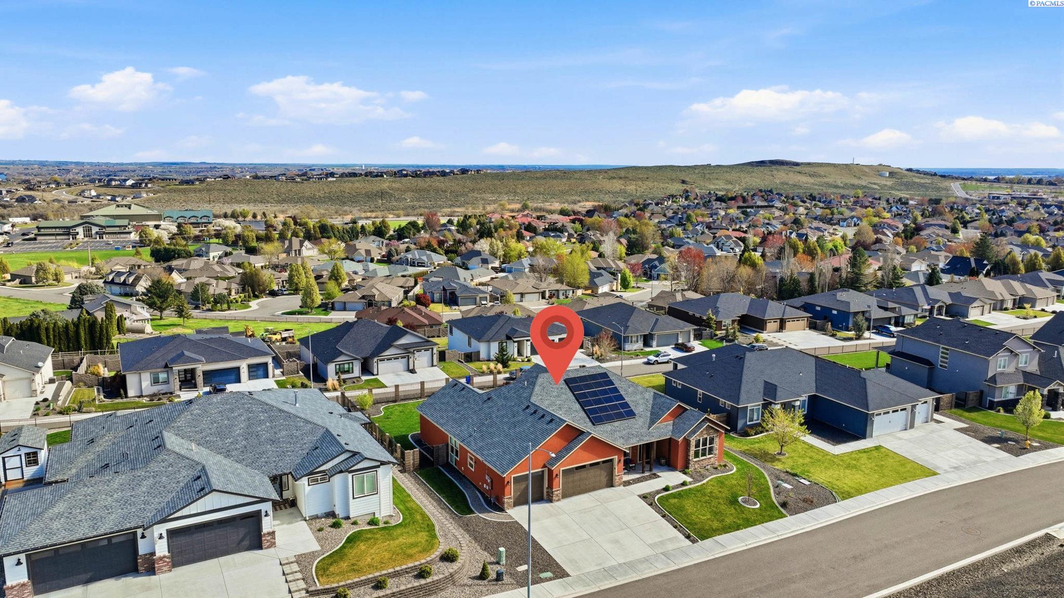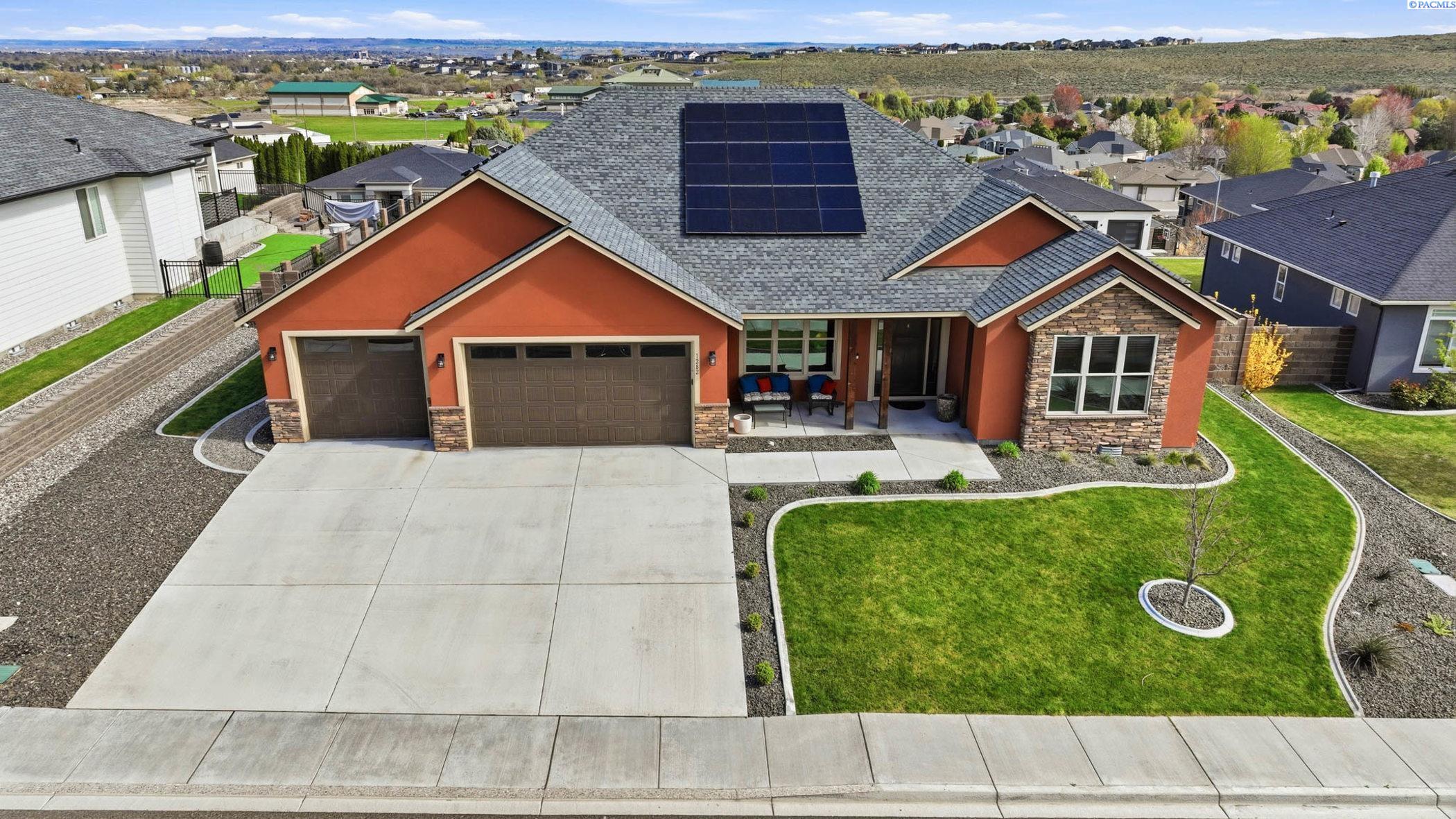 MLS# 291873 Perched in the sought-after community of Jolianna Estates, this South Richland gem offers the kind of everyday luxury that feels both elevated and effortlessly livable.Step inside and youâre greeted by a sense of space and intentionâ2,587 square feet designed to make life flow beautifully. The great room is truly the heart of the home, where custom-built-ins frame a stunning stone fireplace, and wood beam accents add warmth and character overhead. Itâs the kind of space that practically invites cozy evenings and lively gatherings alike.The kitchen doesnât just keep upâit shines. A generous center island anchors the space, surrounded by rich stained cabinetry and sleek quartz countertops that continue throughout the home. Just off the kitchen, the nook features custom cabinetry and even a wine fridgeâbecause sometimes dinner deserves a perfect pairing.Need a little flexibility? Youâve got it. A dedicated office makes working from home feel productive and private, while a separate dining area is ready for everything from holiday feasts to casual Sunday dinners.The primary suite is a retreat in every sense of the word. Think spa-like mornings and peaceful evenings, complete with a large mud-set tile walk-in shower, soaking tub, dual vanity, and a truly impressive walk-in closet that might just inspire a wardrobe upgrade.Throughout the home, thoughtful finishes elevate every stepâhardwood floors in the main living areas, tile in all the right places, and a layout that balances openness with comfort.Outside, the fully landscaped yard and sweeping views set the stage for quiet mornings, sunset unwinding, and everything in between. And with solar already in place, youâll enjoy both beauty and efficiencyâyour future self will thank you.With a finished 3-car garage, plenty of space to live and grow, and details that make daily life feel just a bit more special, this home is ready to welcome its next chapter⦠and it might just be yours.