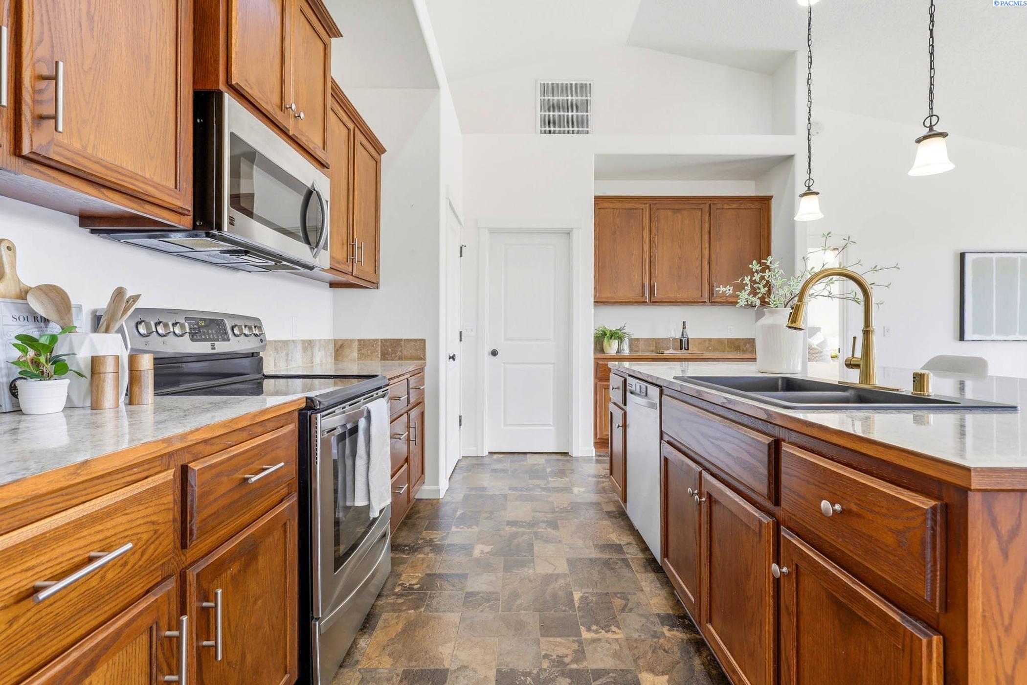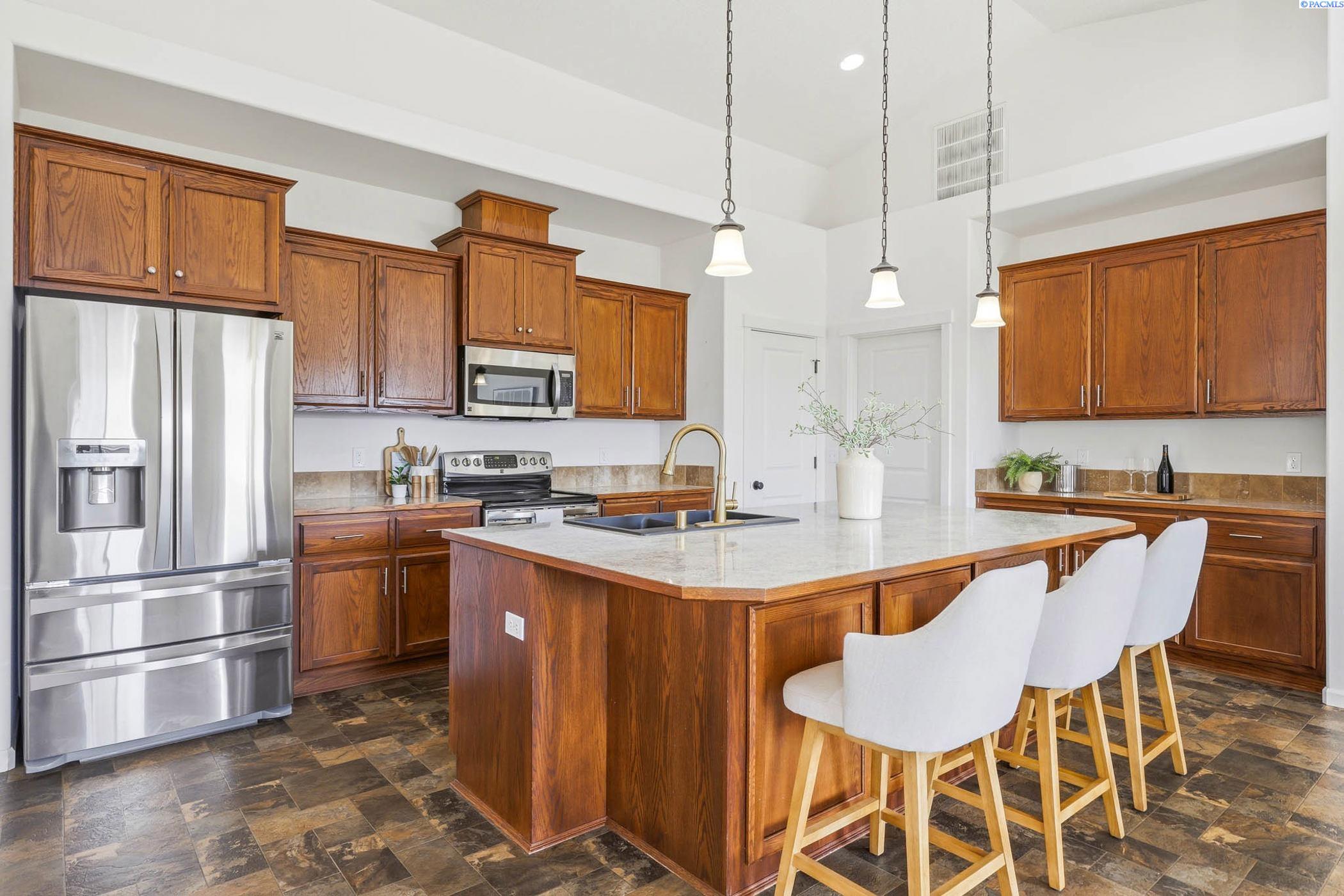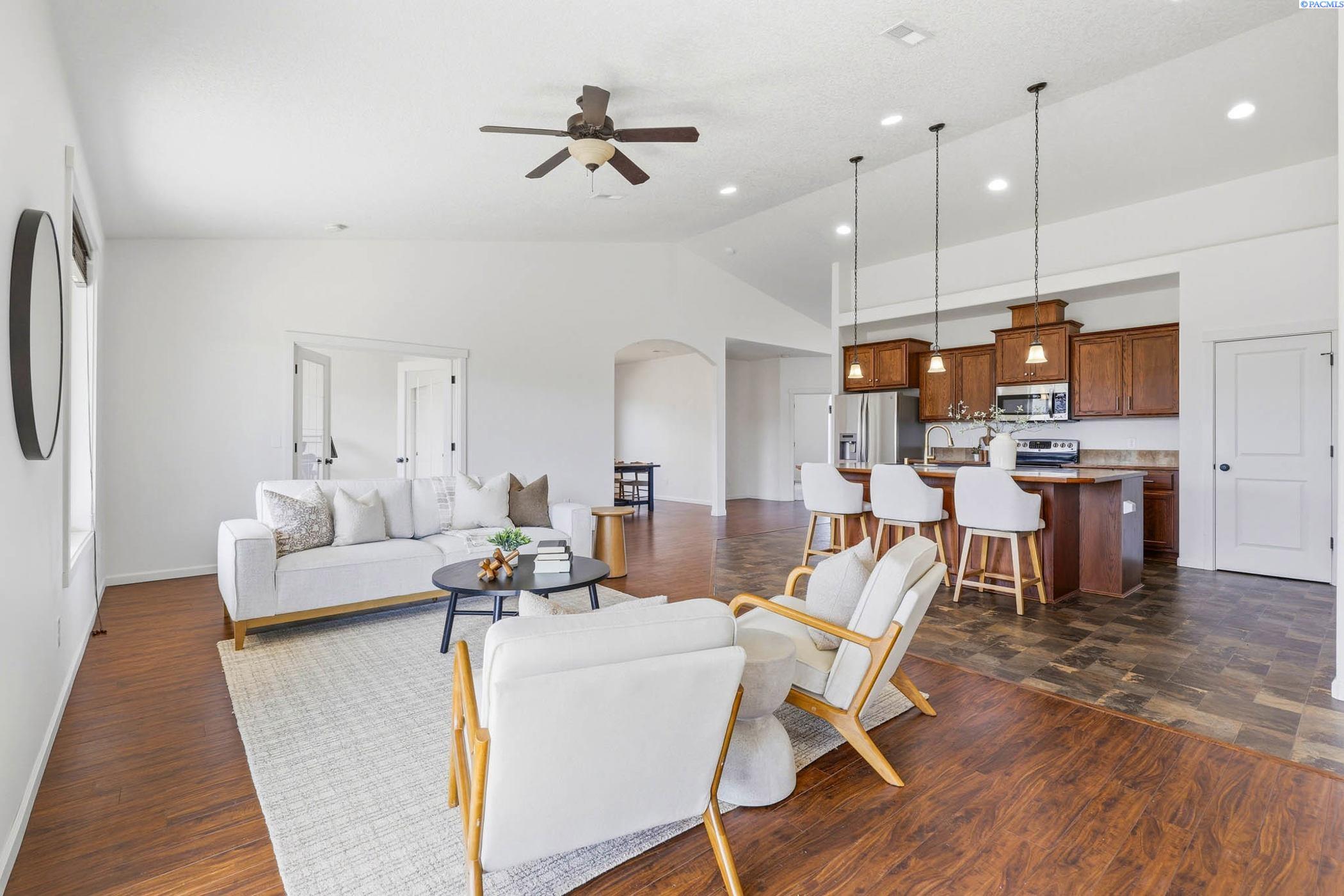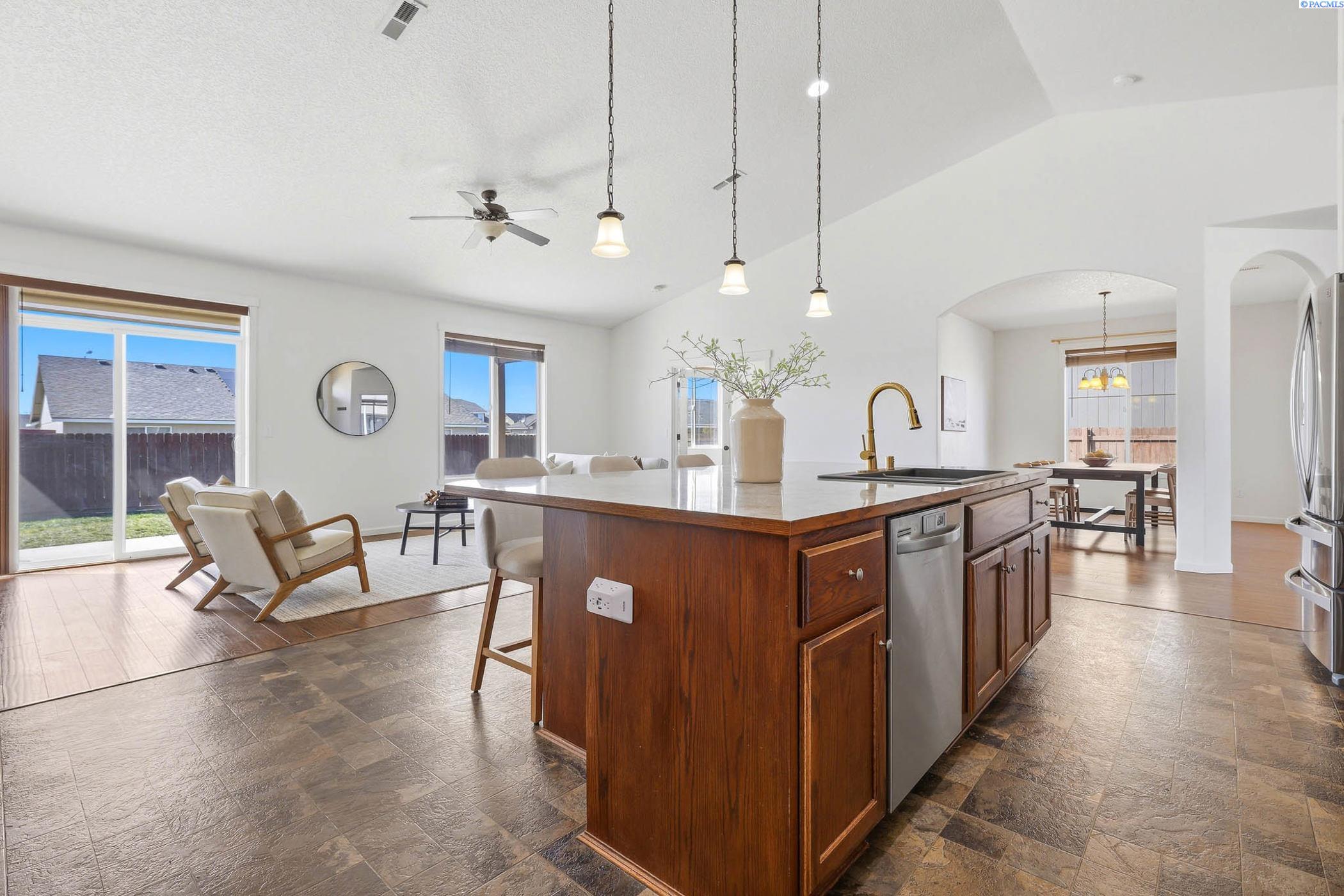 MLS#291897. OPEN HOUSE SUN 4/12 10am-12pm!! Well-maintained 2012-built rambler in West Pasco offering 1,979 sq ft with 3 bedrooms plus an office/flex space. Open-concept kitchen and living area with vaulted ceilings, abundant natural light, and a massive kitchen island that is the hub of this home. Also features an adjacent dining room for added functionality and entertaining. Spacious primary suite features double vanities, garden tub, walk-in shower, and a large walk-in closet. Enjoy outdoor living with a large covered patio and plenty of space to run around or relax. Additional highlights include a separate laundry room with storage, a big 4-car tandem garage, and all stainless steel appliances includedâwasher and dryer less than a year old. Located in a quiet, established neighborhood close to schools and parks. Move-in ready!