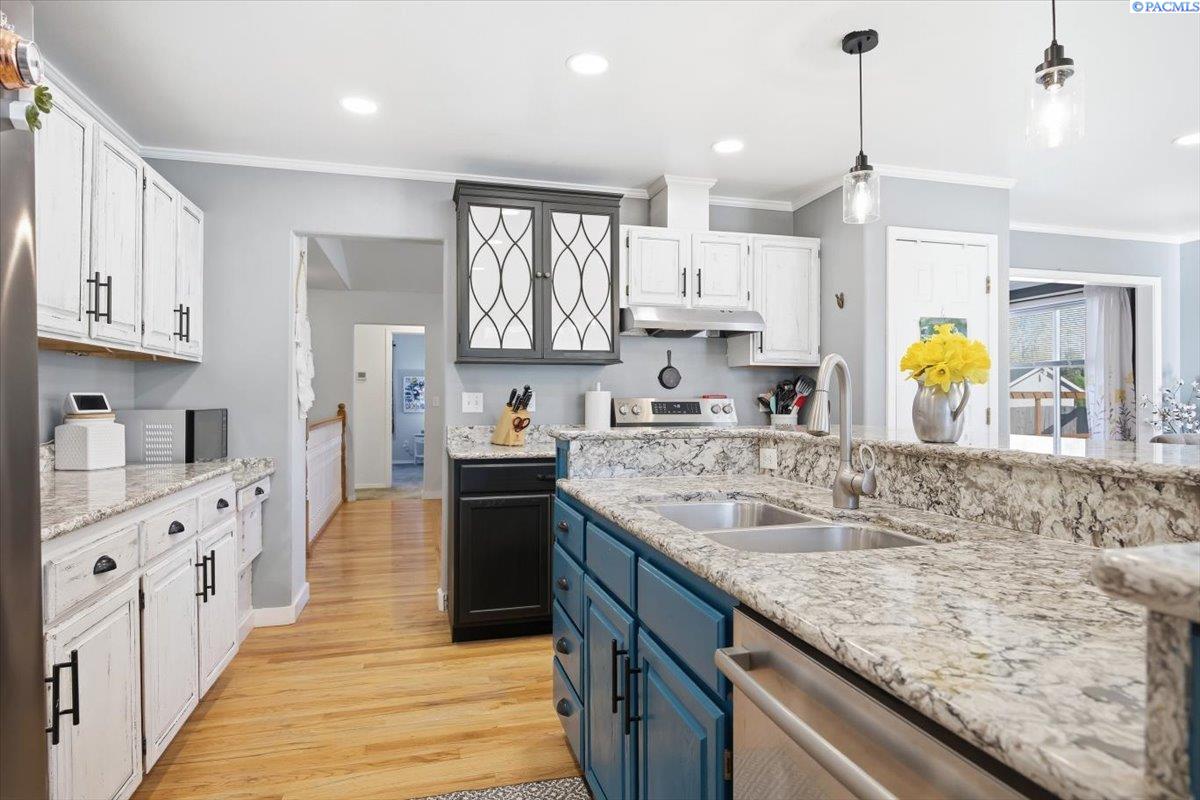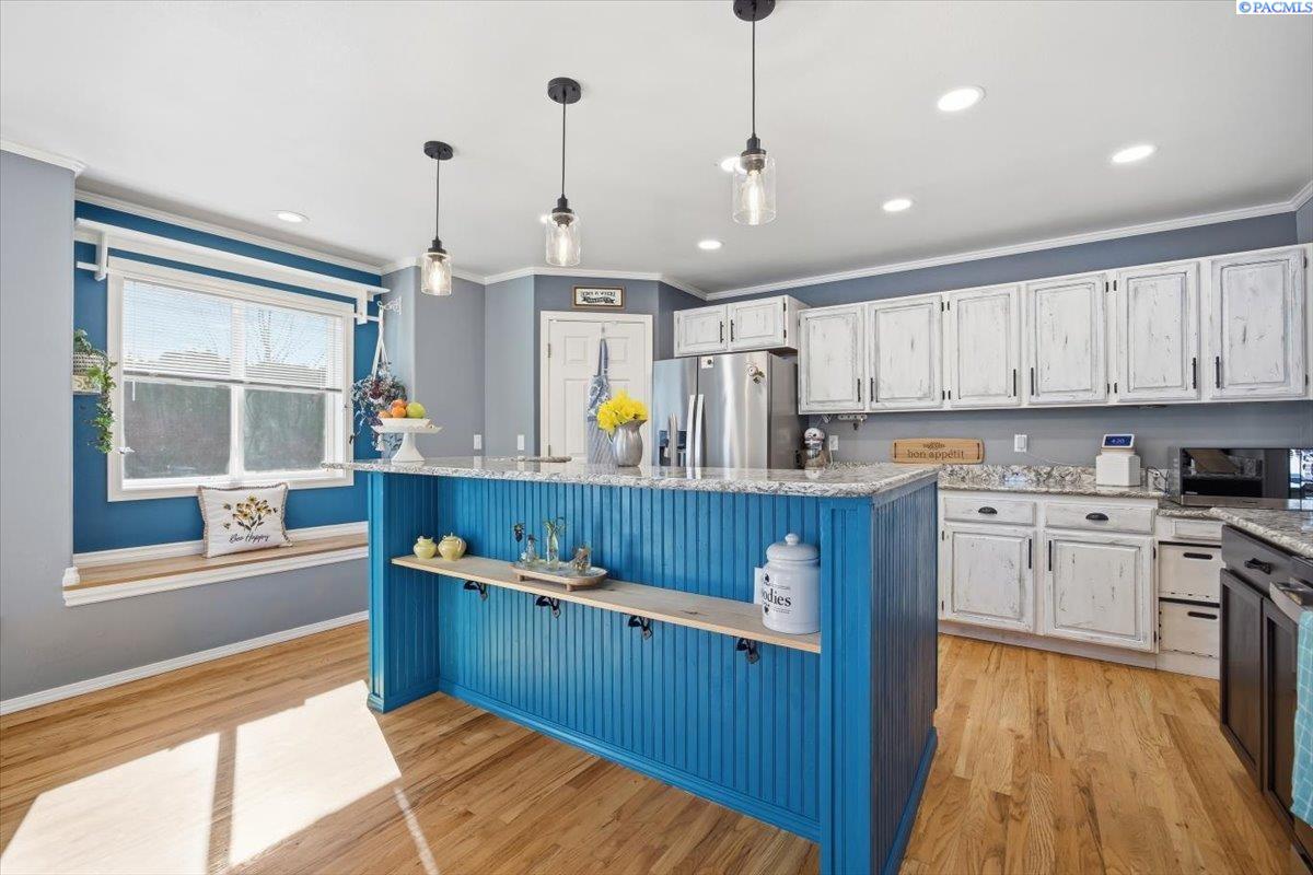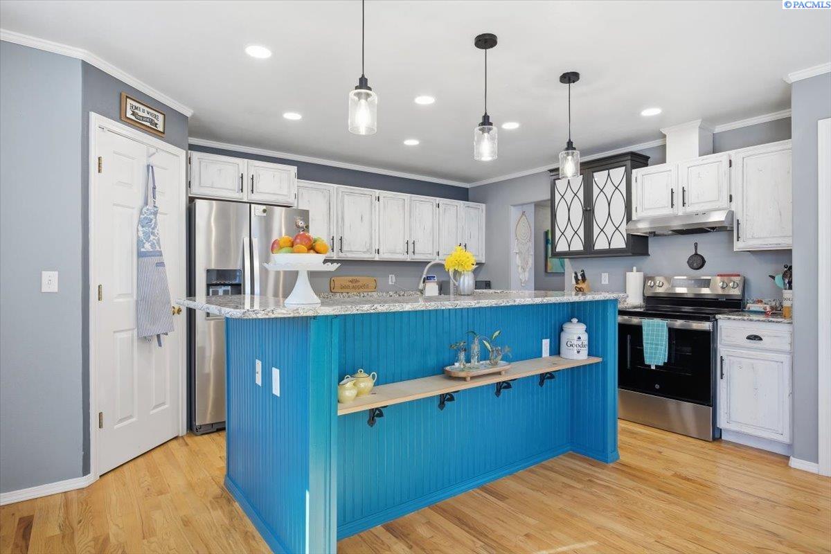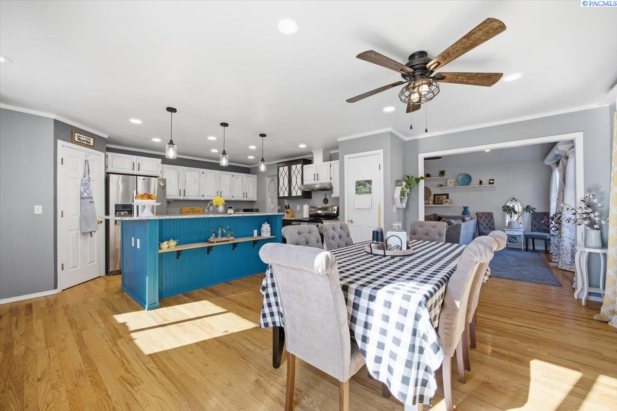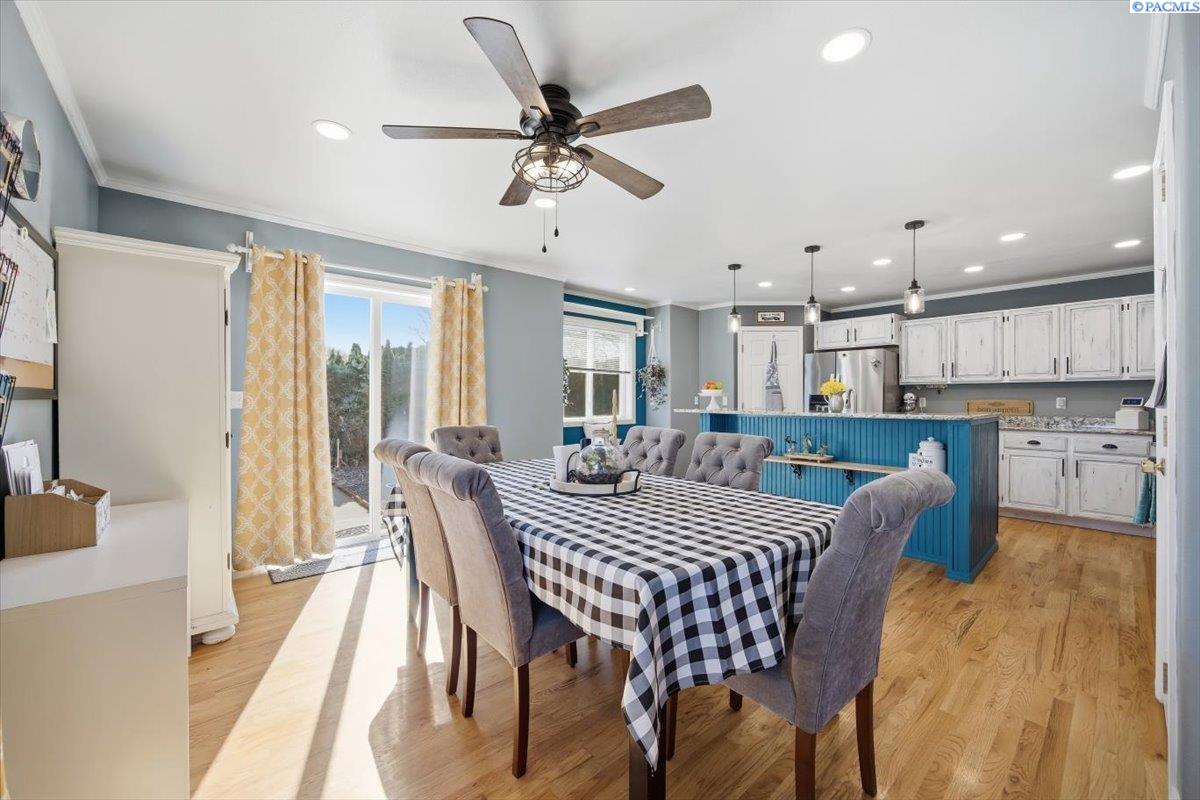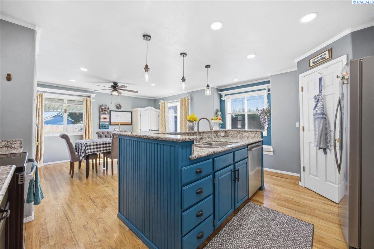 MLS# 291923 Spacious 1-story home with finished basement in an unbeatable location next to Horse Heaven Hills Park! Offering over 3,500 sqft, this home features 7 bedrooms, 3 bathrooms (2 on the main level and 1 downstairs), a 2-car garage, RV parking, and a separate 16x28 shop, perfect for extra storage, hobbies, or workspace. Energy-efficient solar panels help keep utility costs down.The main level welcomes you with a large living area and vaulted ceilings, plus a spacious dining area that flows seamlessly into the kitchen. Youâll love the walk-in pantry, newer appliances, granite countertops, deep sink, and abundant cabinet and counter space. A sliding door off the dining area opens to the patio and backyard, making indoor-outdoor living easy. The oversized laundry room doubles as a mudroom, complete with a deep utility sink and folding space. The primary suite is a true retreat with vaulted ceilings, a sitting area, dual vanities, a large walk-in closet, and a walk-in tile shower. Two additional bedrooms and a beautifully designed main bathroom are also located on the main level. Downstairs, youâll find an expansive family room with custom finishes and dimmable lighting, plus four more bedrooms, a full bathroom, and two large storage areas with shelving. Additional features include hardwood floors, custom trim and millwork, a covered patio, and a backyard retreat with garden area, all surrounded by a huge park setting that offers space, privacy, and room to enjoy the outdoors. This home truly has the space, functionality, and location youâve been looking forâdonât miss it! Call your favorite realtor for a private tour.