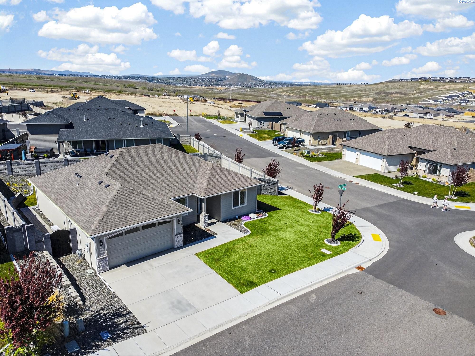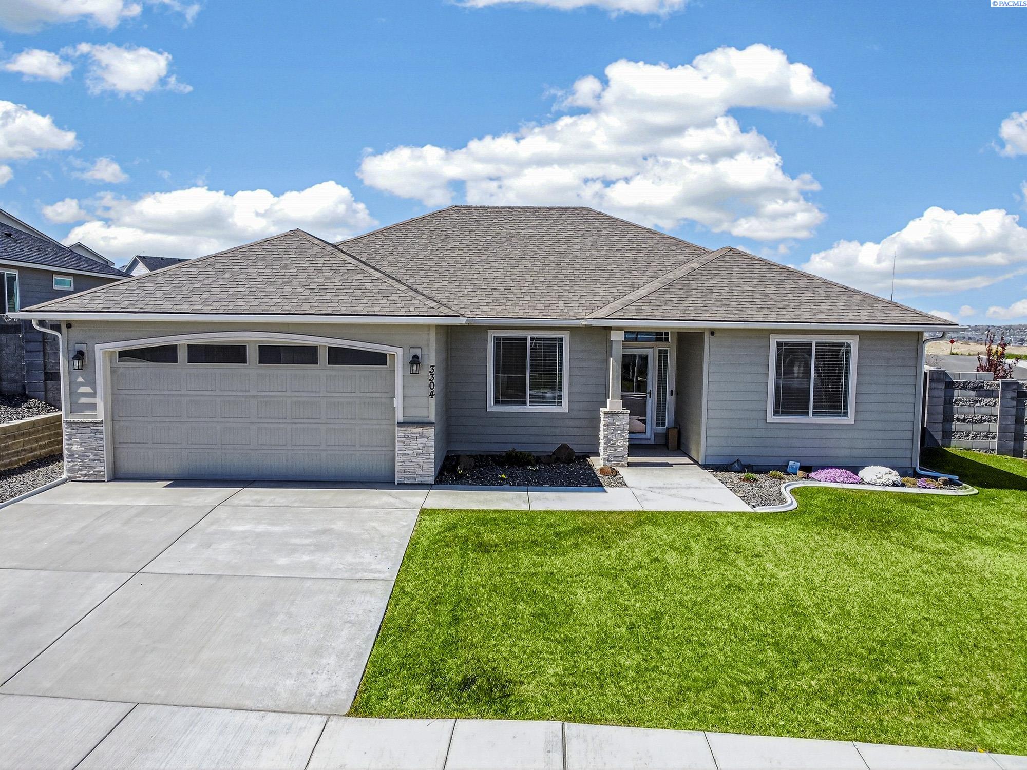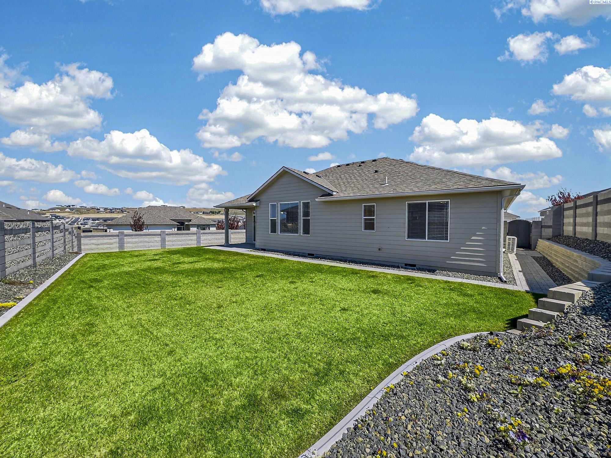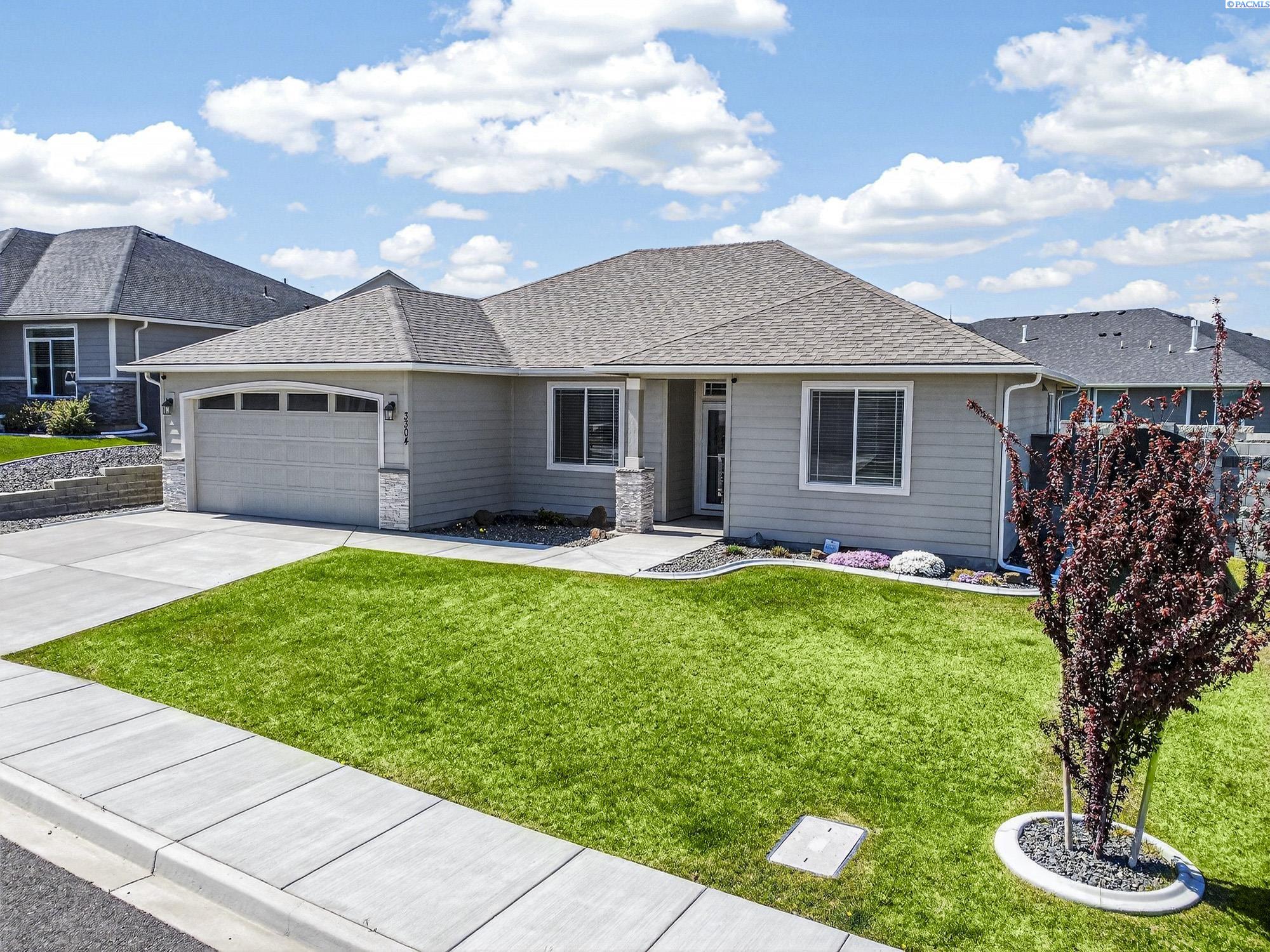 MLS# 291925 This exquisite home in Apple Valley, Kennewick, Washington, built by Landmark Homes, is a true gem on the market, featuring high-quality finishes such as elegant quartz countertops and a modern backsplash. The kitchen boasts a dedicated island with a cozy nook for seating, large pantry, complemented by soft-close cabinetry, making it perfect for both cooking and entertaining. With three spacious bedrooms, each equipped with generous closets, and a functional laundry room complete with a sink, quartz counters, and extra cabinet storage, practicality meets style. The luxurious bathrooms include a stunning walk-in tile shower and a dual vanity with under-mount sinks, reflecting the sellerâs pride of ownership. Additional comforts include ceiling fans, window treatments throughout the home. Water softener and high-end appliances! The property features a beautiful block wall, professional landscaping, thoughtful curbing, and an extra walk path in the backyard, along with a covered patio perfect for relaxation and entertaining. Enjoy peek-a-boo territorial views, all while being conveniently located just minutes from essential amenities, making this home ideal for anyone seeking modern luxury in a desirable area.
