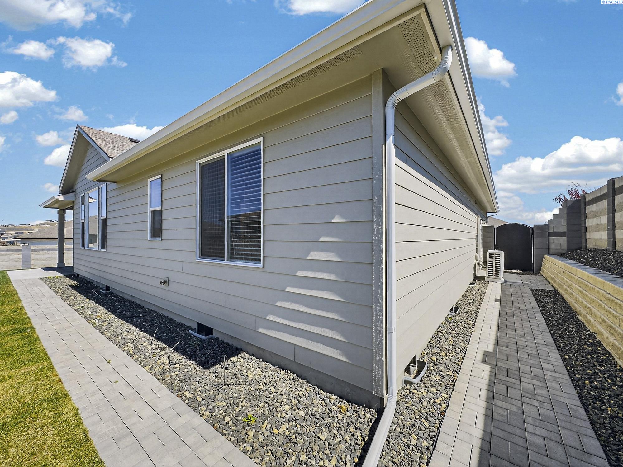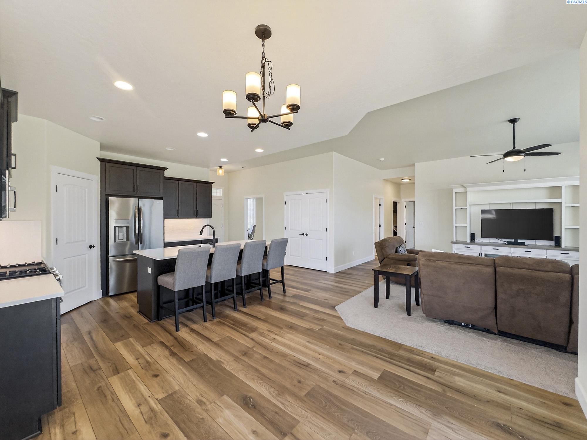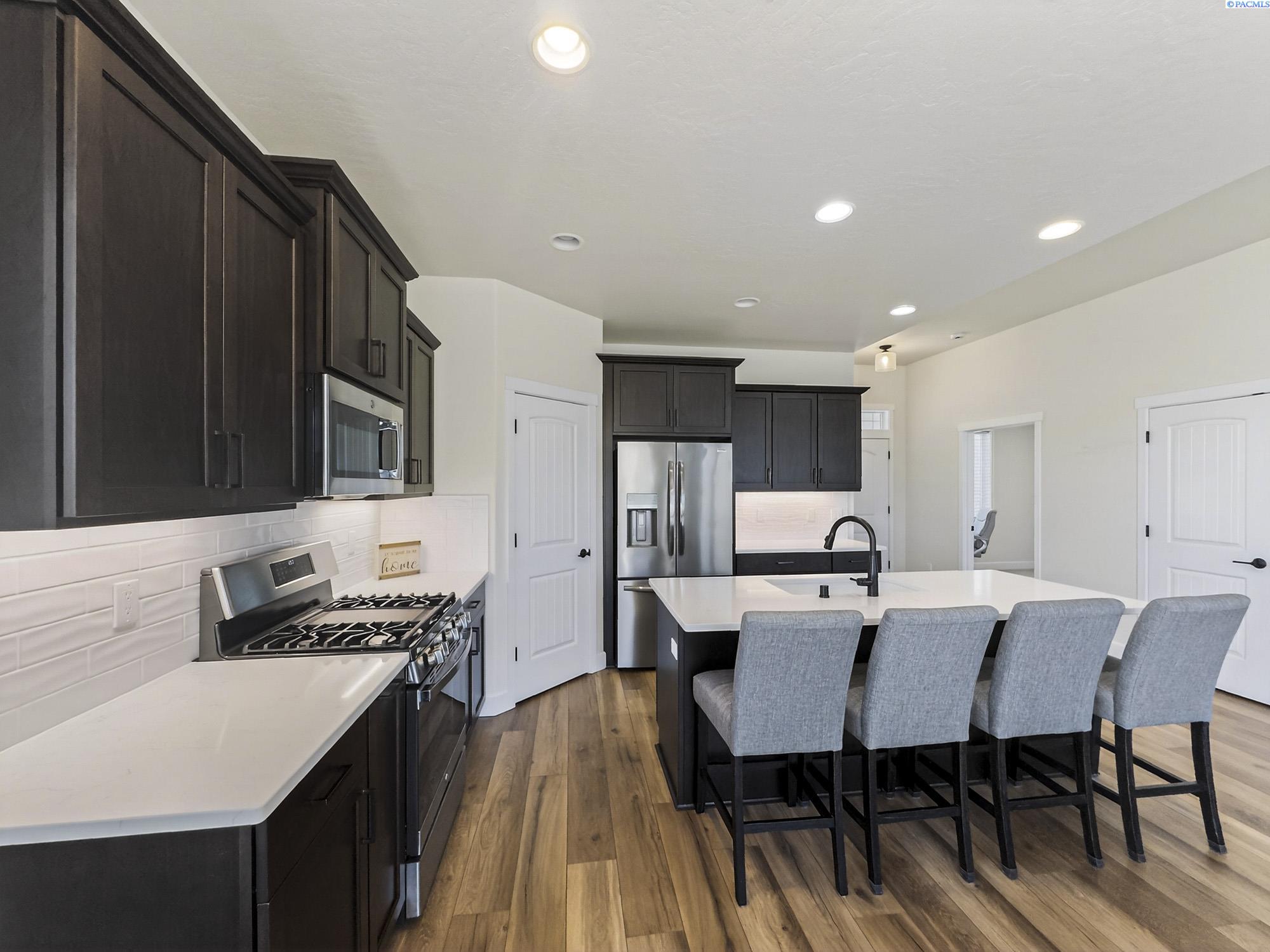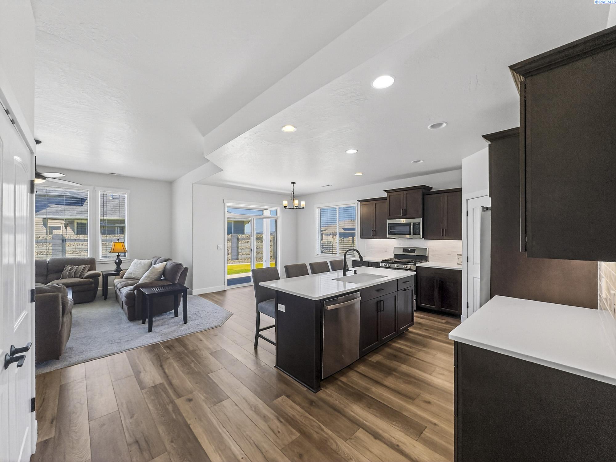 MLS# 291925 This exquisite home in Apple Valley, Kennewick, Washington, built by Landmark Homes, is a true gem on the market, featuring high-quality finishes such as elegant quartz countertops and a modern backsplash. The kitchen boasts a dedicated island with a cozy nook for seating, large pantry, complemented by soft-close cabinetry, making it perfect for both cooking and entertaining. With three spacious bedrooms, each equipped with generous closets, and a functional laundry room complete with a sink, quartz counters, and extra cabinet storage, practicality meets style. The luxurious bathrooms include a stunning walk-in tile shower and a dual vanity with under-mount sinks, reflecting the sellerâs pride of ownership. Additional comforts include ceiling fans, window treatments throughout the home. Water softener and high-end appliances! The property features a beautiful block wall, professional landscaping, thoughtful curbing, and an extra walk path in the backyard, along with a covered patio perfect for relaxation and entertaining. Enjoy peek-a-boo territorial views, all while being conveniently located just minutes from essential amenities, making this home ideal for anyone seeking modern luxury in a desirable area.