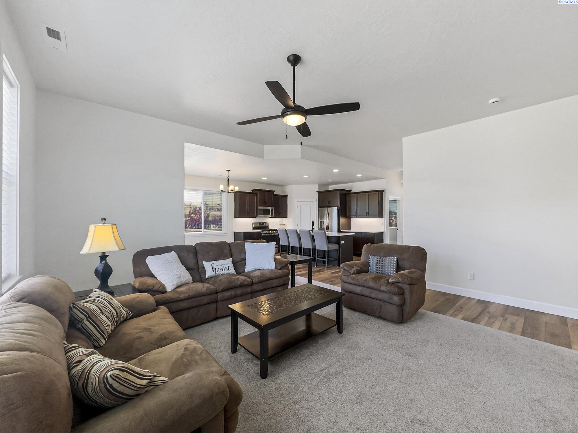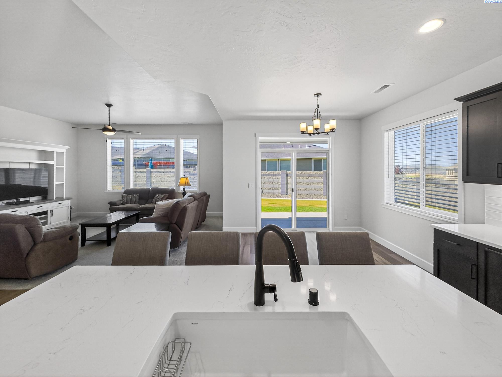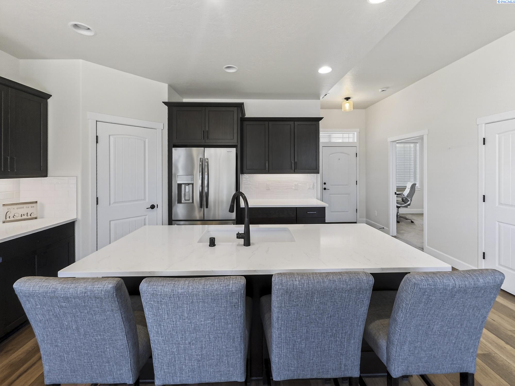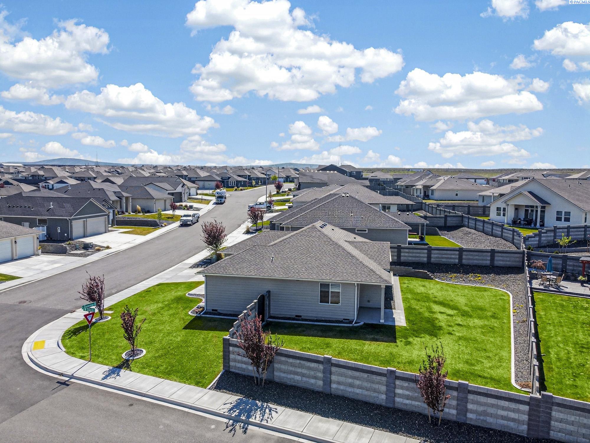 MLS# 291925 This exquisite home in Apple Valley, Kennewick, Washington, built by Landmark Homes, is a true gem on the market, featuring high-quality finishes such as elegant quartz countertops and a modern backsplash. The kitchen boasts a dedicated island with a cozy nook for seating, large pantry, complemented by soft-close cabinetry, making it perfect for both cooking and entertaining. With three spacious bedrooms, each equipped with generous closets, and a functional laundry room complete with a sink, quartz counters, and extra cabinet storage, practicality meets style. The luxurious bathrooms include a stunning walk-in tile shower and a dual vanity with under-mount sinks, reflecting the sellerâs pride of ownership. Additional comforts include ceiling fans, window treatments throughout the home. Water softener and high-end appliances! The property features a beautiful block wall, professional landscaping, thoughtful curbing, and an extra walk path in the backyard, along with a covered patio perfect for relaxation and entertaining. Enjoy peek-a-boo territorial views, all while being conveniently located just minutes from essential amenities, making this home ideal for anyone seeking modern luxury in a desirable area.
