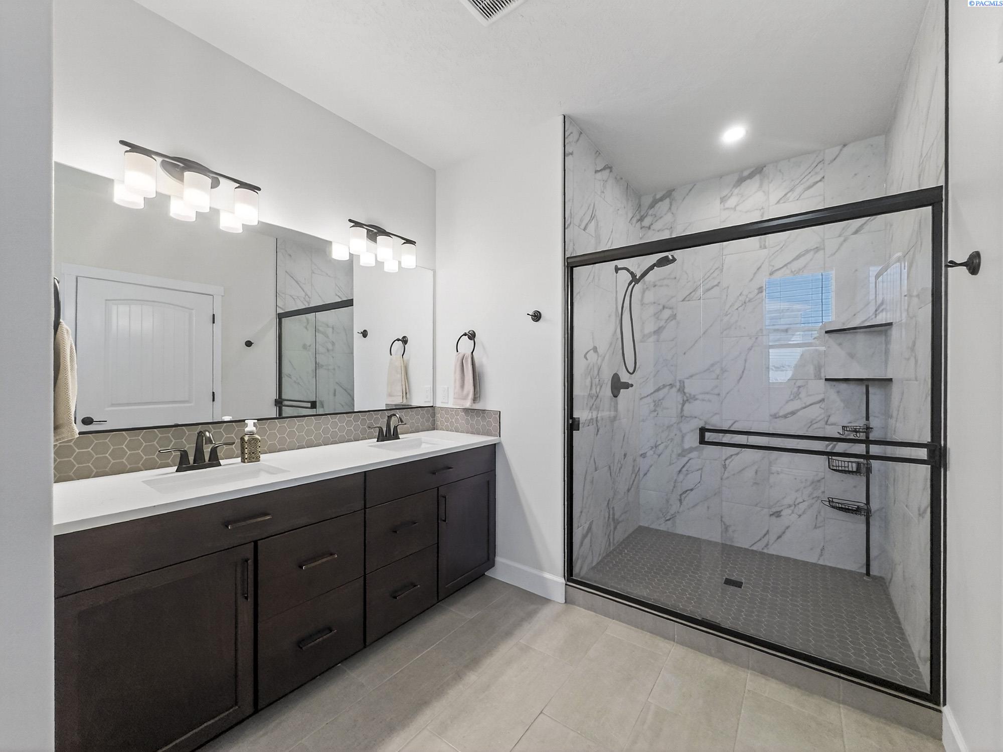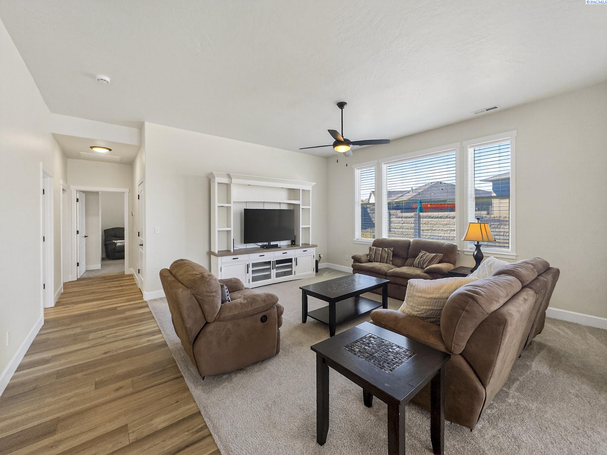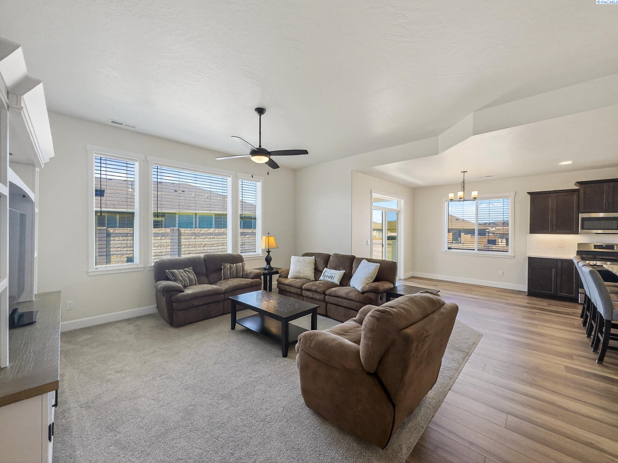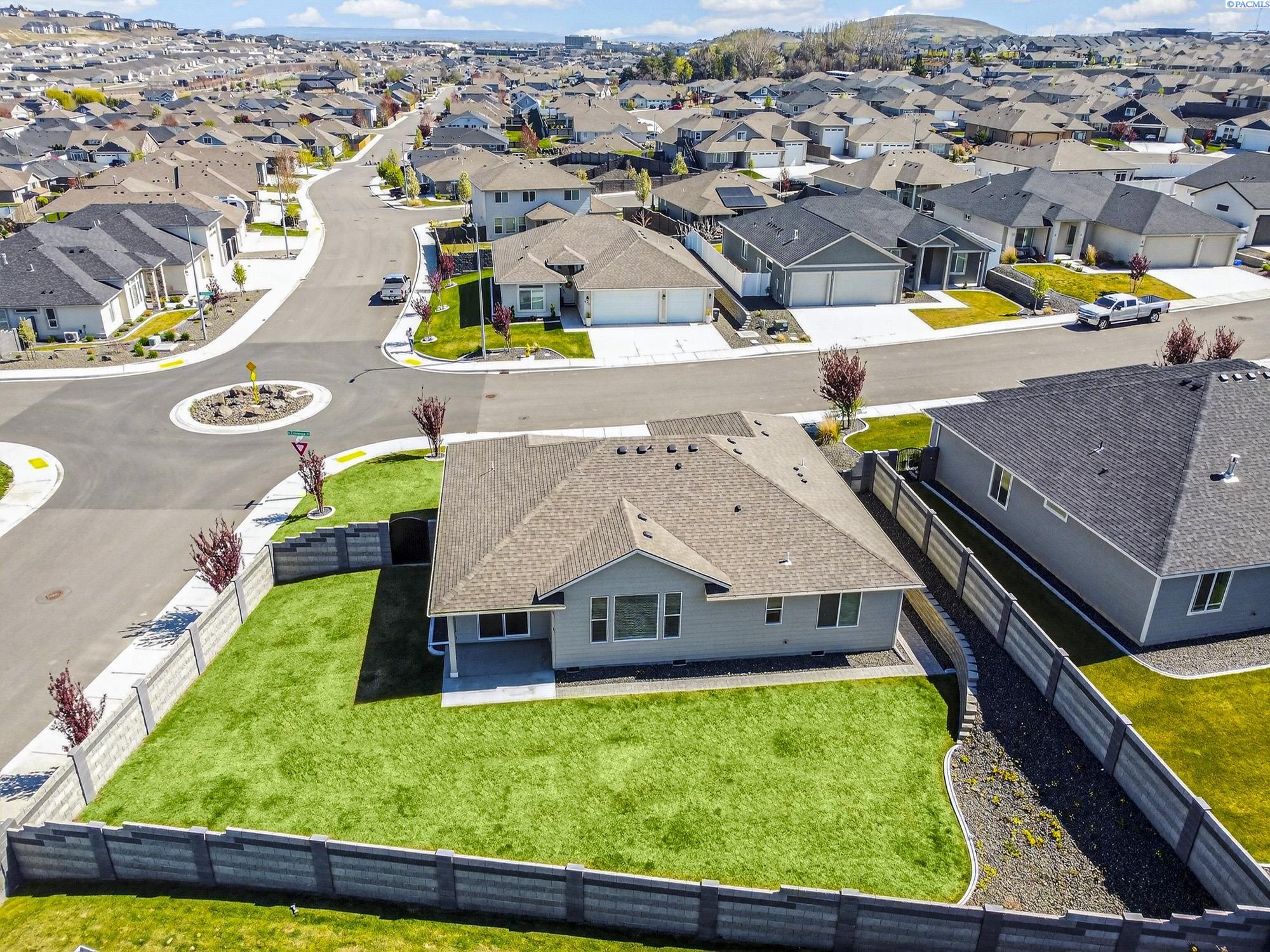 MLS# 291925 This exquisite home in Apple Valley, Kennewick, Washington, built by Landmark Homes, is a true gem on the market, featuring high-quality finishes such as elegant quartz countertops and a modern backsplash. The kitchen boasts a dedicated island with a cozy nook for seating, large pantry, complemented by soft-close cabinetry, making it perfect for both cooking and entertaining. With three spacious bedrooms, each equipped with generous closets, and a functional laundry room complete with a sink, quartz counters, and extra cabinet storage, practicality meets style. The luxurious bathrooms include a stunning walk-in tile shower and a dual vanity with under-mount sinks, reflecting the sellerâs pride of ownership. Additional comforts include ceiling fans, window treatments throughout the home. Water softener and high-end appliances! The property features a beautiful block wall, professional landscaping, thoughtful curbing, and an extra walk path in the backyard, along with a covered patio perfect for relaxation and entertaining. Enjoy peek-a-boo territorial views, all while being conveniently located just minutes from essential amenities, making this home ideal for anyone seeking modern luxury in a desirable area.