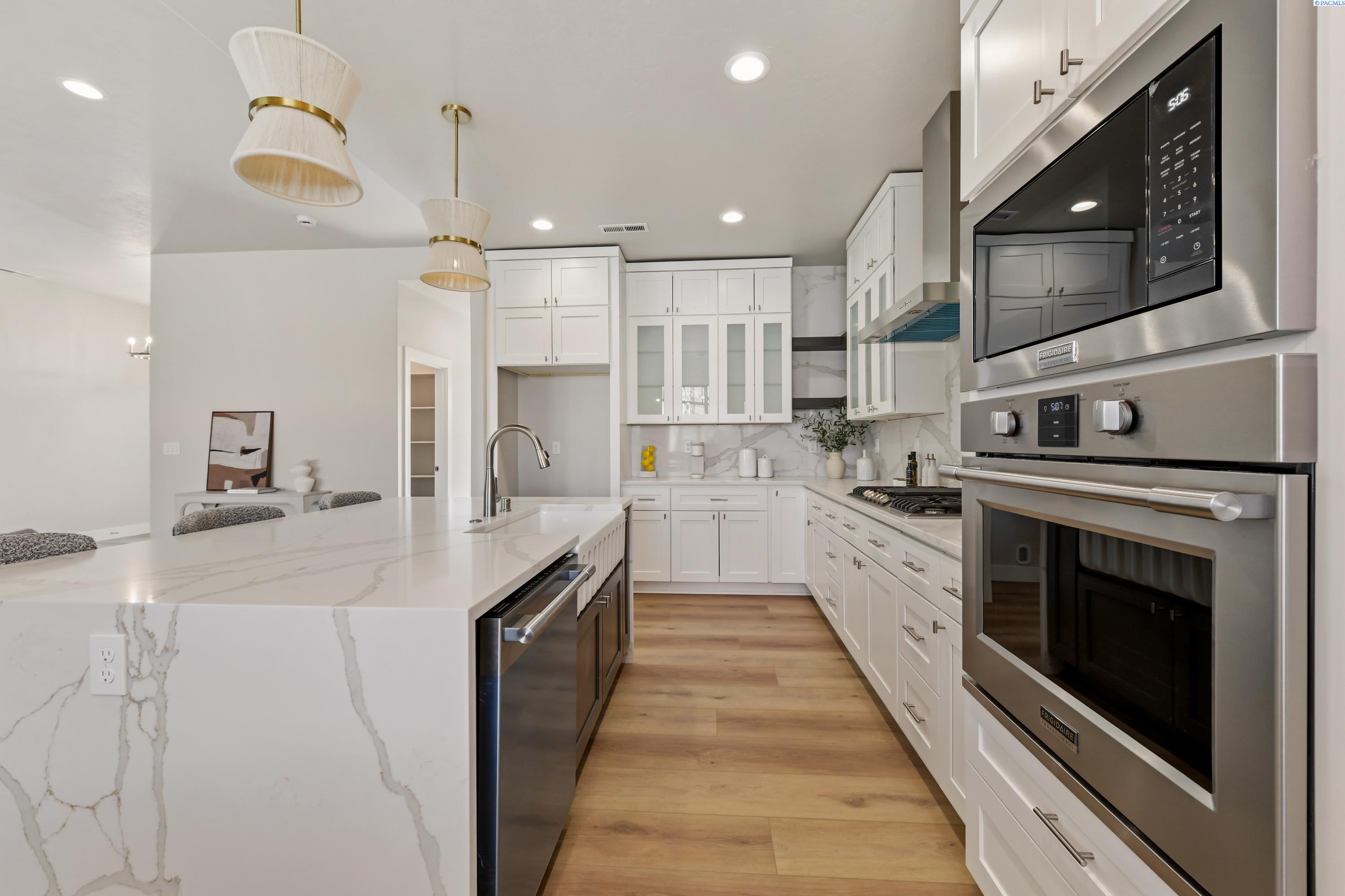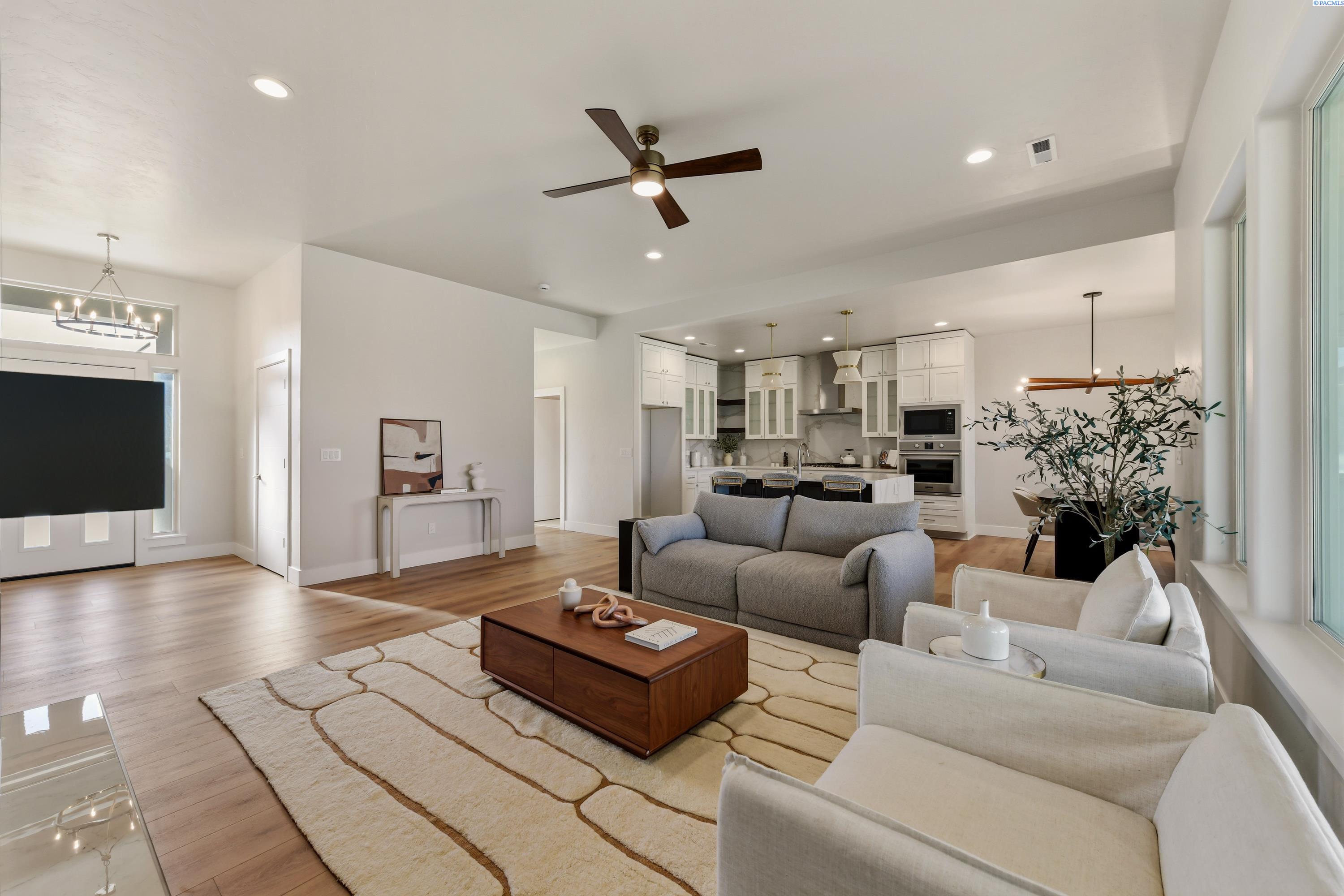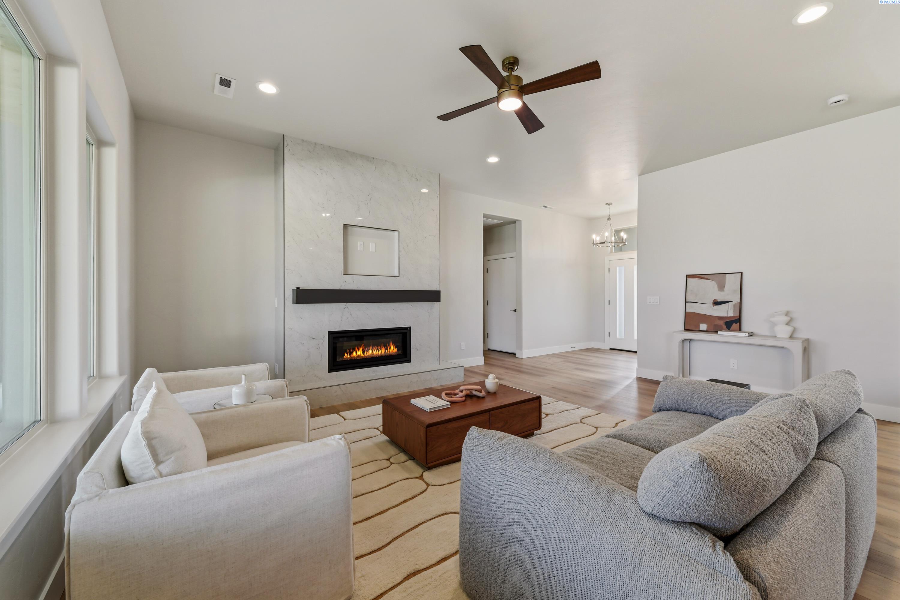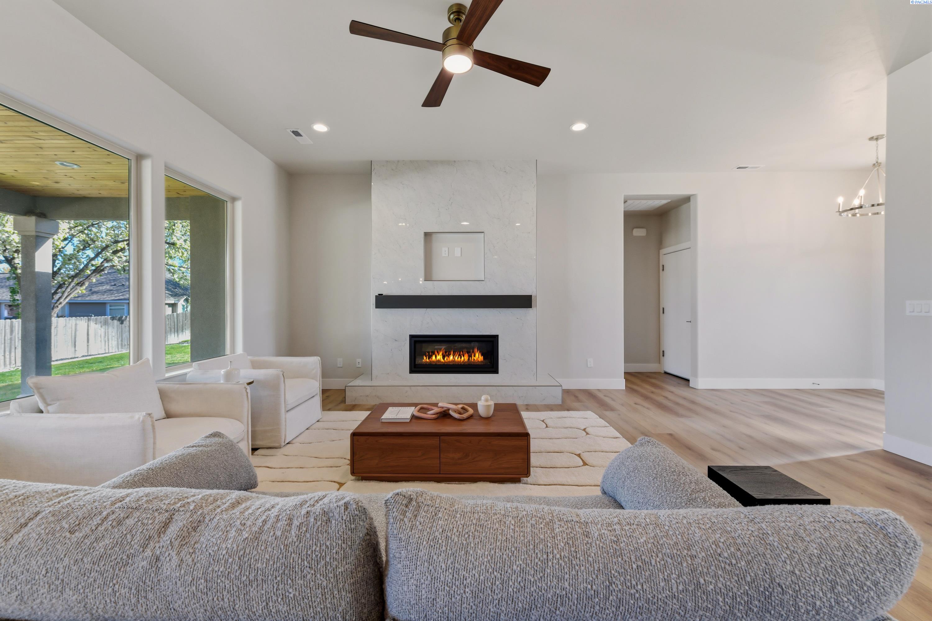MLS# 291940 Would you love to spend your summer at this new address!; Welcome to your stunning new home in Marcello Estates, located in the heart of South Richland. This beautiful Infinity Home boasts 3 spacious bedrooms, 2 full bathrooms, and an expansive great room living space. This brand-new construction is the epitome of modern elegance. From the moment you step through the door, you will be wowed by the attention to detail, high-end finishes, designer light fixtures, and so much more. The main living area features an open floor plan that seamlessly blends the great room, dining, and kitchen spaces together making it perfect for both relaxing and entertaining. This home is pre-wired for a 5.1 surround system for the great room, 2 ambient speakers pre-wired for the covered patio and 2 ambient speakers pre-wired for the master bedroom. The gourmet kitchen is a chefâs dream, complete with sleek stainless steel appliances, waterfall quartz countertops, and plenty of storage space in the walk-in pantry. As you step outside you will enjoy the tongue and groove ceiling of the covered patio while in your park like backyard. When itâs time to unwind, you will love retreating to the serene master suite with a scenic view of mature landscape and also boasts a luxurious ensuite bathroom with spa like free standing tub, walk-in shower, exquisite vanity area with tiled wall and floating mirrors and attached large walk-in closet complete with an oversized mirror. The split bedroom design offers a comfortable layout, but wait thereâs more; your new garage has a bay that is approximately 27â long with a 12â high door imagine the storage this will provide. Schedule your private showing today with your favorite agent or visit our model home to have one of our real estate professionals guide you through this gorgeous home that could be your next address.