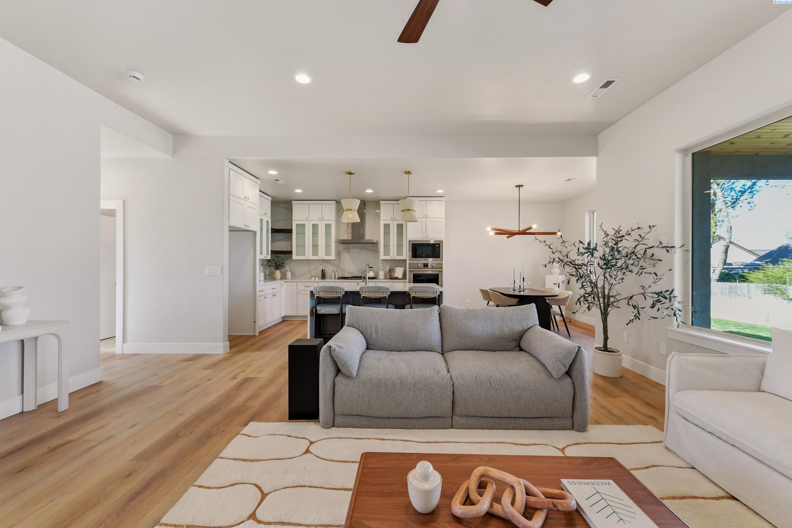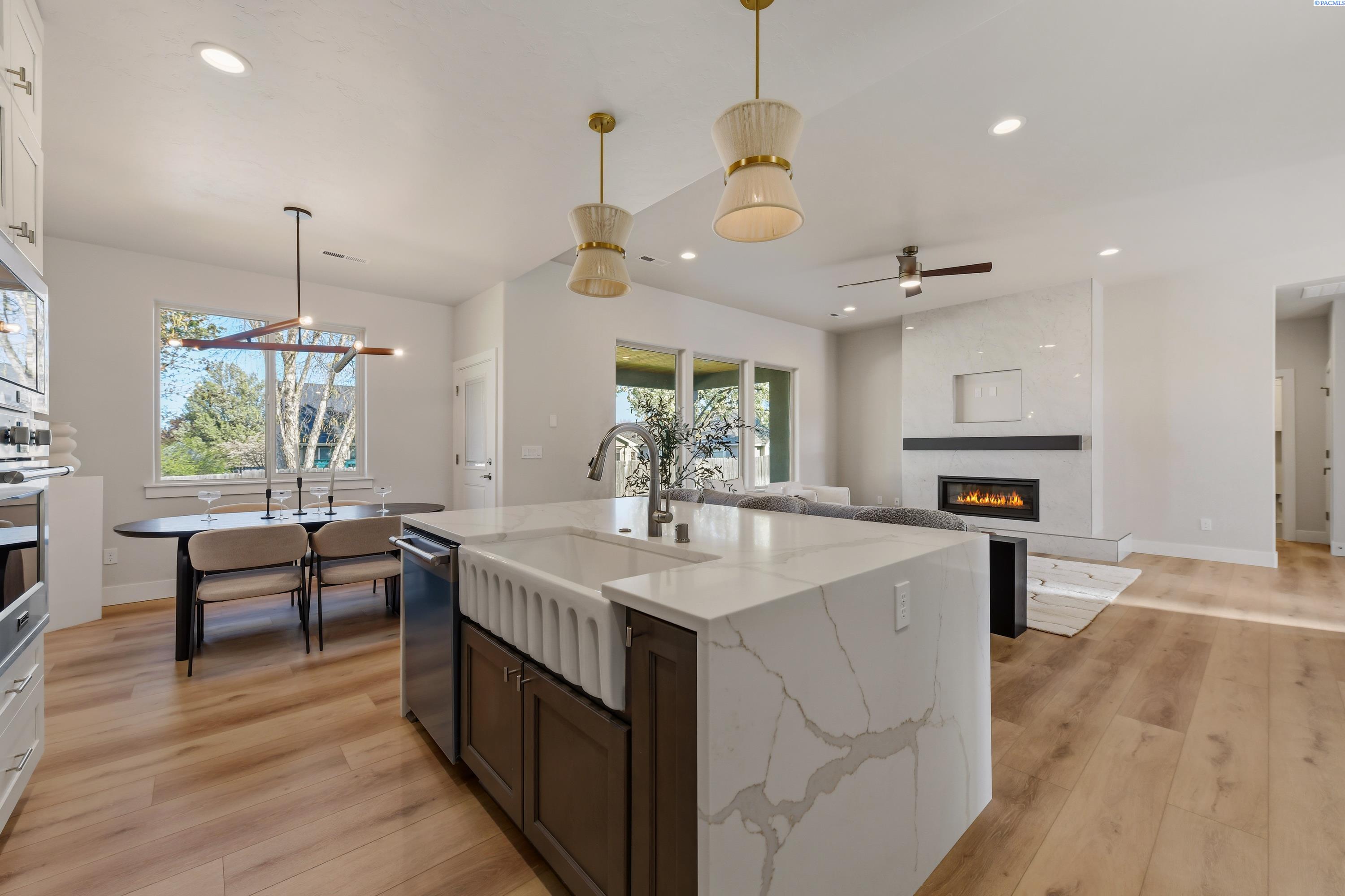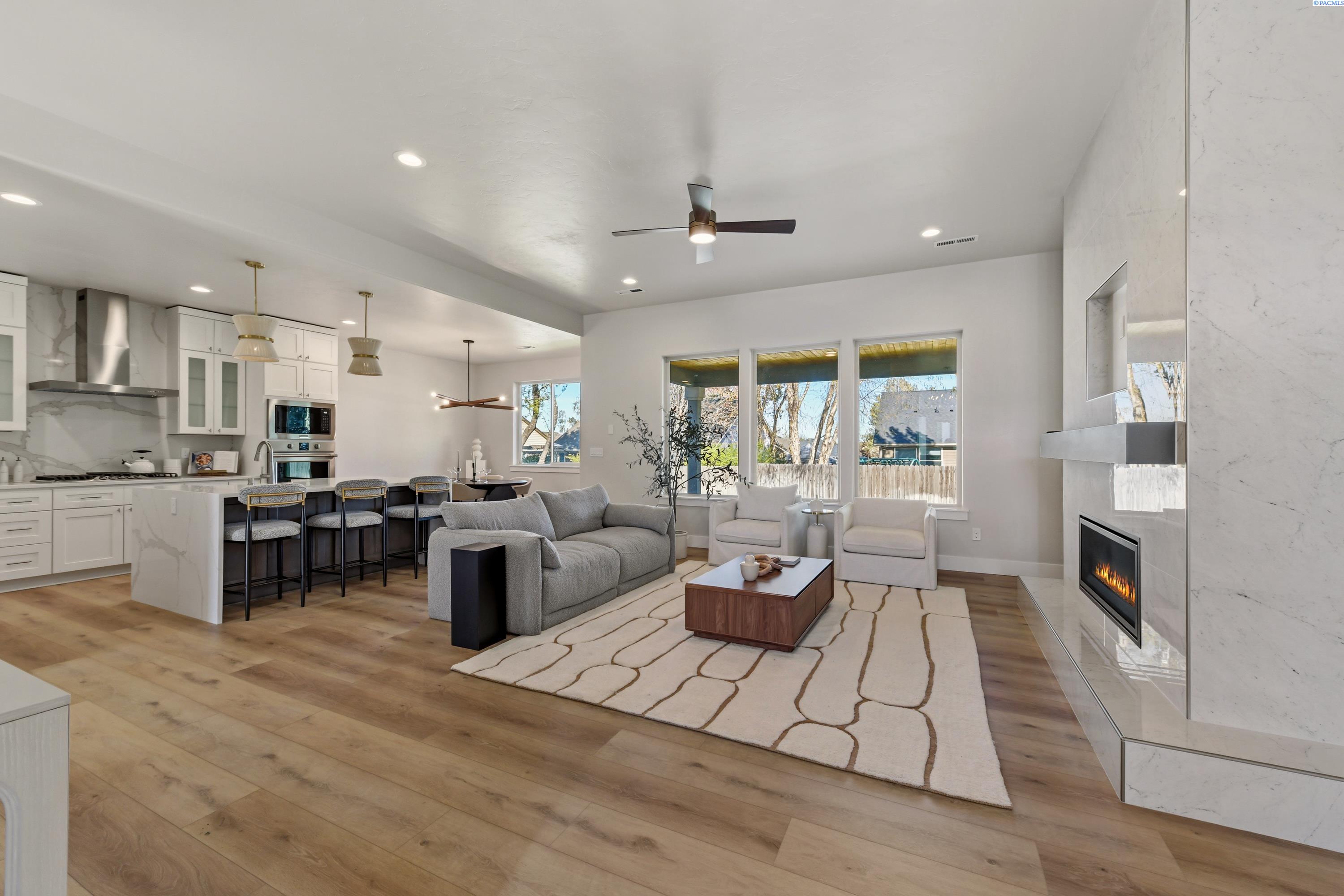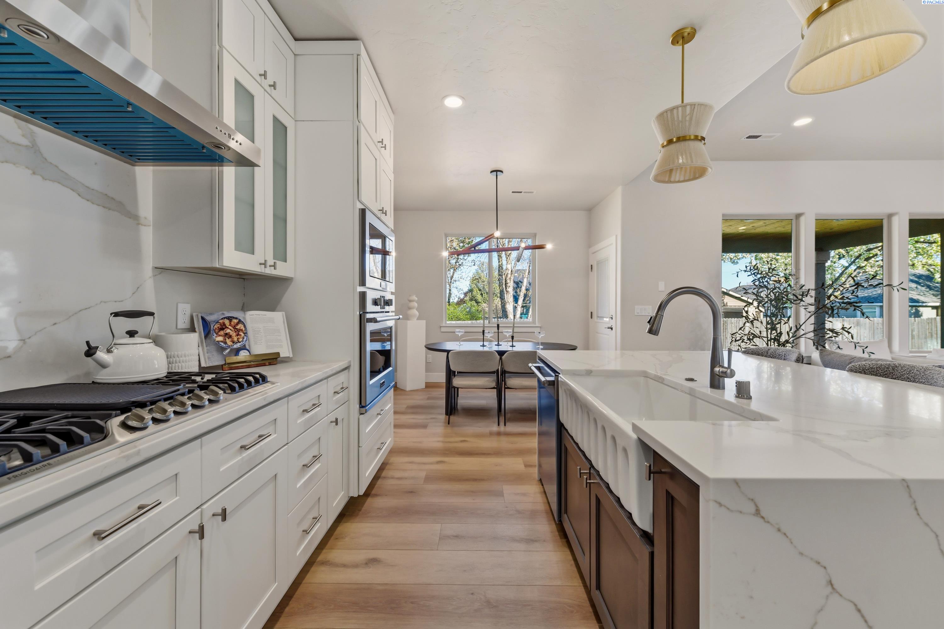 MLS# 291940 Would you love to spend your summer at this new address!; Welcome to your stunning new home in Marcello Estates, located in the heart of South Richland. This beautiful Infinity Home boasts 3 spacious bedrooms, 2 full bathrooms, and an expansive great room living space. This brand-new construction is the epitome of modern elegance. From the moment you step through the door, you will be wowed by the attention to detail, high-end finishes, designer light fixtures, and so much more. The main living area features an open floor plan that seamlessly blends the great room, dining, and kitchen spaces together making it perfect for both relaxing and entertaining. This home is pre-wired for a 5.1 surround system for the great room, 2 ambient speakers pre-wired for the covered patio and 2 ambient speakers pre-wired for the master bedroom. The gourmet kitchen is a chefâs dream, complete with sleek stainless steel appliances, waterfall quartz countertops, and plenty of storage space in the walk-in pantry. As you step outside you will enjoy the tongue and groove ceiling of the covered patio while in your park like backyard. When itâs time to unwind, you will love retreating to the serene master suite with a scenic view of mature landscape and also boasts a luxurious ensuite bathroom with spa like free standing tub, walk-in shower, exquisite vanity area with tiled wall and floating mirrors and attached large walk-in closet complete with an oversized mirror. The split bedroom design offers a comfortable layout, but wait thereâs more; your new garage has a bay that is approximately 27â long with a 12â high door imagine the storage this will provide. Schedule your private showing today with your favorite agent or visit our model home to have one of our real estate professionals guide you through this gorgeous home that could be your next address.