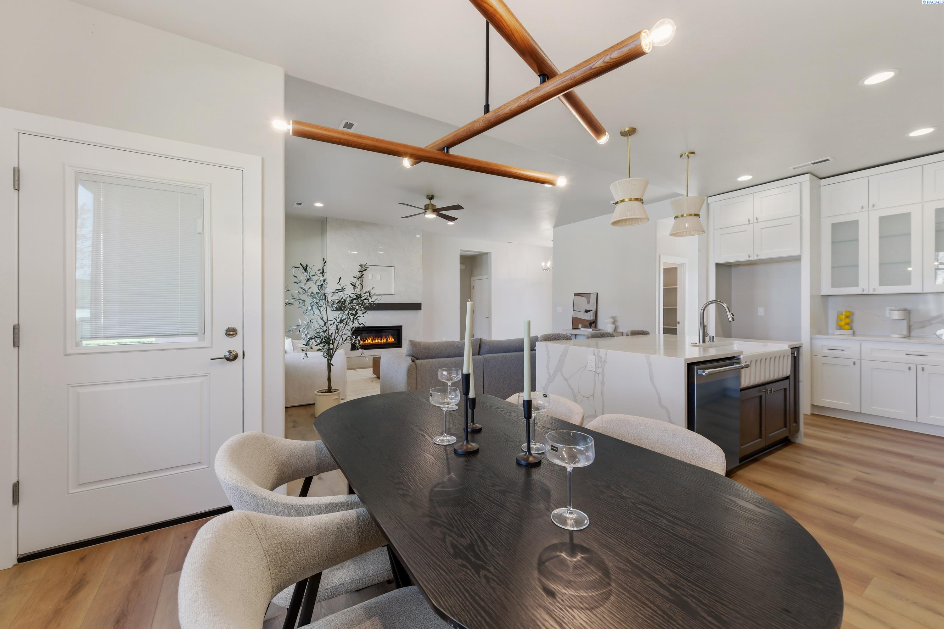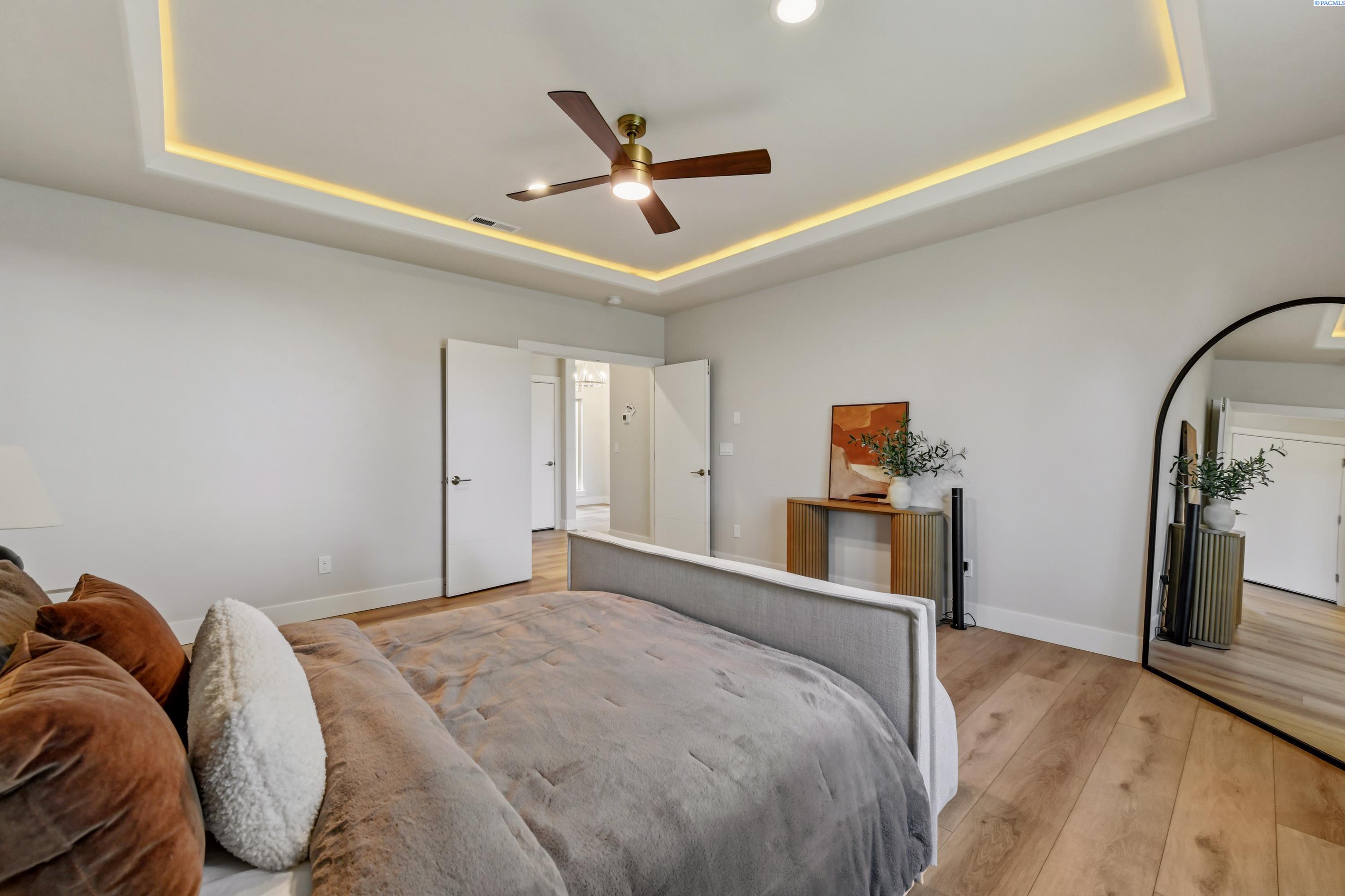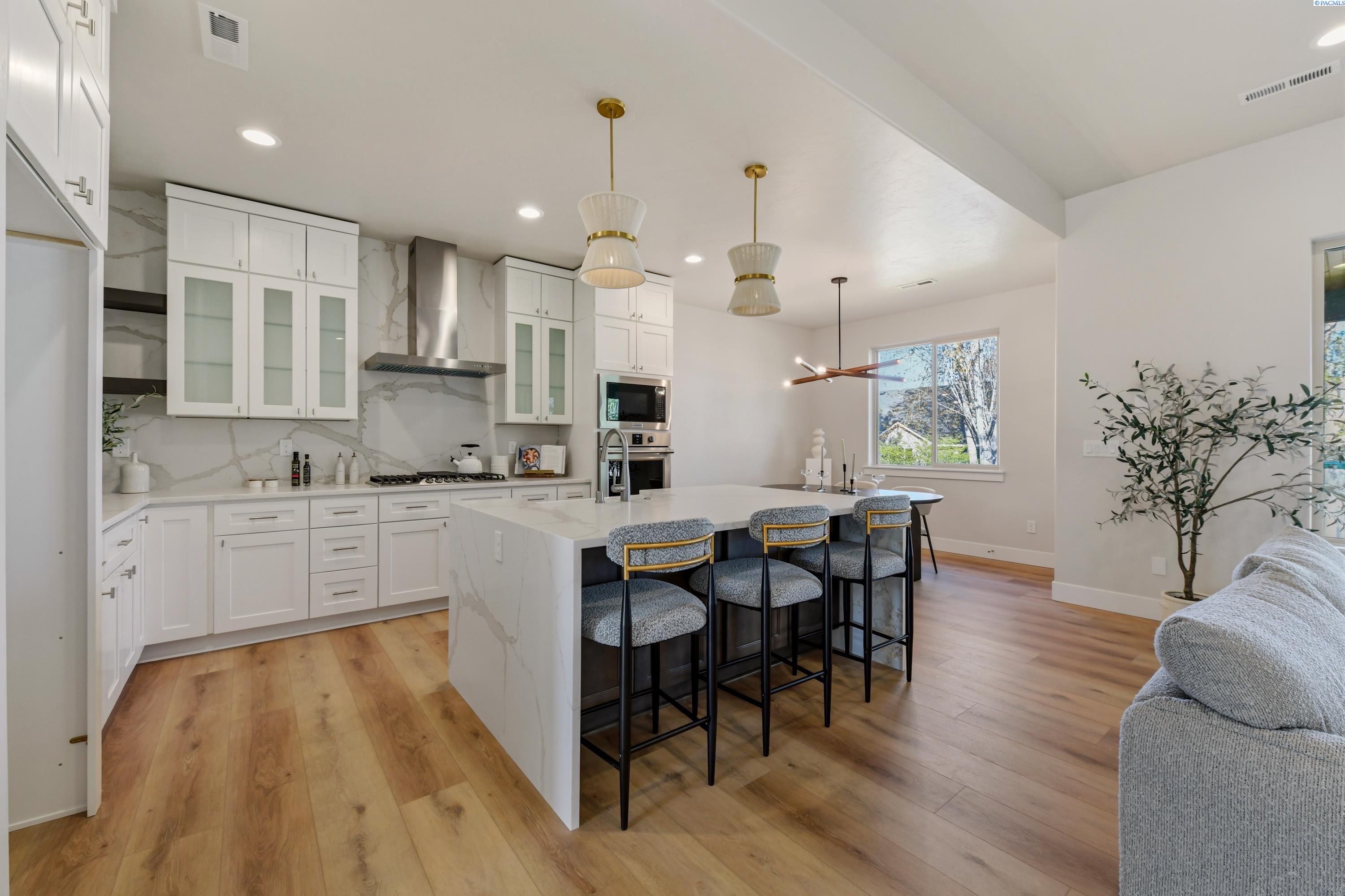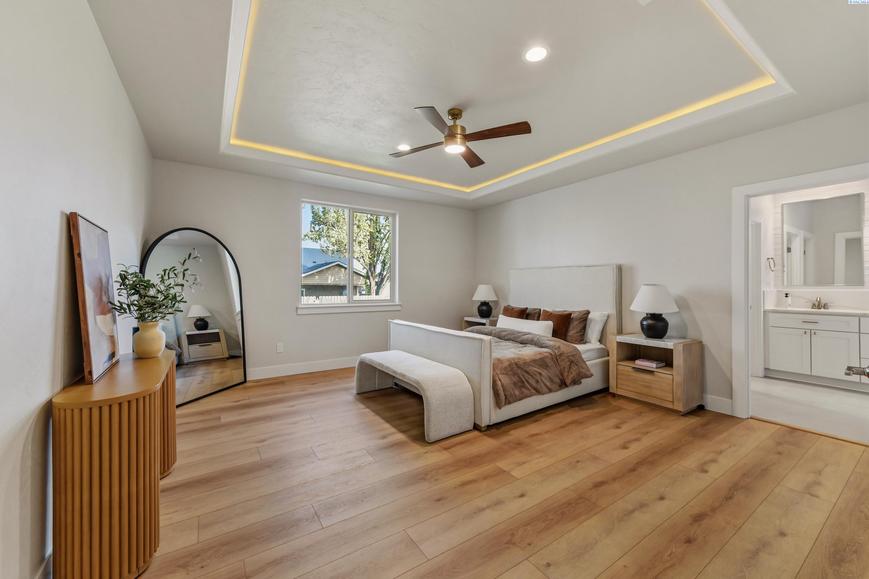 MLS# 291940 Would you love to spend your summer at this new address!; Welcome to your stunning new home in Marcello Estates, located in the heart of South Richland. This beautiful Infinity Home boasts 3 spacious bedrooms, 2 full bathrooms, and an expansive great room living space. This brand-new construction is the epitome of modern elegance. From the moment you step through the door, you will be wowed by the attention to detail, high-end finishes, designer light fixtures, and so much more. The main living area features an open floor plan that seamlessly blends the great room, dining, and kitchen spaces together making it perfect for both relaxing and entertaining. This home is pre-wired for a 5.1 surround system for the great room, 2 ambient speakers pre-wired for the covered patio and 2 ambient speakers pre-wired for the master bedroom. The gourmet kitchen is a chefâs dream, complete with sleek stainless steel appliances, waterfall quartz countertops, and plenty of storage space in the walk-in pantry. As you step outside you will enjoy the tongue and groove ceiling of the covered patio while in your park like backyard. When itâs time to unwind, you will love retreating to the serene master suite with a scenic view of mature landscape and also boasts a luxurious ensuite bathroom with spa like free standing tub, walk-in shower, exquisite vanity area with tiled wall and floating mirrors and attached large walk-in closet complete with an oversized mirror. The split bedroom design offers a comfortable layout, but wait thereâs more; your new garage has a bay that is approximately 27â long with a 12â high door imagine the storage this will provide. Schedule your private showing today with your favorite agent or visit our model home to have one of our real estate professionals guide you through this gorgeous home that could be your next address.