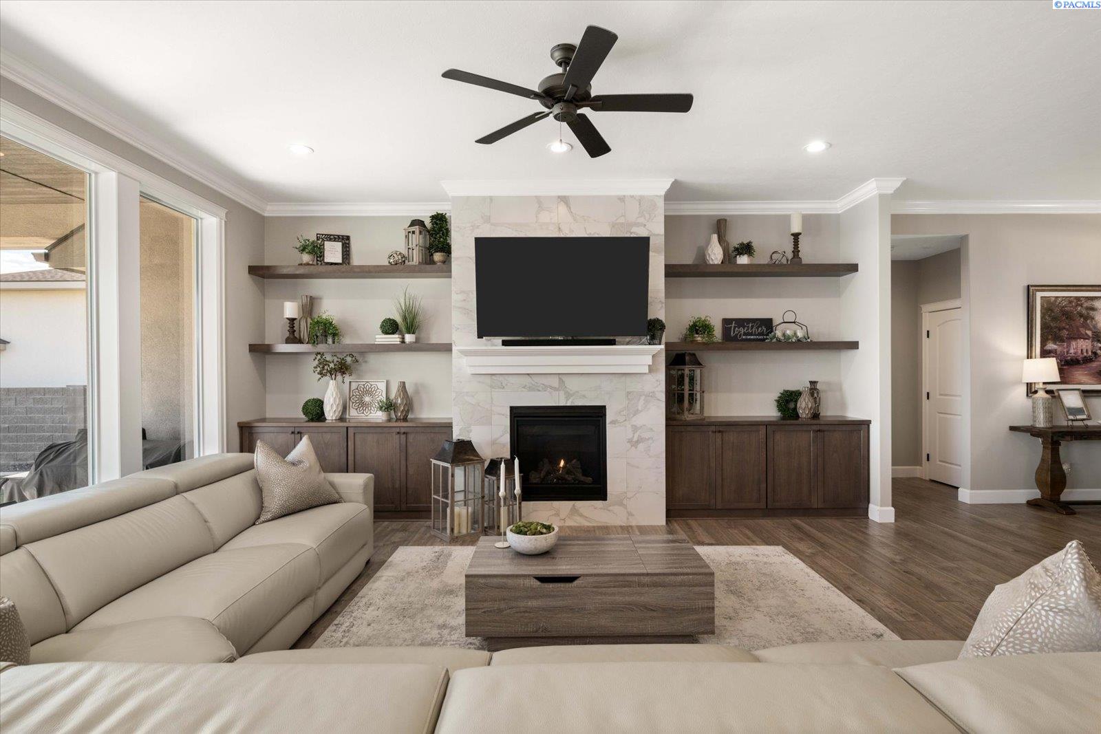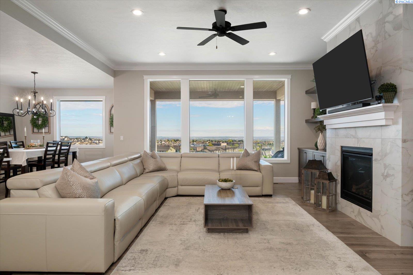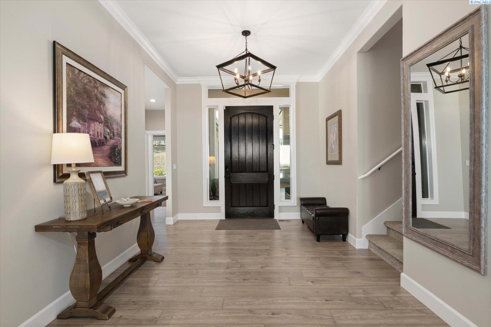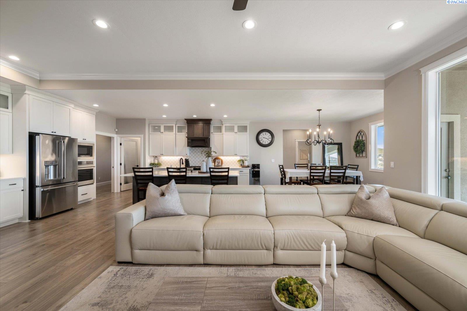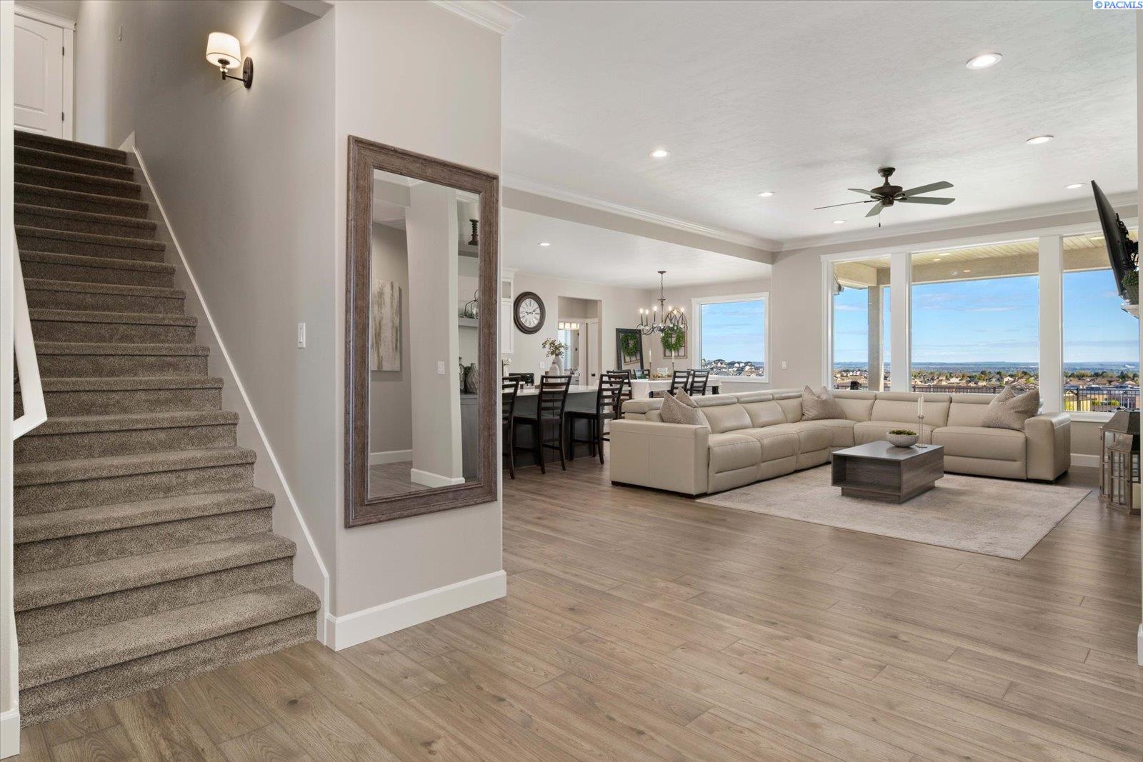 Set on nearly half an acre, this custom home is designed for the way life unfoldsâeasy mornings, connected living, and evenings that naturally drift outdoors to enjoy the spectacular sunsets. From the moment you step inside, the open layout invites you in, with warm laminate flooring underfoot, a fireplace framed by built-ins, and a dedicated office space that makes working from home feel effortless. At the center of it all, the kitchen brings everyone togetherâanchored by a generous island, surrounded by custom cabinetry with crown molding, and complemented by a walk-in pantry that keeps everything within reach. Just beyond, the mudroom with built-ins and spacious laundry area keeps daily routines running smoothly. Out back, the covered patio becomes an extension of the homeâideal for quiet mornings, sunset views, and relaxed evenings spent outdoors, all set against sweeping panoramic scenery. The main-level primary suite offers a peaceful retreat at the end of the day, with two additional bedrooms nearby for comfort and convenience. Upstairs, a versatile bonus room adapts to your needsâwhether itâs a fourth bedroom, media space, or welcoming guest quarters. Conveniently located near top schools, shopping, and dining.