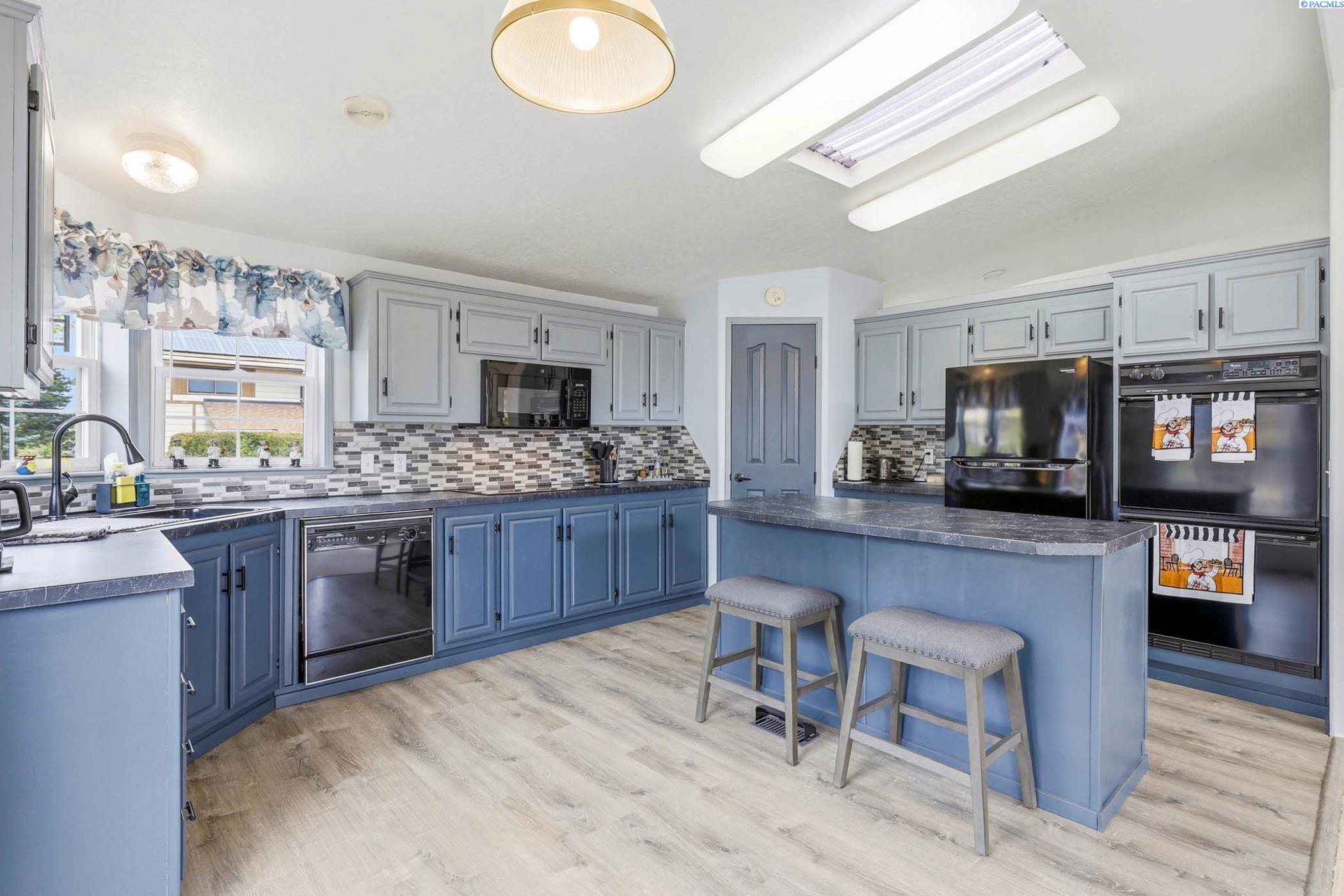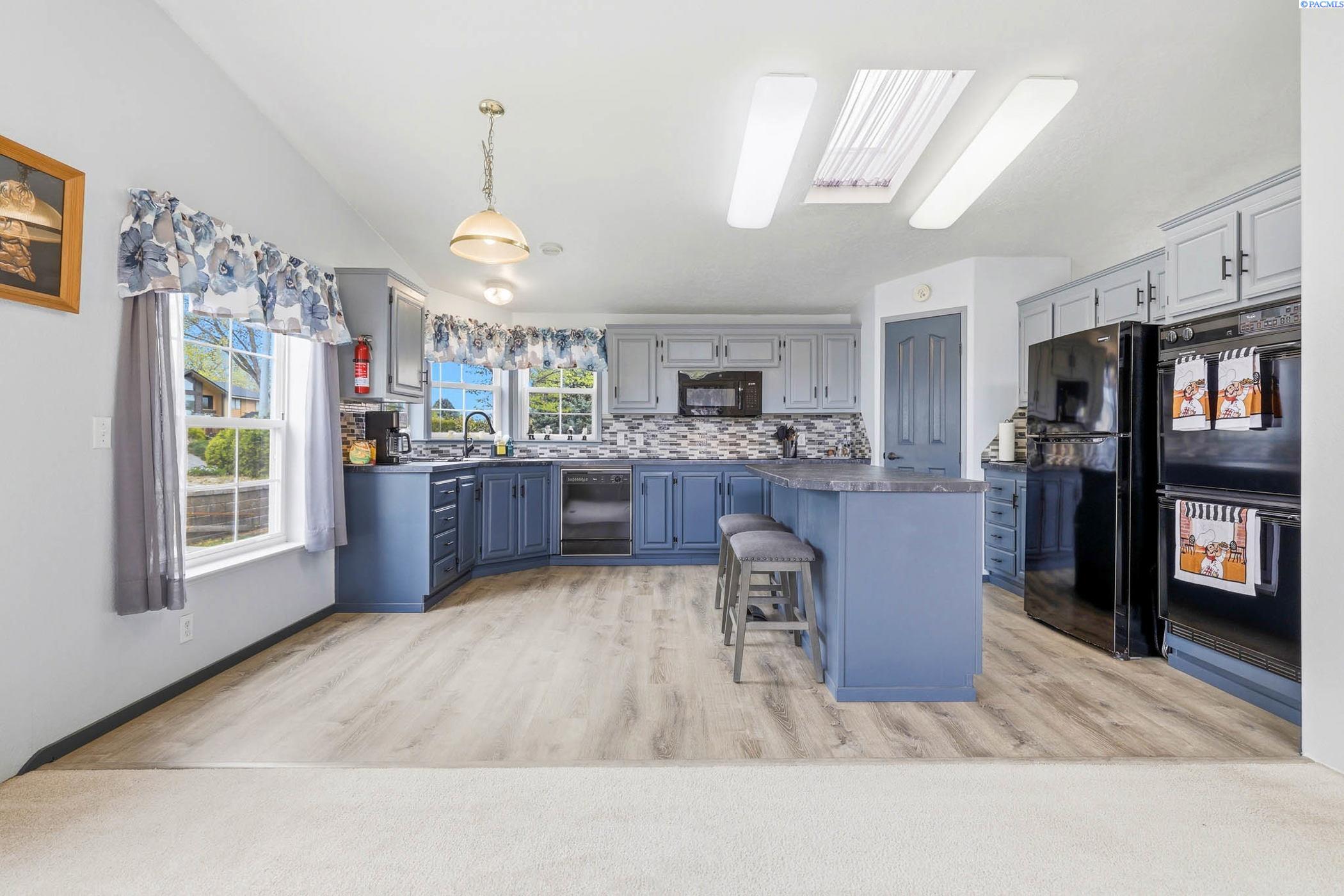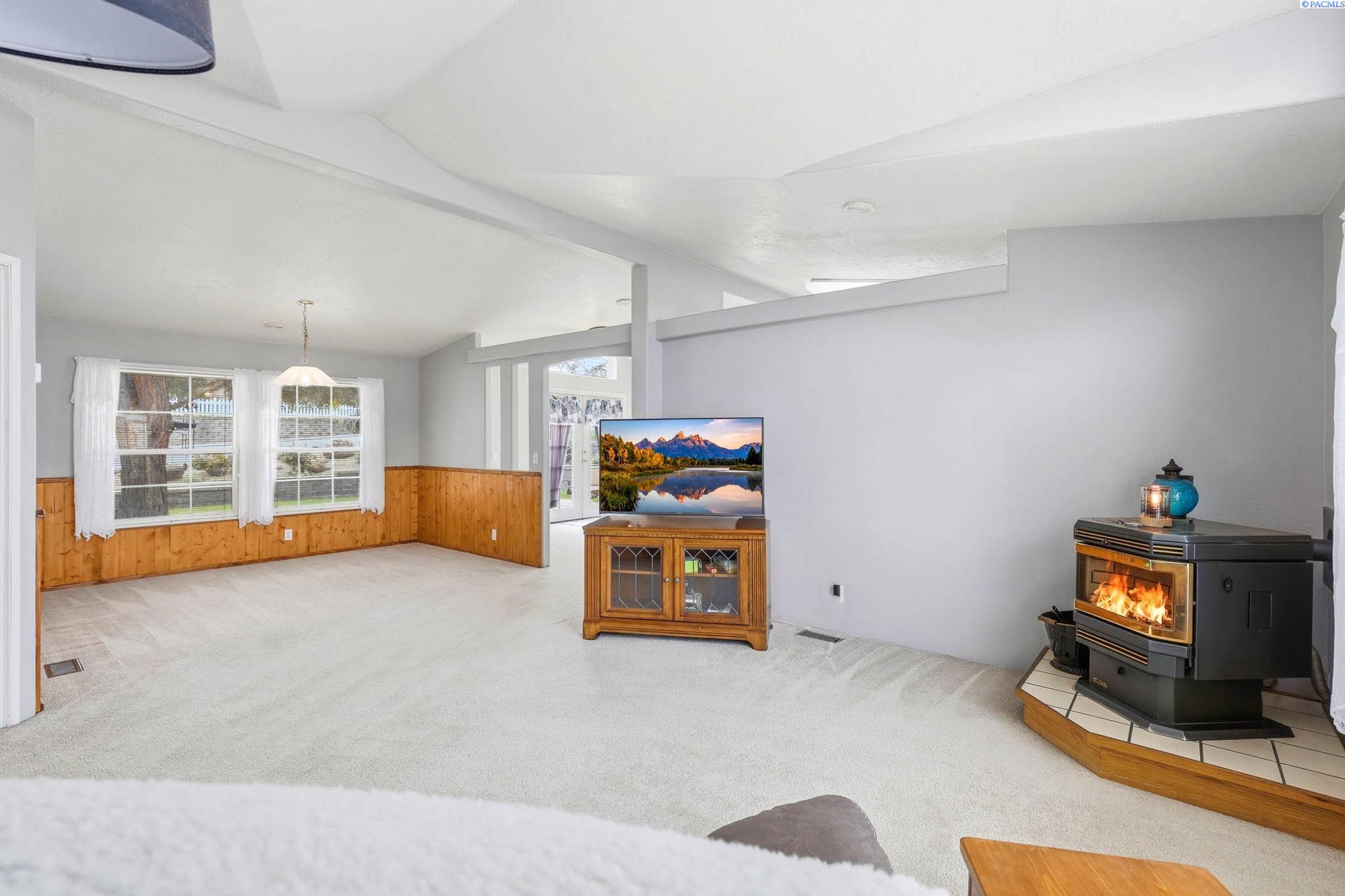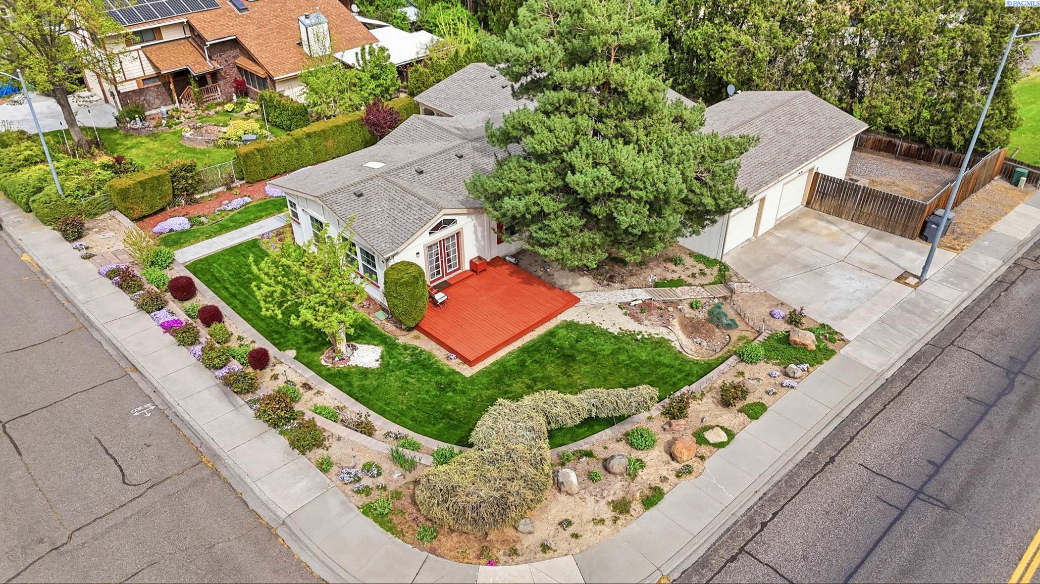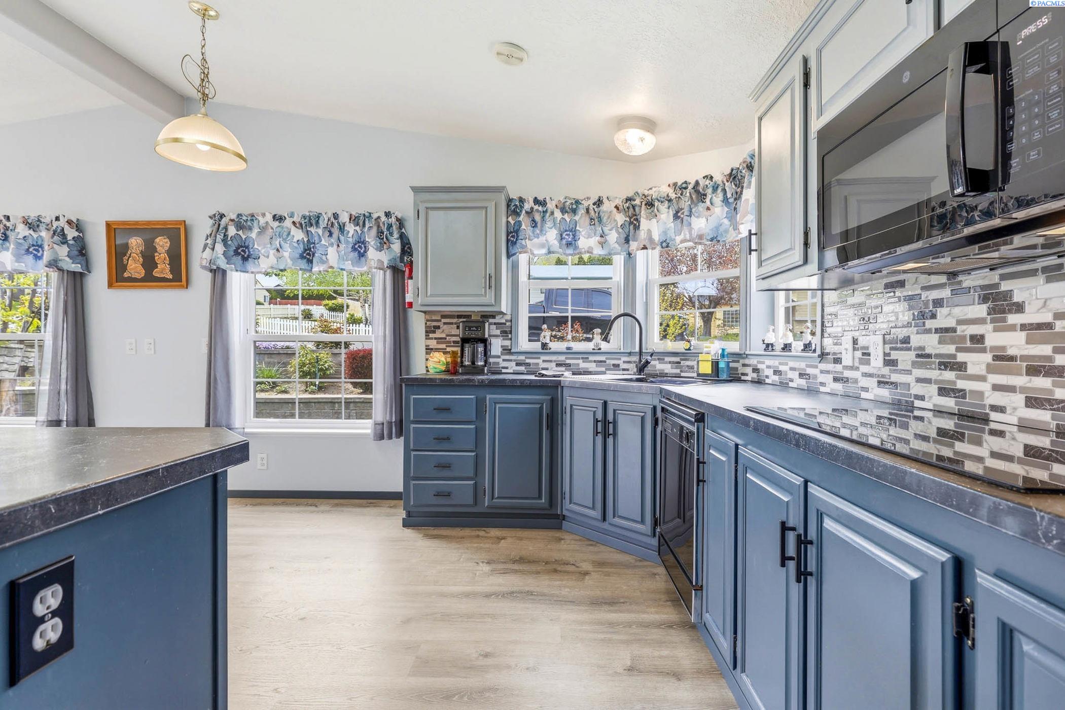Impeccably maintained home offering thoughtful updates and spacious, flexible living. Bright updated kitchen features induction cooktop, two wall ovens, microwave, dishwasher, refrigerator and large island â open to the family room for easy entertaining. Separate dining area and a living room with cozy pellet stove. Large ownerâs suite includes walk-in closet, dual vanities and a versatile flex area perfect for a home gym, reading nook or private office. New floors in entry, master bath, laundry and kitchen; fresh paint throughout. Newer roof, heat pump and gutters. Outside offers oversized 2-car garage with workshop space, open RV parking behind a double-gated fence with sewer hookup, and mature meticulously maintained landscaping. Prime location on a corner lot in the heart of Kennewick â style, comfort and convenience all in one. Contact LA for showings and details.