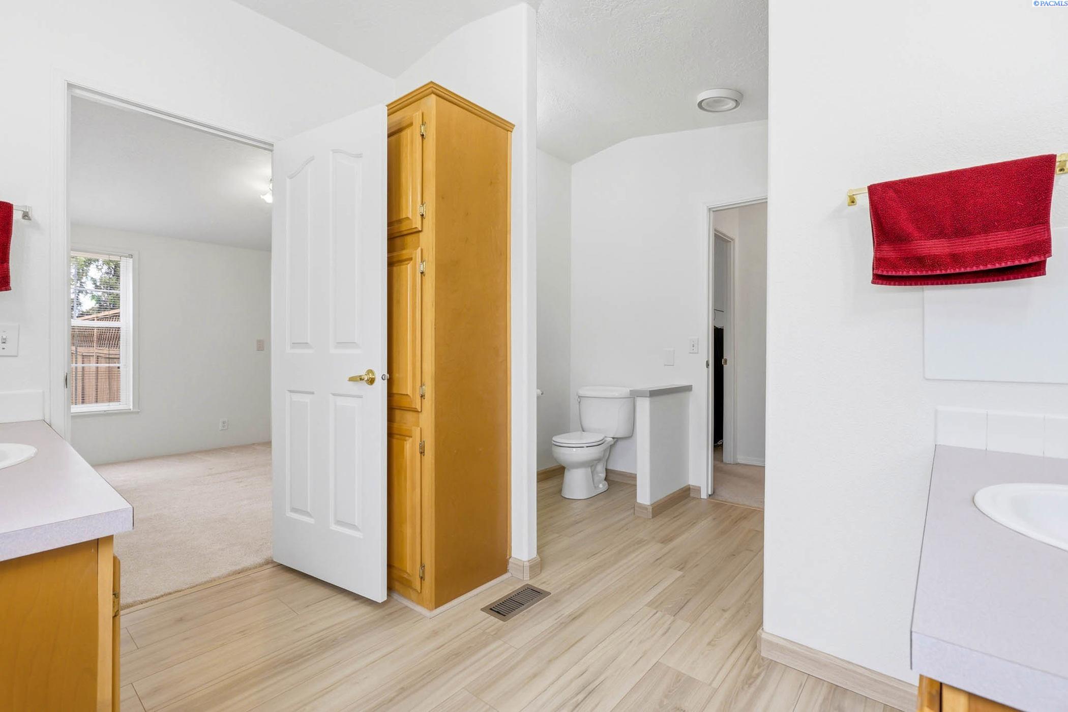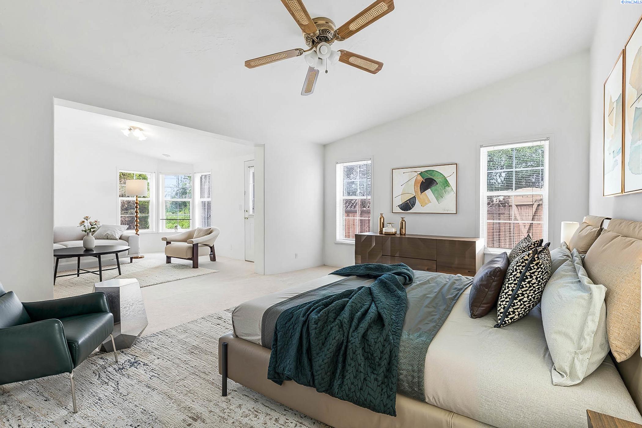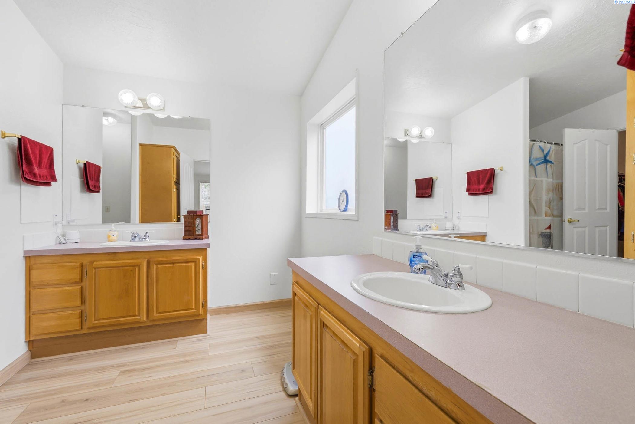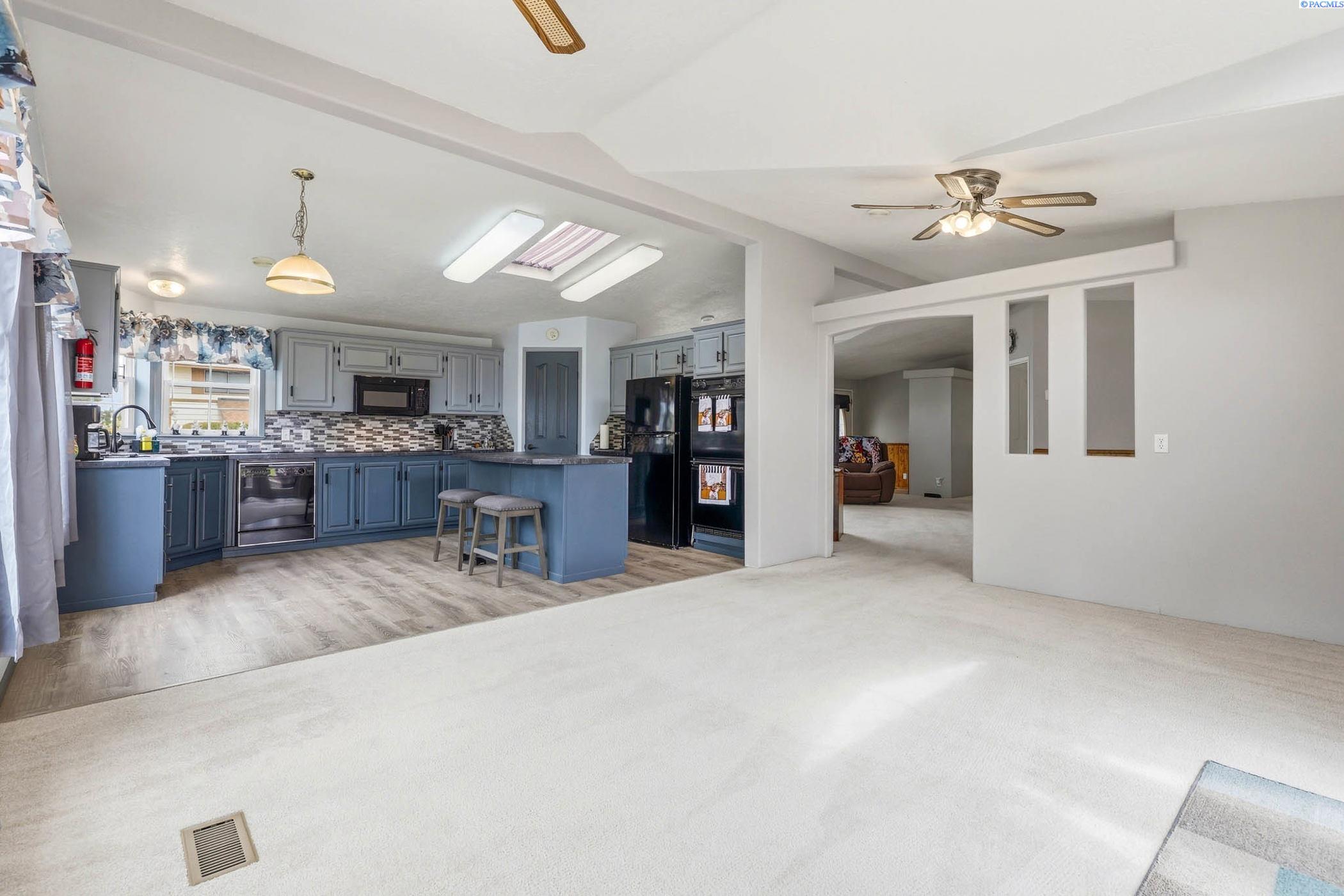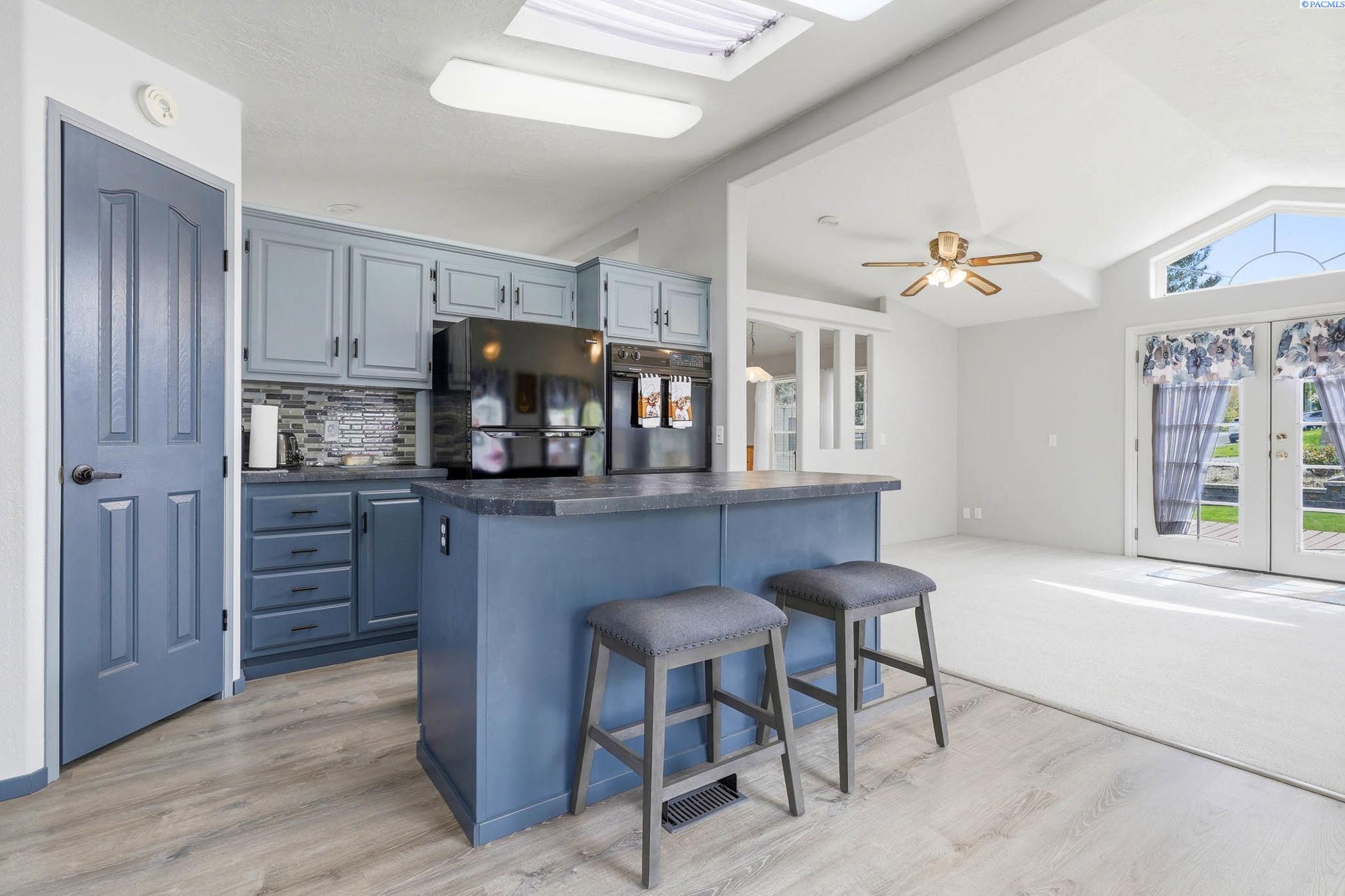Impeccably maintained home offering thoughtful updates and spacious, flexible living. Bright updated kitchen features induction cooktop, two wall ovens, microwave, dishwasher, refrigerator and large island â open to the family room for easy entertaining. Separate dining area and a living room with cozy pellet stove. Large ownerâs suite includes walk-in closet, dual vanities and a versatile flex area perfect for a home gym, reading nook or private office. New floors in entry, master bath, laundry and kitchen; fresh paint throughout. Newer roof, heat pump and gutters. Outside offers oversized 2-car garage with workshop space, open RV parking behind a double-gated fence with sewer hookup, and mature meticulously maintained landscaping. Prime location on a corner lot in the heart of Kennewick â style, comfort and convenience all in one. Contact LA for showings and details.