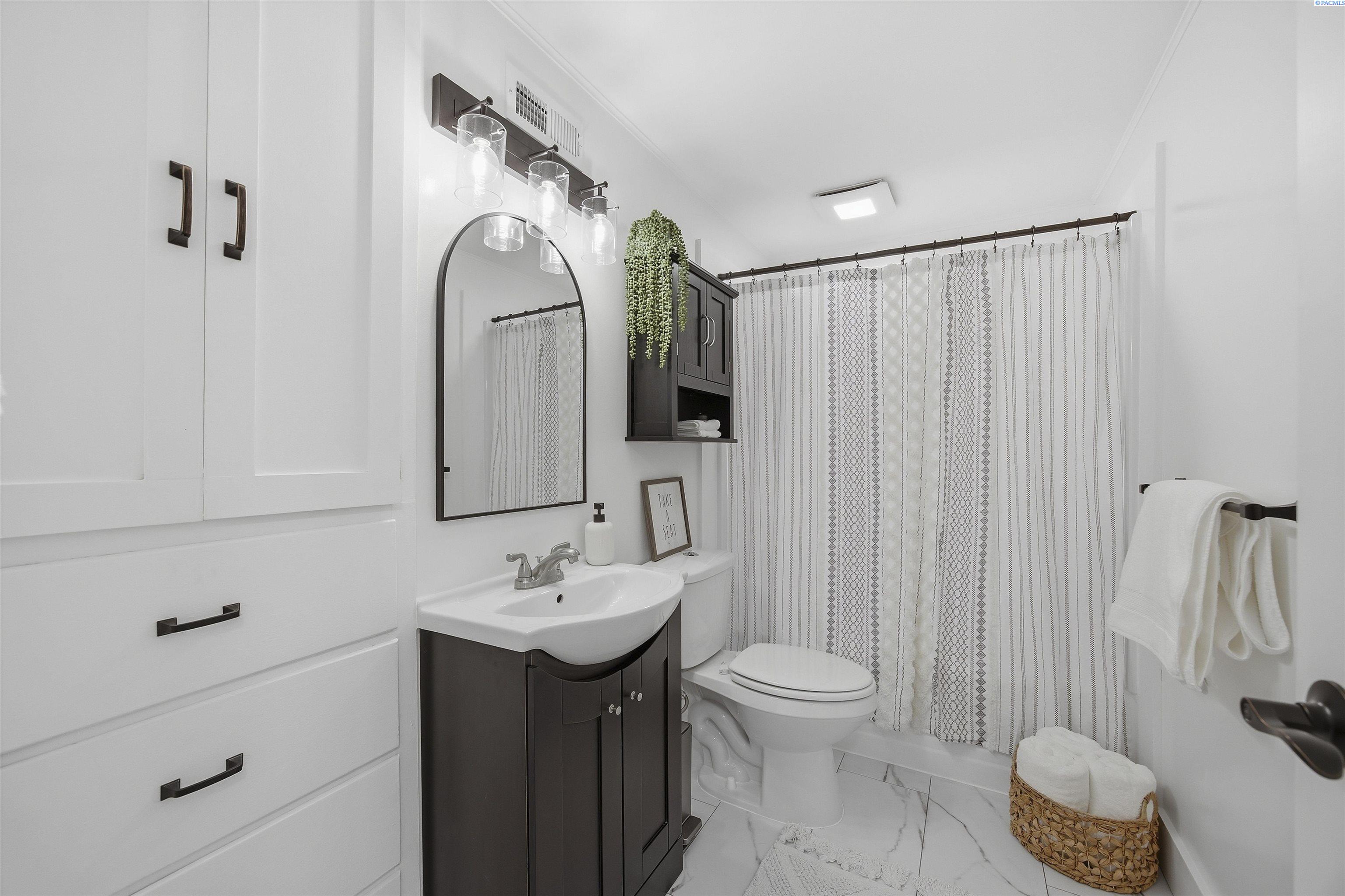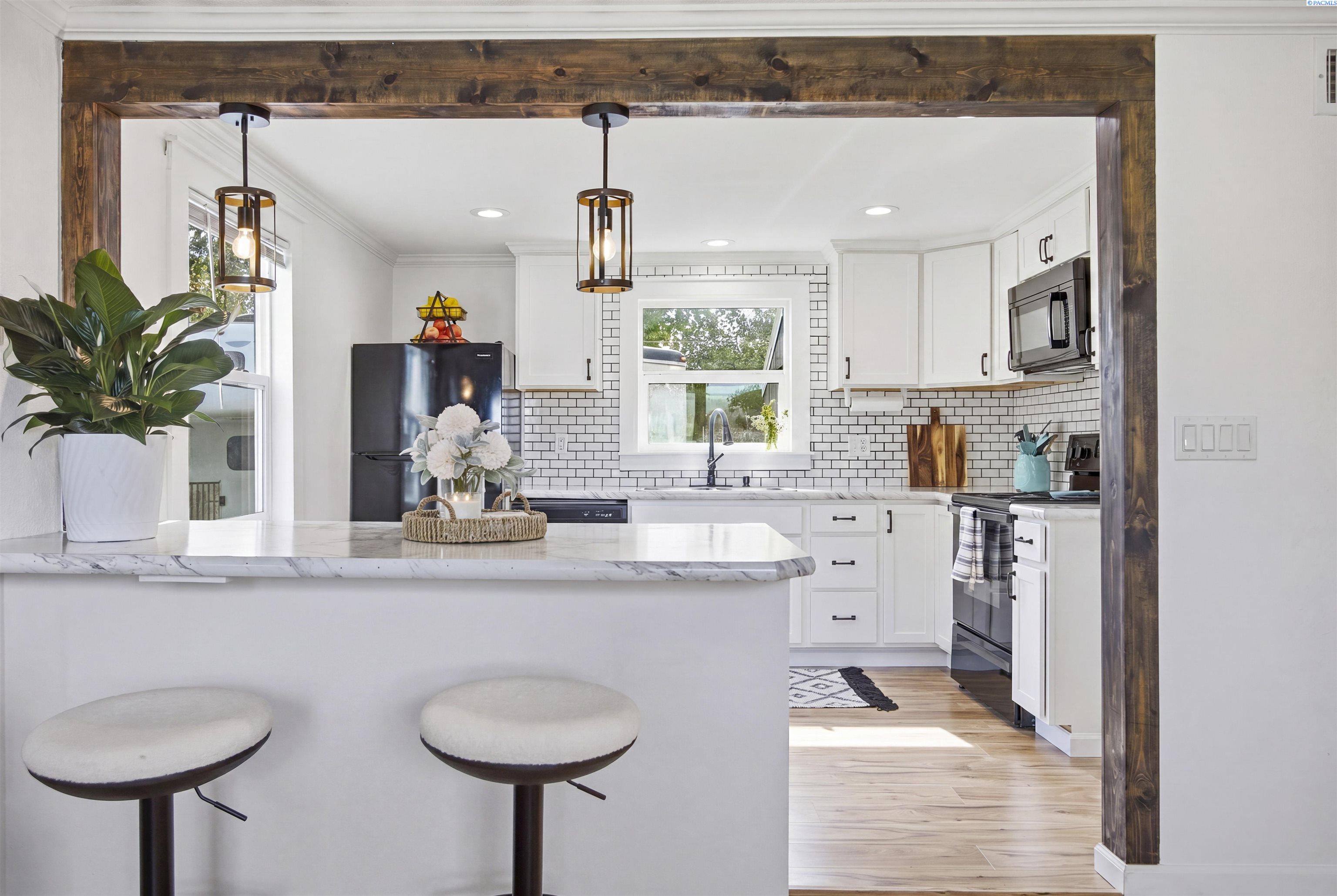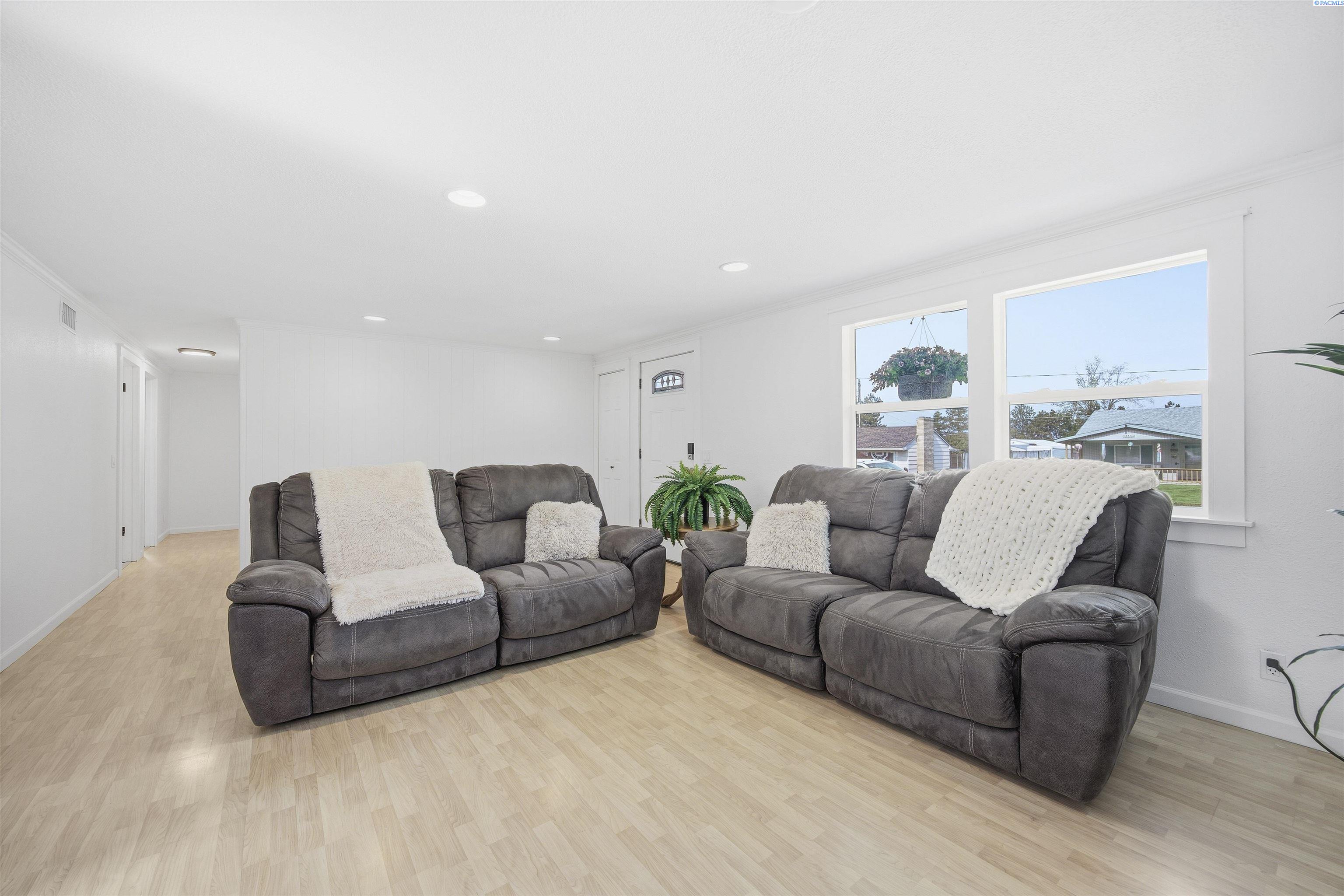 Beautifully updated rambler in the heart of Richland! This well-maintained home offers a clean, modern feel with thoughtful updates throughout. Step inside to newer laminate flooring, updated countertops, refreshed cabinetry, black steel appliances, and crisp interior paint and trimâcreating a bright, move-in ready appeal. The bathroom has been fully remodeled with a new vanity, sink, trim, and finishes, delivering a fresh, cohesive look that complements the rest of the home. Outside, enjoy rare and highly functional additional side parking with room for trailers, boats, or multiple vehiclesâperfect for those needing extra space. The fully fenced backyard features lush sod, underground sprinklers, and two outbuildings that provide excellent storage or workspace options. The exterior was freshly painted in April 2026, adding to the pride of ownership youâll notice throughout. Conveniently located near schools, shopping, restaurants, and quick freeway access, this home checks all the boxes for comfort, functionality, and location. Very well cared for and truly move-in readyâhomes like this donât last long. Donât miss your opportunity to make it yours!