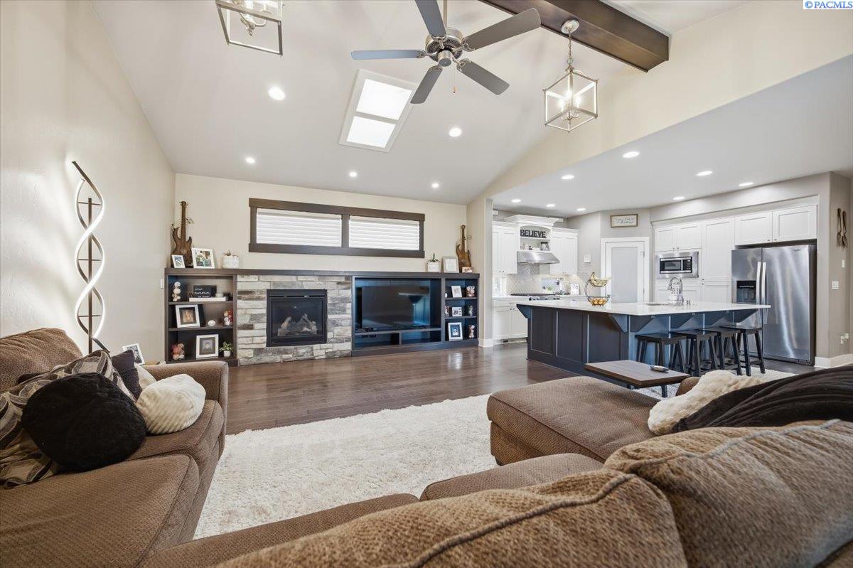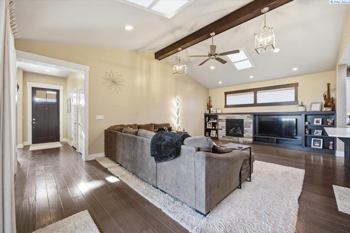 MLS ID 292328: Built in 2017 by Pahlisch Homes and offering nearly 2,700 sq ft, this thoughtfully designed home combines quality craftsmanship, modern finishes, and functional living spaces. From the moment you step inside, the impressive entryway sets the tone. Just off the entry, youâll find a convenient guest bedroom and bathroomâideal for visitors or a home office. The heart of the home is the expansive great room, designed for both everyday living and entertaining. Built-in shelving surrounds the fireplace, creating a warm and inviting focal point. The open layout flows seamlessly into a stunning kitchen featuring a massive L-shaped island, crisp white cabinetry, quartz countertops, stainless steel appliances (included), and an oversized pantry. Abundant built-in storage makes this space as functional as it is beautiful. The main-level primary suite offers a private retreat with a tray ceiling and a luxurious en-suite bath. An additional bedroom or office is also located on the main level for added flexibility. Upstairs, youâll find a spacious bonus/flex area, a large bedroom, and a full bathroomâperfect for guests, multi-generational living, or a private suite setup. Step outside to enjoy the covered patio and large, flat backyardâready for entertaining, play, or future customization. Car enthusiasts and hobbyists will appreciate the expansive 3-car garage with built-in shelving, plus the rare bonus of a large concrete RV parking pad behind a swing gate. Located in desirable South Richland, this home offers convenient access to the freeway, shopping, dining, and all the amenities the Tri-Cities has to offer.