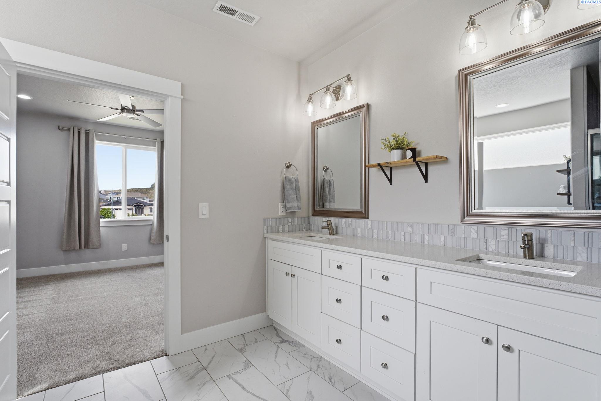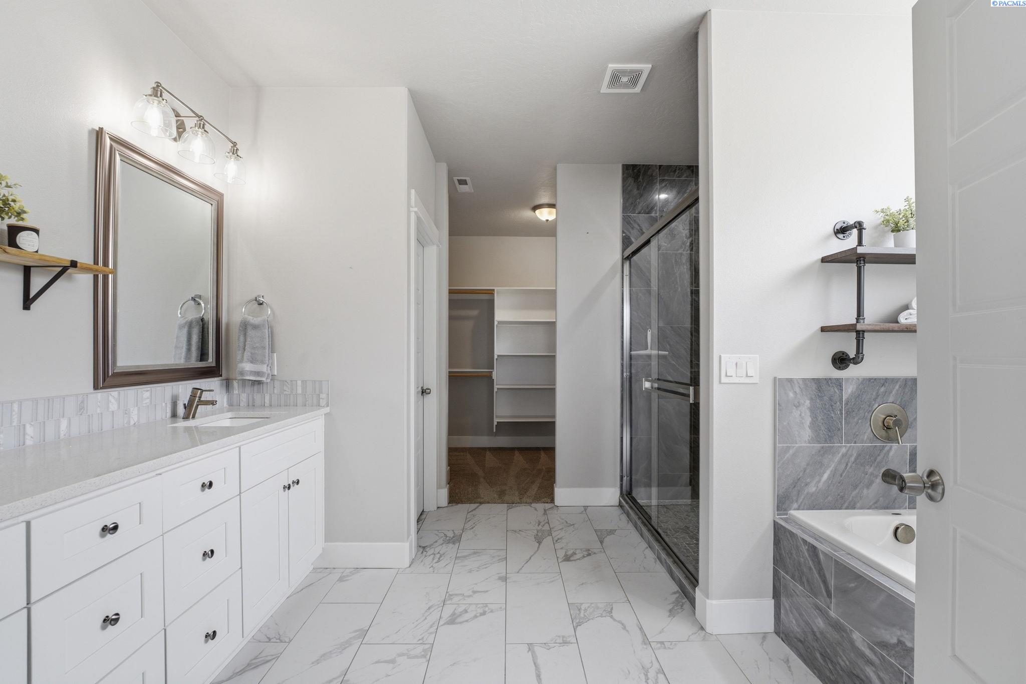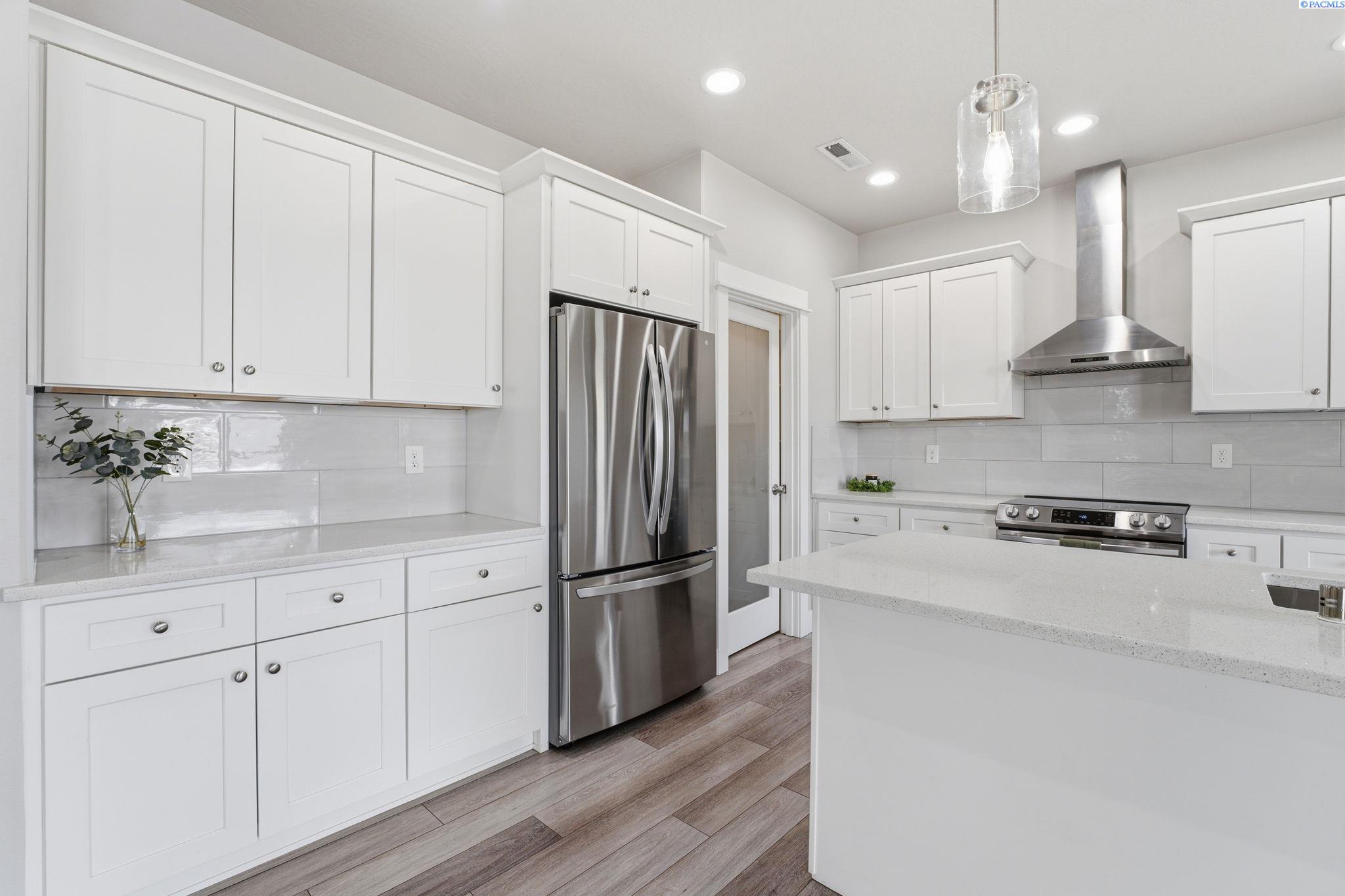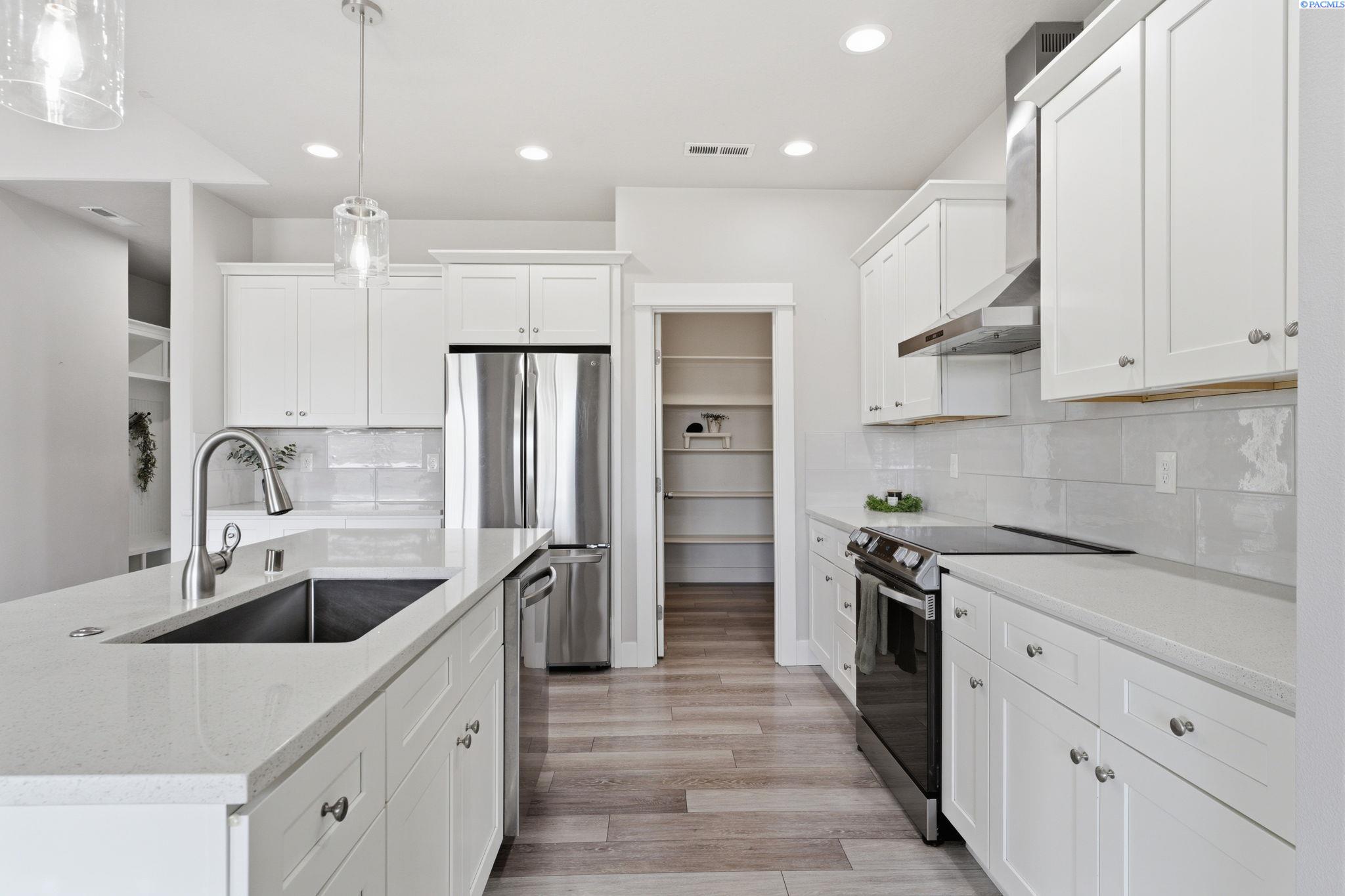 MLS# 292343 Tucked away on a quiet cul-de-sac in South Richland, this beautifully maintained 3-bedroom, 2-bath home offers the perfect blend of comfort, style, and functionality. Inside, youâll find an open-concept layout with vaulted ceilings in living space, luxury vinyl plank flooring, and upgraded light fixtures that create a bright, modern feel throughout. The kitchen is thoughtfully designed with quartz countertops, stainless steel appliances, and a spacious walk-in pantry, making it as practical as it is inviting. The primary suite offers a peaceful retreat with a large walk-in closet and dual sinks and soaking tub, while the included washer and dryer add everyday convenience. Step outside and enjoy the patio with scenic views and a gas hookup, ideal for relaxing or entertaining. With its clean modern finishes, well-designed layout, and appealing setting, this home offers easy living in one of Richlandâs most desirable areas.