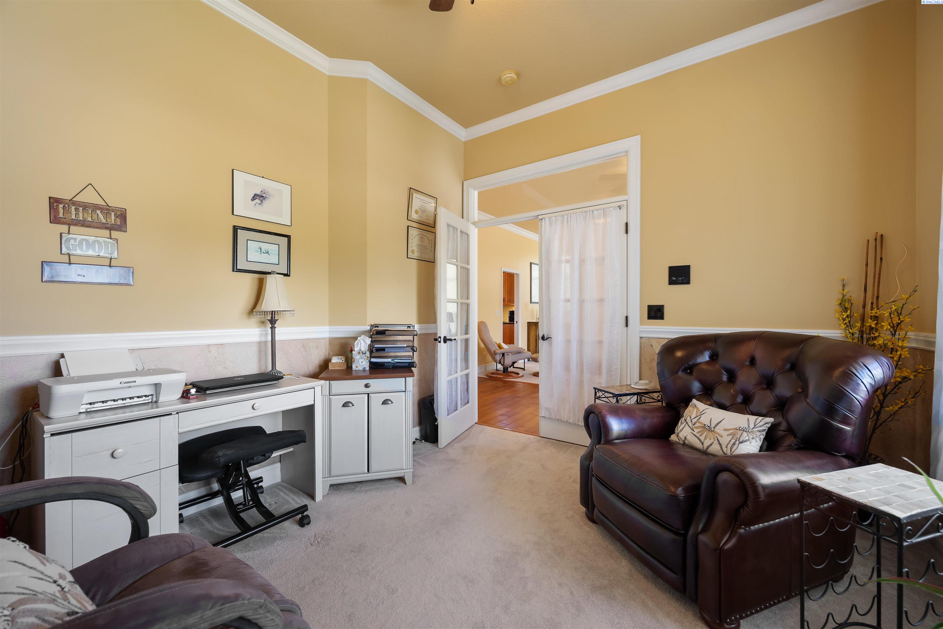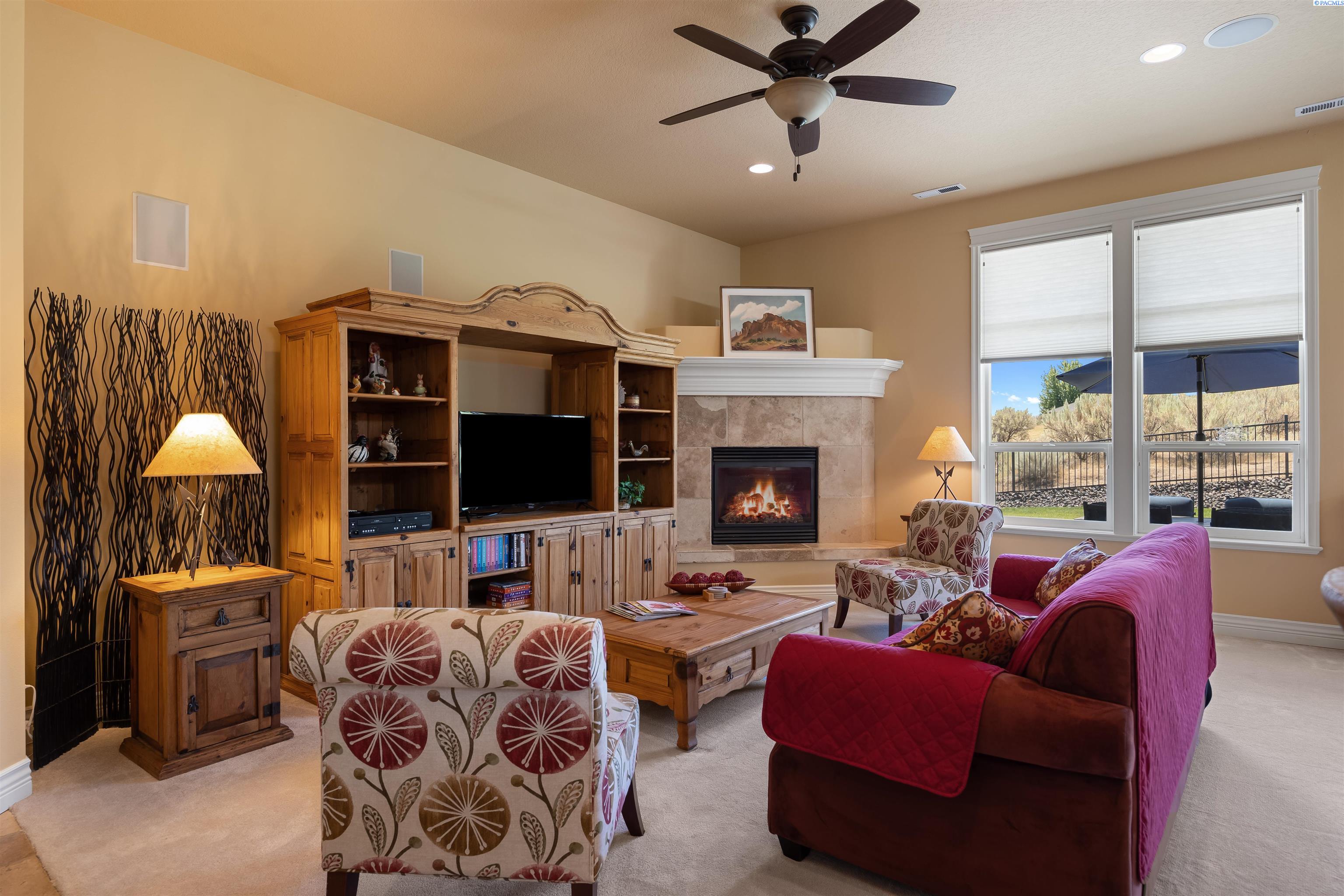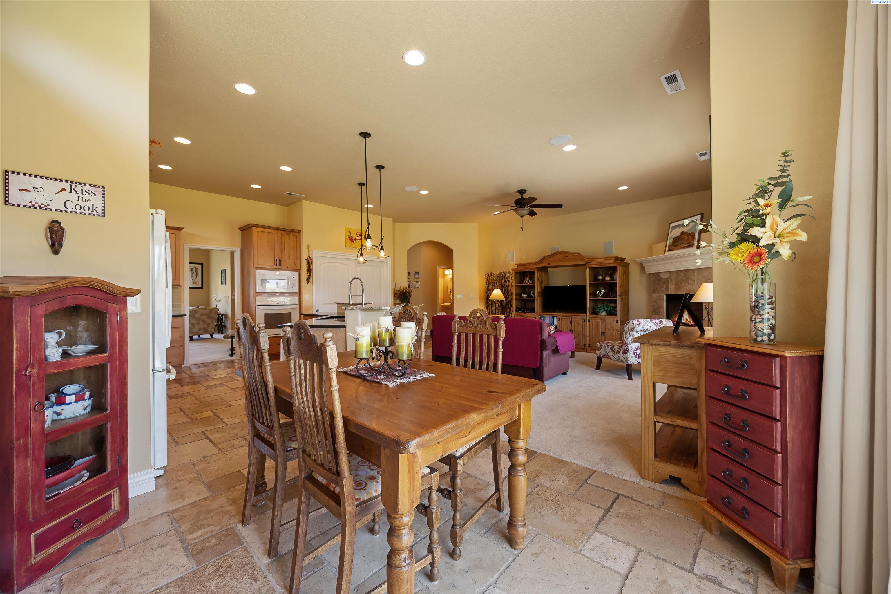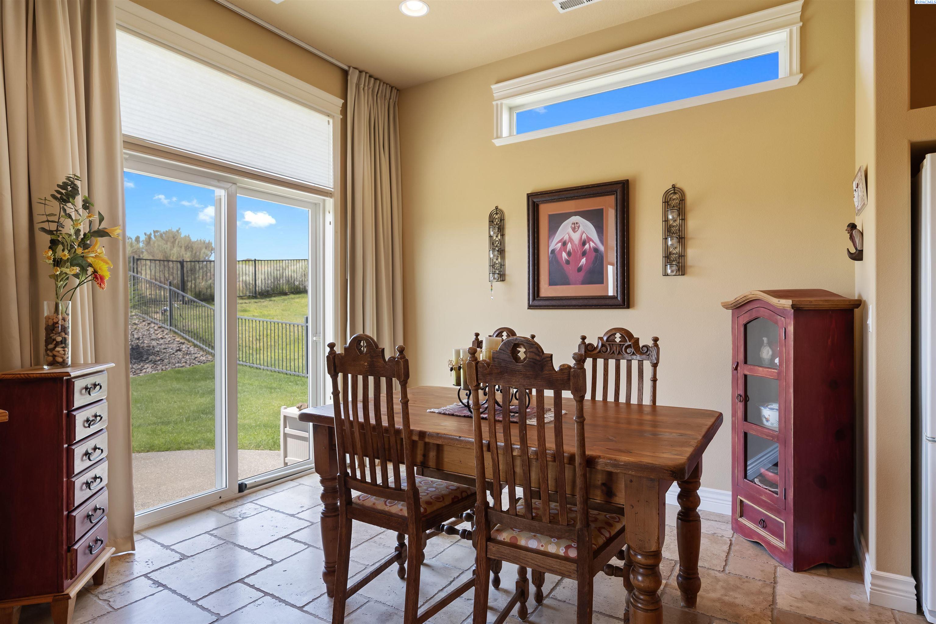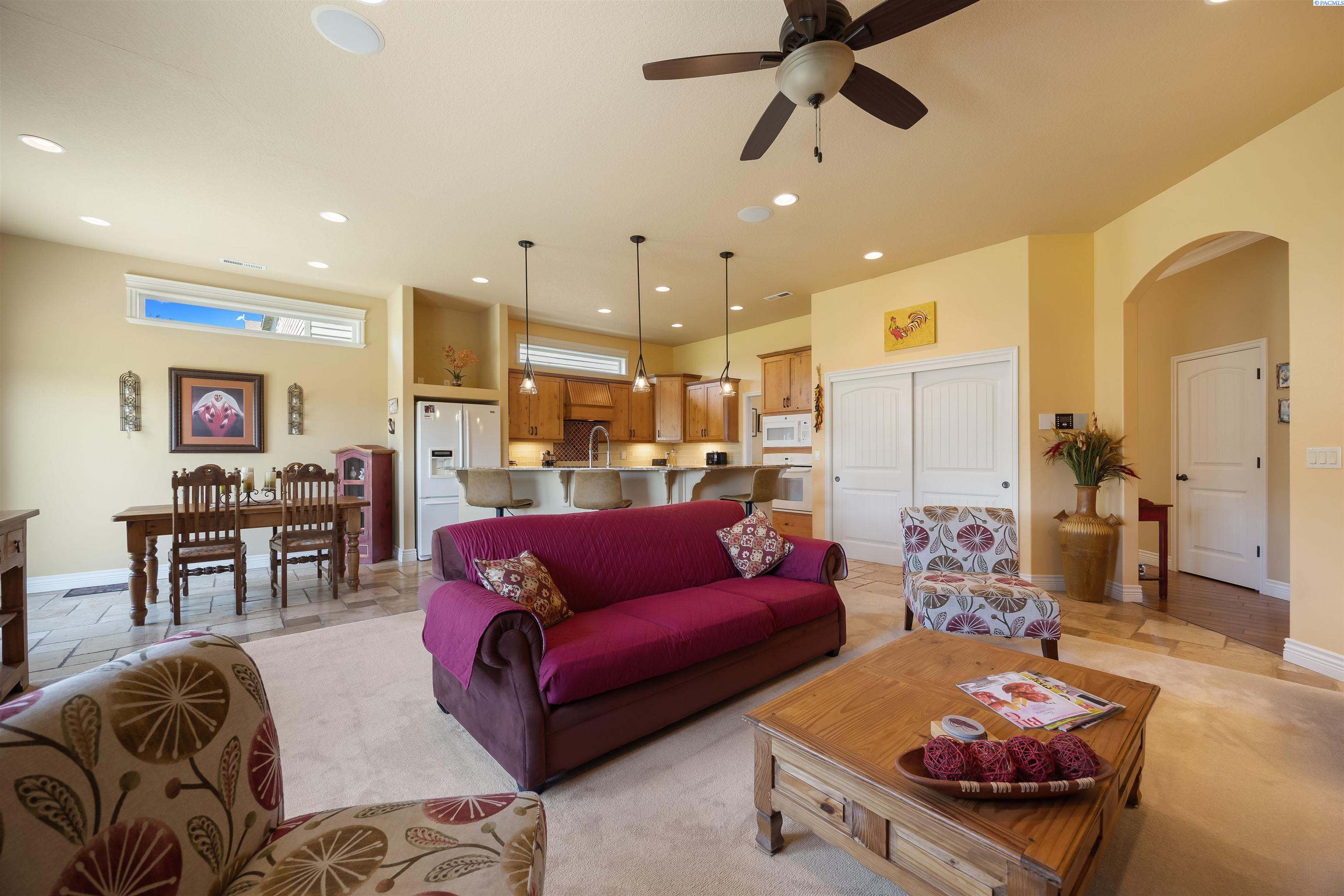MLS# 292424 Welcome to 2860 Sawgrass Loop, a luxurious move-in ready updated 3 bedroom home with a bonus non-comforming bedroom or office/den that blends modern upgrades with comfortable living. Situated on the Horn Rapids 16th hole golf course, protected behind a hill but with views to hills beyond. You will notice the elegant 10 ft ceilings, crown molding and fresh feel created by recent interior painting complimented by the tastefully enhanced kitchen updates, boasting granite countertops, newer prep sink & subway tile backsplash and appliances, while alder cabinetry, large pantry and Italian pendant lighting provides an elegant focal point for the granite dining bar, adjacent to the family room. All bathrooms have been refreshed with comfort & modern design in mind with new countertops, waterfall faucets and lighting while the primary bedroom suite with large walk-in fitted closet and bathroom offers a luxurious retreat, complete with new countertops, a soaking tub complimented by a double walk-in shower. Additional interior touches include replacement of carpets and additional vinyl planking, bamboo floor hallway adding warmth & character to the space. Large utility room with storage. Outside, the home continues to impress with stunning views & a variety of improvements including a hot tub with new cover. The exterior has been painted & the landscaping has been refreshed with updated irrigation & removal of large front trees to create a more open, inviting curb appeal over the past few years. A newer gravel side path adds functionality, while all window & patio door screens have been replaced for comfort & efficiency. Rear & side security and Italian designed lighting enhance both the large covered front porch and entry. New doors were installed recently to the spacious high ceiling 3 car garage. Comfort is maintained year-round thanks to a newer Trane heat pump system, offering cost efficient heating & cooling. Elegant finishes, including surround sound, CAT5, built-in vacuum and everyday livability in this highly sought after golf course community.