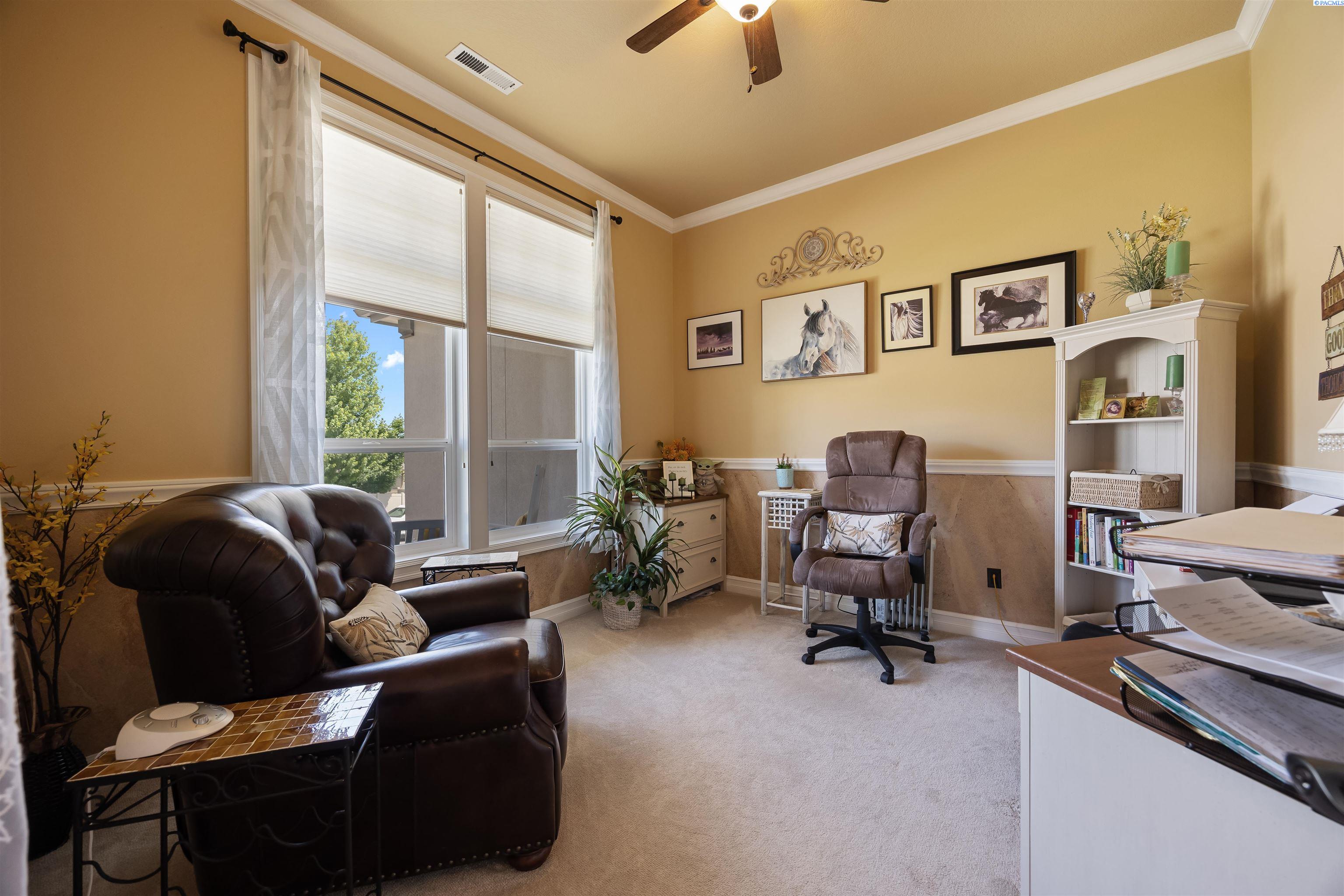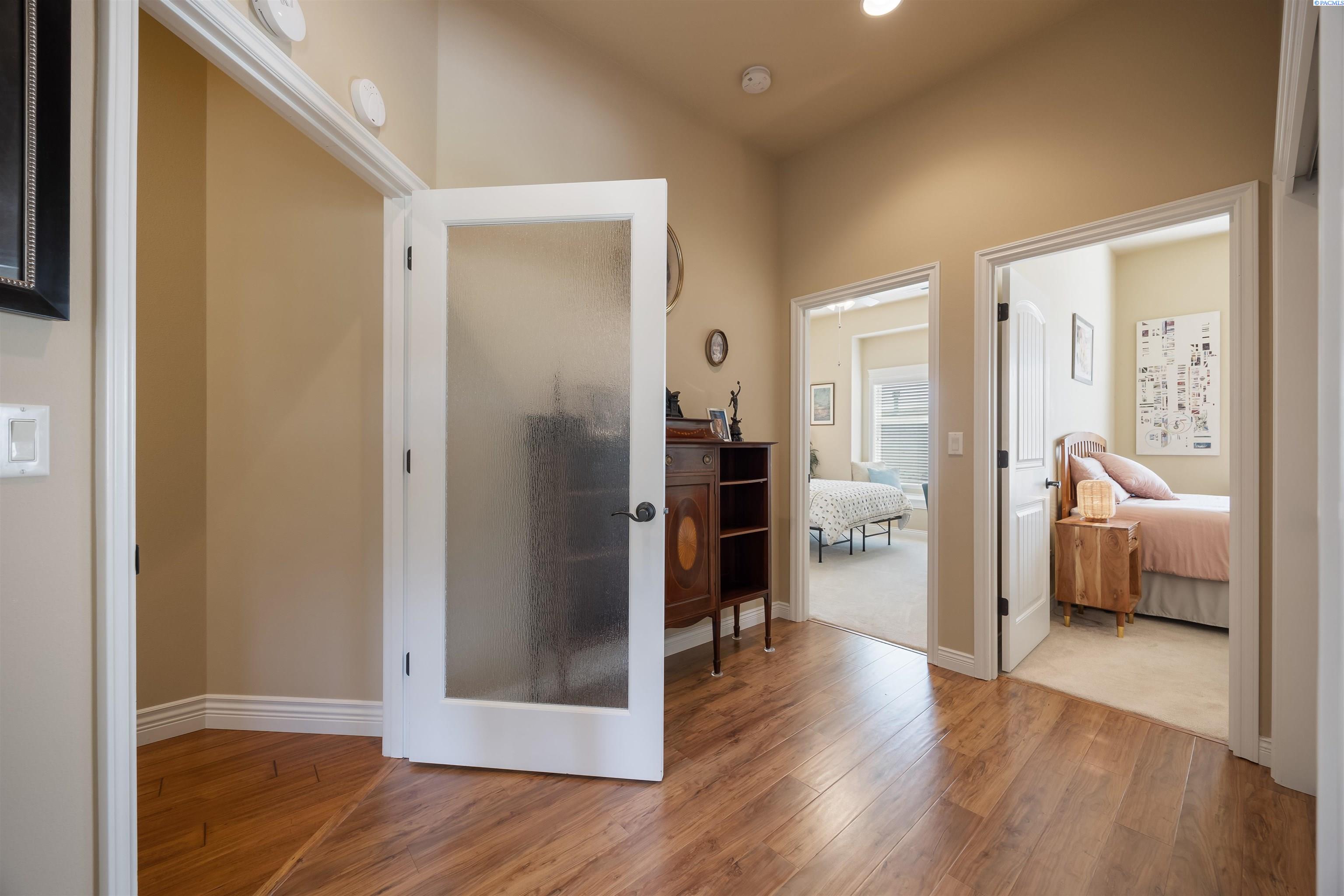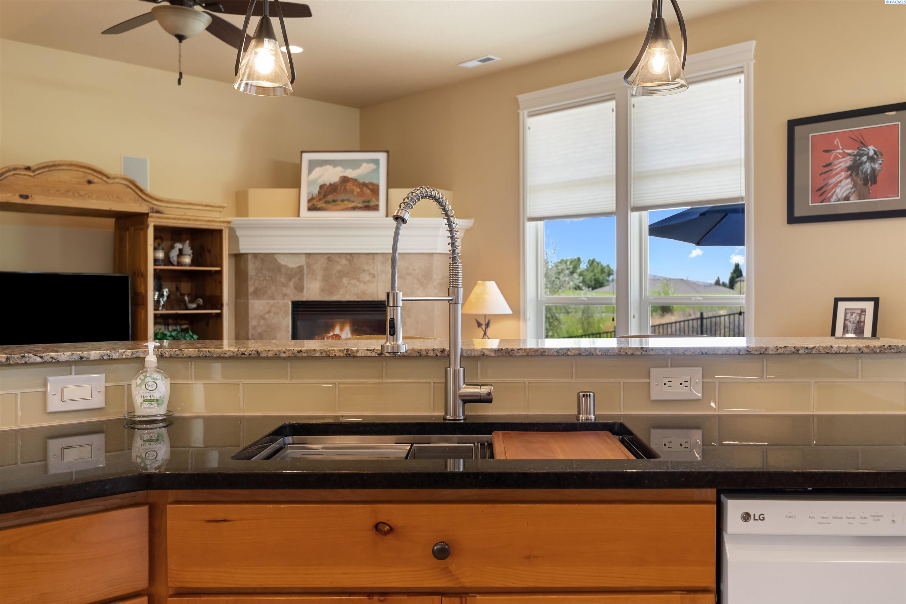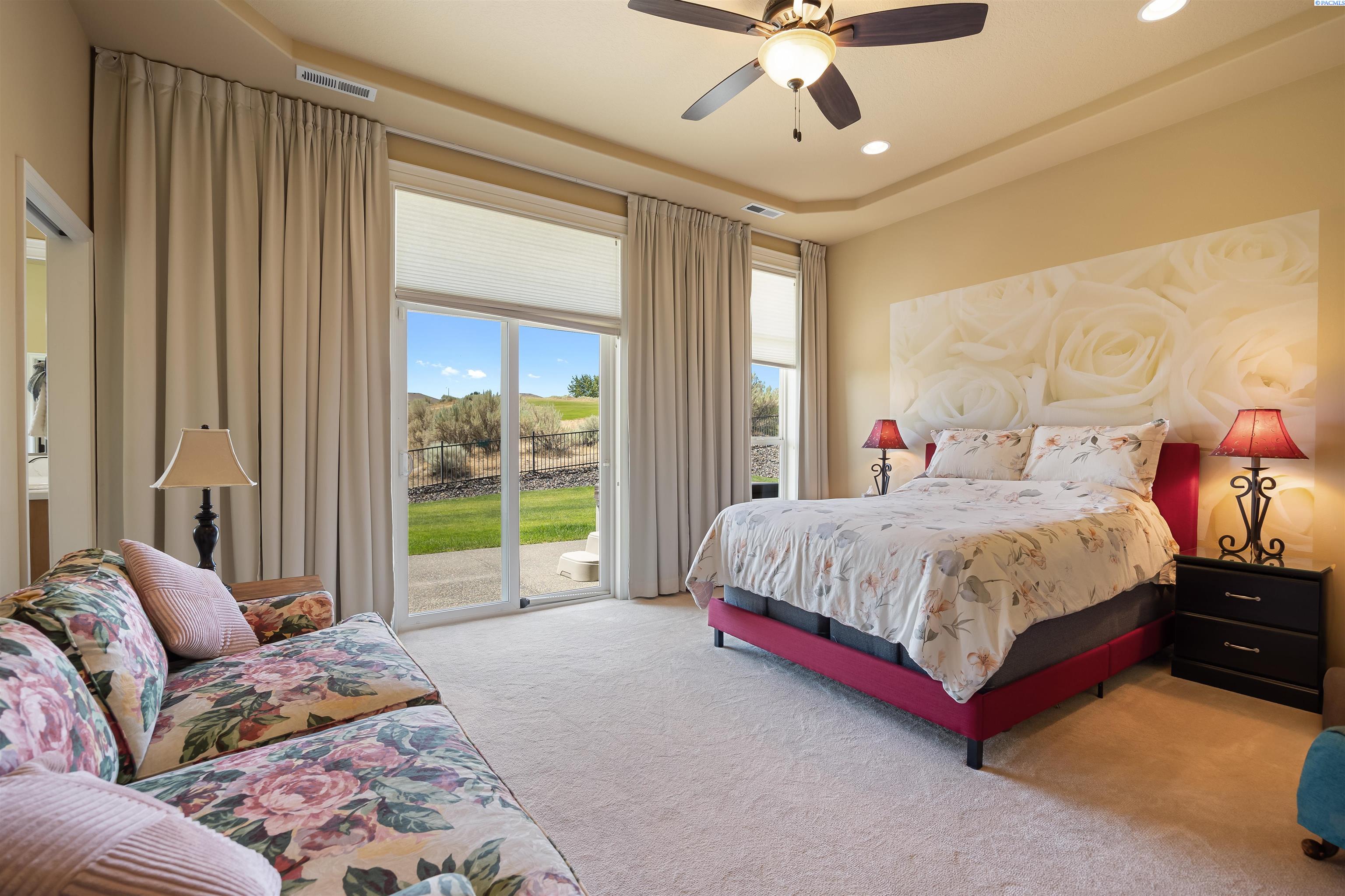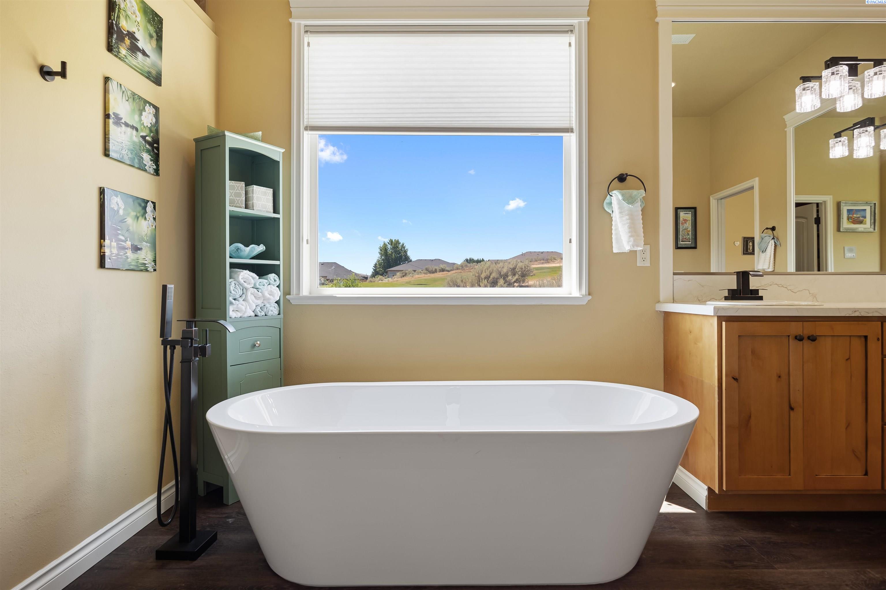 MLS# 292424 Welcome to 2860 Sawgrass Loop, a luxurious move-in ready updated 3 bedroom home with a bonus non-comforming bedroom or office/den that blends modern upgrades with comfortable living. Situated on the Horn Rapids 16th hole golf course, protected behind a hill but with views to hills beyond. You will notice the elegant 10 ft ceilings, crown molding and fresh feel created by recent interior painting complimented by the tastefully enhanced kitchen updates, boasting granite countertops, newer prep sink & subway tile backsplash and appliances, while alder cabinetry, large pantry and Italian pendant lighting provides an elegant focal point for the granite dining bar, adjacent to the family room. All bathrooms have been refreshed with comfort & modern design in mind with new countertops, waterfall faucets and lighting while the primary bedroom suite with large walk-in fitted closet and bathroom offers a luxurious retreat, complete with new countertops, a soaking tub complimented by a double walk-in shower. Additional interior touches include replacement of carpets and additional vinyl planking, bamboo floor hallway adding warmth & character to the space. Large utility room with storage. Outside, the home continues to impress with stunning views & a variety of improvements including a hot tub with new cover. The exterior has been painted & the landscaping has been refreshed with updated irrigation & removal of large front trees to create a more open, inviting curb appeal over the past few years. A newer gravel side path adds functionality, while all window & patio door screens have been replaced for comfort & efficiency. Rear & side security and Italian designed lighting enhance both the large covered front porch and entry. New doors were installed recently to the spacious high ceiling 3 car garage. Comfort is maintained year-round thanks to a newer Trane heat pump system, offering cost efficient heating & cooling. Elegant finishes, including surround sound, CAT5, built-in vacuum and everyday livability in this highly sought after golf course community.