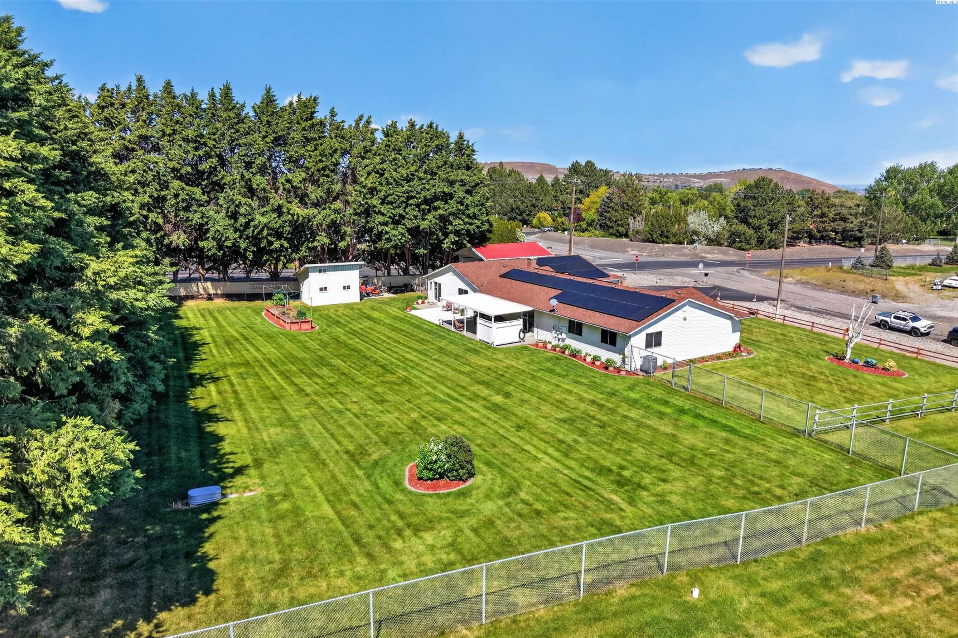 MLS# 292465 This rare acreage property showcases a well-built rambler with stunning mountain views and room for a shop, pool, and RV parking, all in a quiet rural setting with convenient interstate access. Step inside to a bright living room anchored by a stone fireplace with a pellet stove. The spacious kitchen features abundant oak cabinetry with pull-out shelving, under-cabinet lighting, quartz countertops, generous prep space, a breakfast bar, and an under-counter beverage fridge, flowing seamlessly into the dining and living areas for an ideal entertaining layout where the cook is always part of the conversation. The south wing offers an oversized primary suite with a walk-in closet and bath featuring a dual-head walk-in shower and dual quartz vanity. Two additional bedrooms and a second bath with new tub and quartz surround provide comfortable accommodations, while the laundry room includes a utility sink. On the north side is a pantry and dry bar area with drop zone, additional cabinetry, and counter space. A den/office (potential 4th bedroom) includes two skylights and a sliding door to a private patio. Car enthusiasts and hobbyists will appreciate the heated and insulated 6-car garage with 60-amp panel, plus a 20x28x14 carport for covered parking. A detached compact garage with loft adds versatile space. Exterior upgrades include low-maintenance epoxy-coated siding with enhanced durability, a newer heat pump with WiFi thermostat, and Net 0 solar system designed for high efficiency. Custom wind and solar screens on south and west windows improve comfort and performance. Outdoor living includes a beautifully landscaped yard and 32x14 covered, lighted patio with three roll-up sunshades for year-round use. The fully fenced yard features a 13x11 concrete dog kennel pad, mature Alaska Yellow Cedar trees for privacy, and 24x6 raised garden beds with shade structures. Pride of ownership is evident throughout this meticulously maintained home. Numerous additional upgrades and improvements throughout the home not fully captured in the MLS remarks. Located in a desirable rural setting with quick access to shopping, dining, medical, schools, wineries, and recreation, this property offers the perfect balance of privacy and convenience. Donât miss this exceptional opportunity.