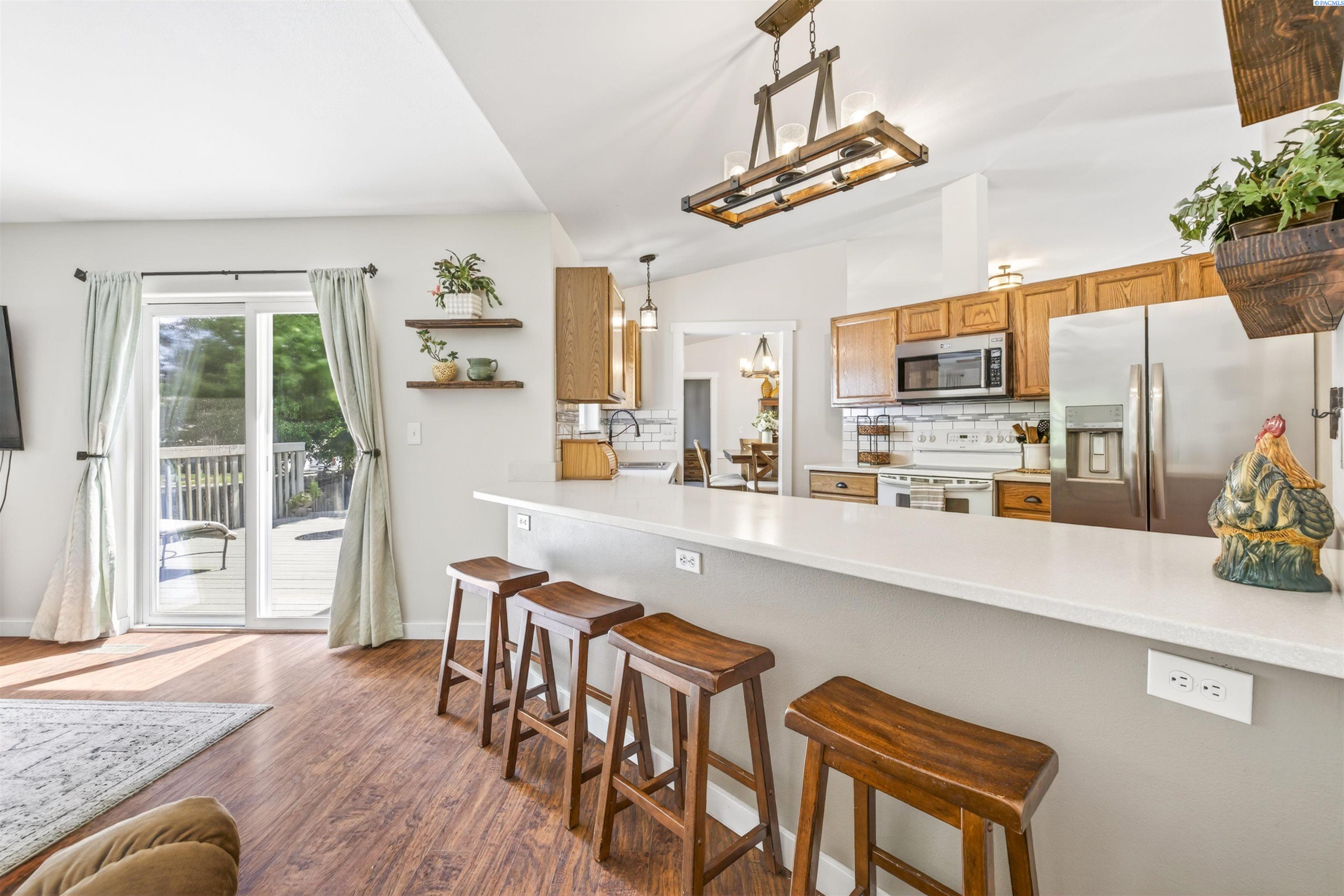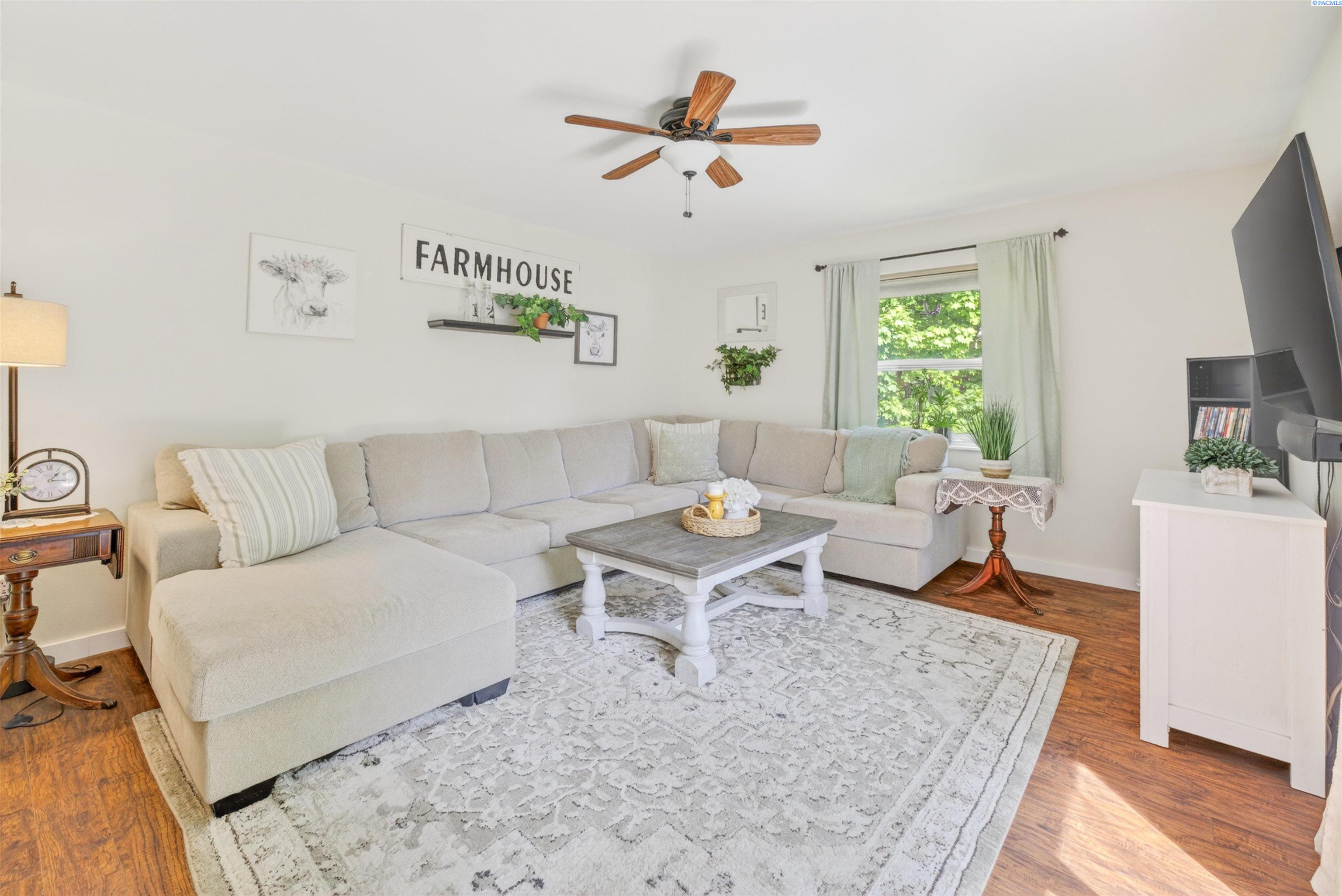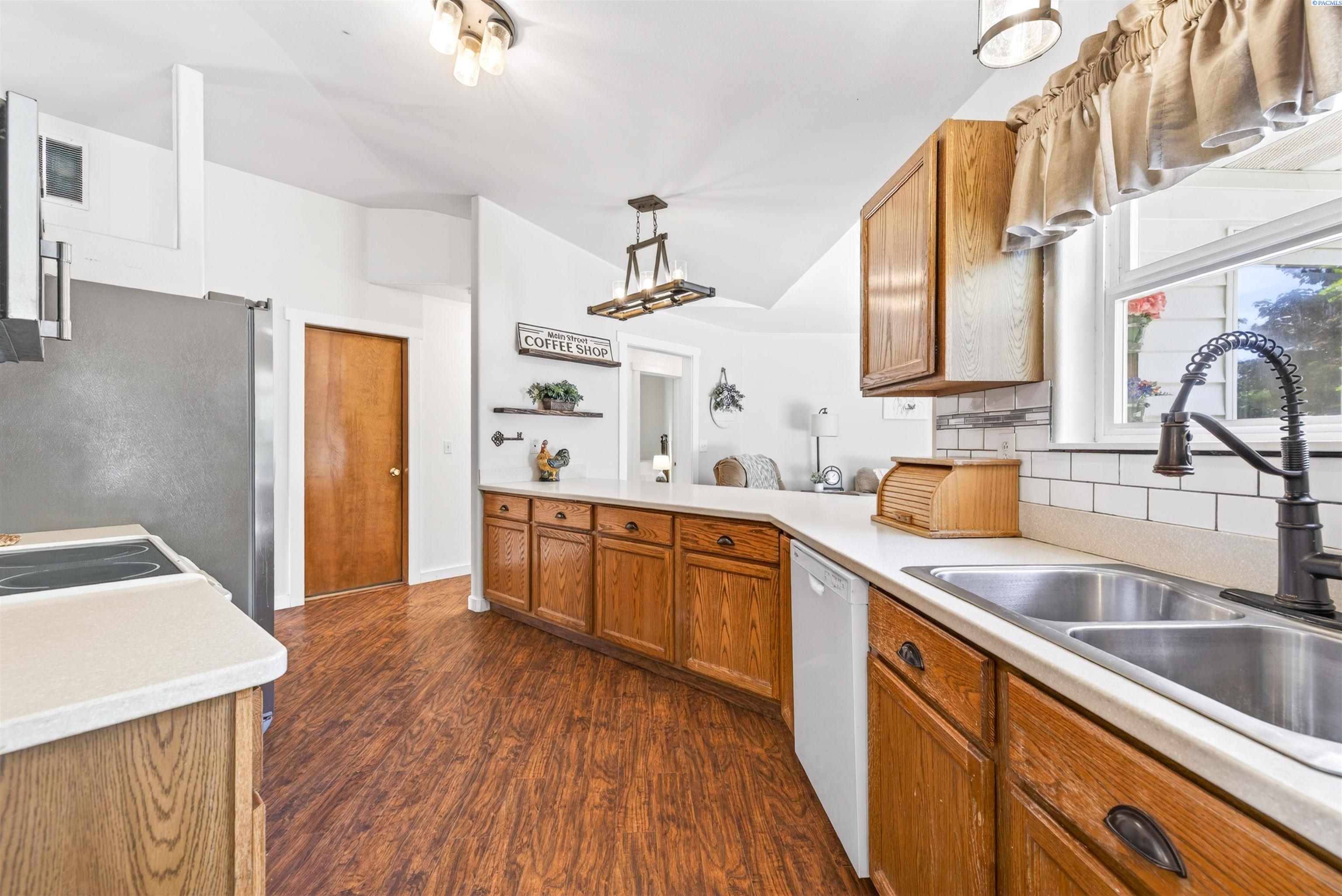 MLS# 292514 Welcome home to this charming 3-bedroom, 2-bathroom one-level home in the beloved Leslie Canyon neighborhood of South Richland. The open kitchen is the heart of the home, featuring a breakfast bar, Corian countertops, pantry, and ample cabinet storage. The adjacent dining and living combo creates a natural gathering space, while a second living space offers flexibility for a variety of needs and uses. The primary suite is separate from the others and generously sized with a walk-in closet and private full bath. Two additional bedrooms and a second full bathroom share a hallway on the other side of the home. Outside, mature landscaping, beautiful trees, and the fully fenced quarter-acre lot is made for enjoying - whether that's morning coffee on the deck, backyard barbecues, or simply having the privacy and space that can be hard to find. A small fenced portion of the yard makes for a perfect dog run, garden area, chicken coup, or pool! The 2-car attached garage with mudroom/laundry room plus dedicated RV parking adds practical flexibility, and the location delivers too - situated in the Richland School District just minutes from South Richland dining, shopping, Highway 240 access, parks, and only 5-10 minutes to Target, Costco, Safeway, and Starbucks. Vaulted ceilings, bright and warm interior, flexible layout, 2021 HVAC, corner lot, and an incredible location - this one might just be the total package!